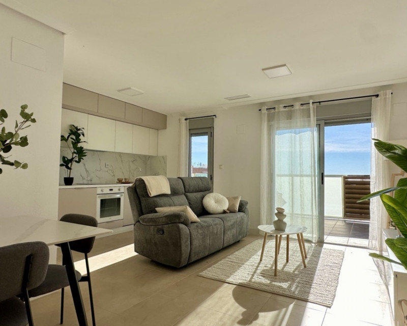 Este precioso apartamento completamente reformado se encuentra en la 5ª planta de un edificio bien cuidado en Torrevieja, a solo 5 minutos caminando del mar. La vivienda ofrece 90 m² y dispone de 3 amplios dormitorios, 2 baños modernos y un luminoso salón-comedor de concepto abierto. Ha sido totalmente reformado con un estilo moderno, utilizando materiales y acabados actuales. Destaca su gran terraza con orientación sur, ideal para disfrutar del sol durante todo el día. ✔ 5ª planta✔ Orientación sur✔ Reformado integral✔ Amplia terraza soleada✔ A poca distancia de la playa✔ Plaza de garaje opcional (+13.000 €) Perfecto como vivienda habitual, residencia vacacional o inversión para alquiler.