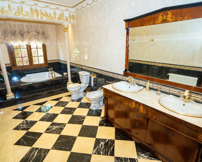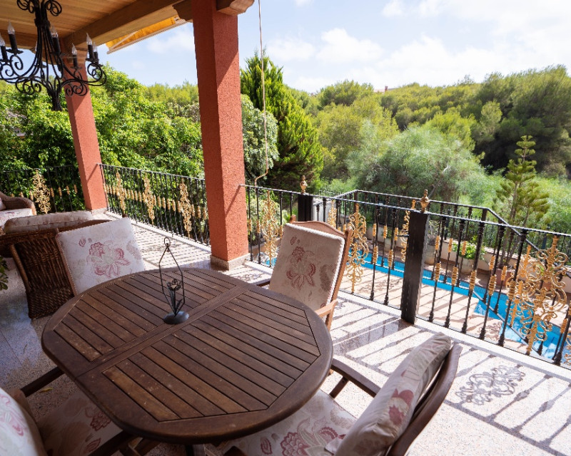 A la venta una villa cerca del mar en Campoamor La casa de 734 m2 con una cuidada parcela de 850 m2 y piscina privada. En la construcción de la villa se utilizaron materiales de alta calidad. La casa está diseñada en un estilo clásico: un amplio y luminoso salón, 7 dormitorios,6 cuartos de baños,garage para 3 coches, terrazas con hermosas vistas. Suelos de mármol, aire acondicionado, sistema de calefacción, diferentes cuartos de servicio. Todos estos detalles sirven para su comodidad y hacen esta casa muy acogedora. El área frente a la casa está embaldosada. Aquí se encuentra una piscina y jardín.Esta villa es ideal para vivir todo el año con la familia ó para pasar sus vacaciones con amigos y familiares. La proximidad a la playa y los campos de golf de Orihuela Costa, la infraestructura perfectamente desarrollada, la cercanía a las autopistas que conectan este lugar con diferentes puntos de la provincia de Alicante son la clave de la alta rentabilidad de su inversión en esta propiedad. Los aeropuertos internacionales de Alicante y Murcia (San Javier) se encuentran a 45 minutos en coche.