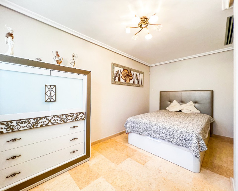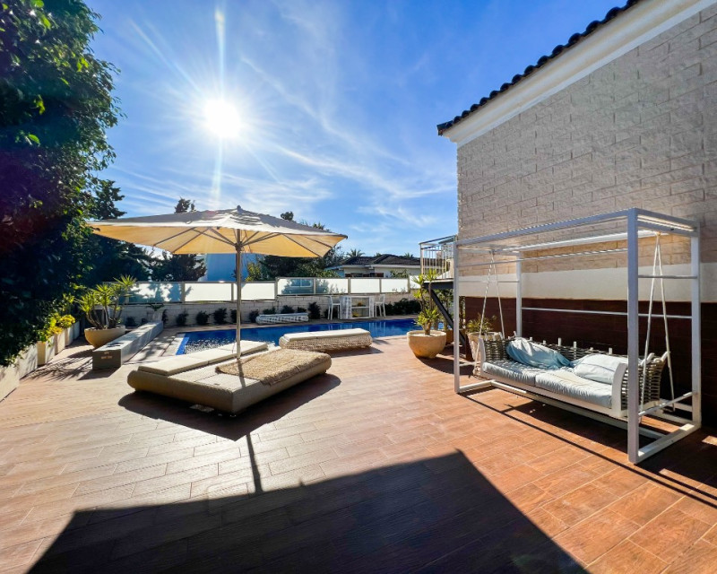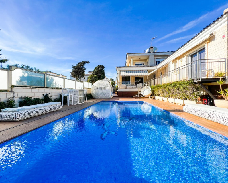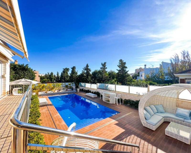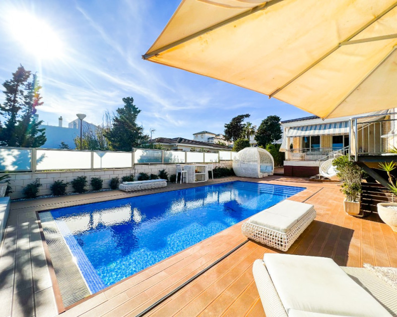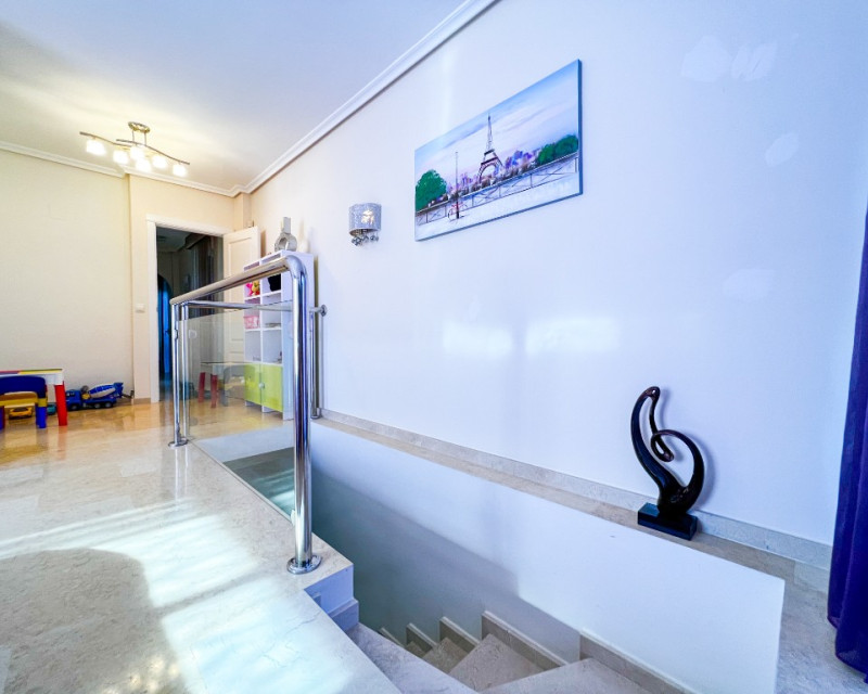 Villa de lujo en venta cerca del mar en La Mata, Costa Blanca, España. Una amplia casa moderna con una superficie de 380m2 tiene una parcela de 625 m2, en la que se encuentra una piscina climatizada con zona de relax, aparcamiento y zona de barbacoa. La villa en sí está construida en varios niveles y tiene 5 dormitorios y 4 baños, cada uno de los cuales está diseñado con su propio estilo único y equipado con todo lo necesario para su comodidad. Además, los futuros propietarios tendrán una agradable adición con su propia sala de cine y la presencia de saunas húmedas y secas, lo que permitirá un tiempo de ocio diversificado para cada miembro de la familia y amigos. También hay un gran vestidor. En el sótano hay calefacción por suelo radiante y ambas saunas se pueden encender mediante un temporizador. También es muy importante tener en cuenta que en ambos niveles donde se encuentran los dormitorios hay control de clima independiente. La Mata es una magnífica zona situada en el sur de Orihuela Costa. Los fascinantes paisajes marinos y el suave clima mediterráneo hacen de La Mata un lugar favorito para vivir y relajarse entre los europeos. La atmósfera de ligereza existente hizo de este lugar uno de los mejores de la costa. En las inmediaciones de la villa encontrará magníficas playas de arena, restaurantes y bares, así como absolutamente todo lo necesario para disfrutar del más alto nivel de vida y unas estupendas vacaciones. El aeropuerto internacional más cercano es el de Alicante, a 30 minutos en coche.