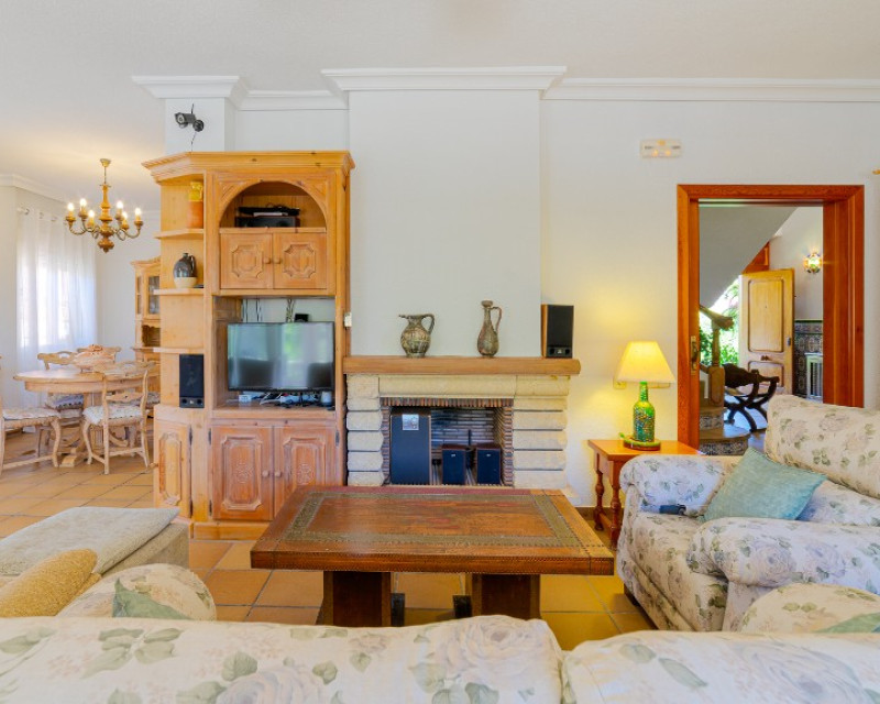 En venta Mediterranean style villa en Campoamor, cerca de la playa y alrededor de todos los servicios imprescindibles se encuentra este paraíso. Preciosa villa con magníficas vistas cerca del mar. La casa de 250m 2 construida sobre una parcela de 1000 m2, con piscina privada y garaje de 45 m2. Edificio de 3 plantas con acensor, cada planta tiene su acceso privado. Planta baja tiene amplio salón cocina abierta y dormitorio. Parcela ajardinada con árboles maduros, espacios verdes, césped artificial, BBQ y piscina privada. Ideal para vivir con una familia numerosa. Gran oportunidad para abrir mini-hotel. Orihuela Costa es una de las mejores zonas del sur de la Costa Blanca. Aquí encontrará una combinación de infraestructura y la naturaleza. Todo lo que necesita para estar cerca de casa tiendas, restaurantes, bancos, farmacias, escuelas, instalaciones deportivas y mucho más. Así como toda la diversión y atracciones de la ciudad balnearia. En pocos minutos en coche hay campos de golf, centros comerciales, Lagos únicas de Torrevieja y auténticas ciudades españolas.
