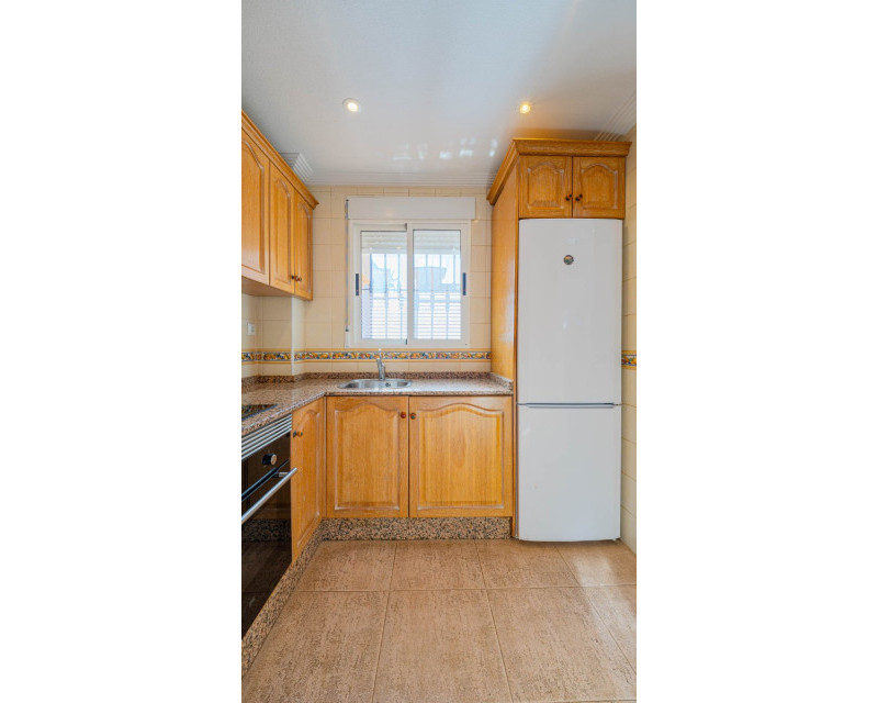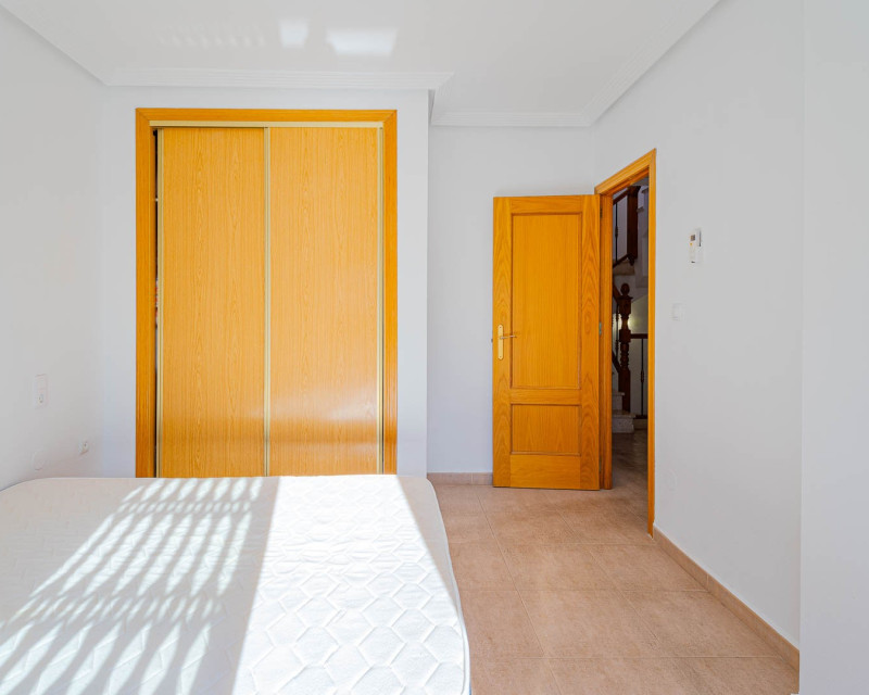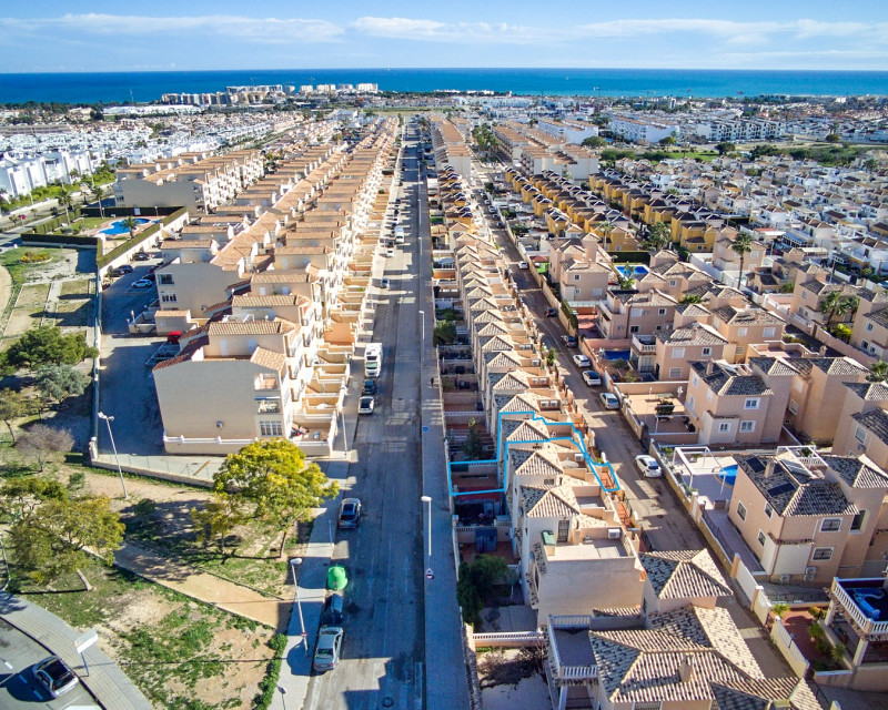 Se ofrece a la venta un encantador adosado en Los Altos, situado en el prestigioso residencial privado Royal Park, en la Costa Blanca. Esta propiedad es ideal tanto para residencia permanente como para casa de vacaciones o inversión en alquiler, gracias a su excelente ubicación y a la completa infraestructura de la zona. La vivienda cuenta con dos amplios dormitorios, un baño completo y un aseo de cortesía, además de dos patios y dos terrazas, que permiten disfrutar del clima mediterráneo durante todo el año. Desde la terraza y el solárium se aprecian vistas al mar, lo que convierte esta propiedad en una opción especialmente atractiva para quienes buscan un estilo de vida junto al mar. En la planta baja se encuentra un luminoso salón con acceso directo al segundo patio, un espacio perfecto para comer al aire libre y relajarse. La cocina de concepto abierto dispone de un práctico lavadero, y el aseo de invitados aporta un extra de comodidad. En la planta superior se ubican dos dormitorios y un baño, siendo uno de ellos con terraza privada. El residencial ofrece zonas comunes cuidadas y una piscina comunitaria, ideal para refrescarse durante los meses más cálidos. Los Altos es una zona muy valorada por su comodidad y accesibilidad: supermercados, centros comerciales, bancos, clínicas médicas y paradas de transporte público se encuentran a poca distancia a pie. Las playas de Punta Prima, galardonadas con la Bandera Azul, están a solo 5–7 minutos en coche. Con más de 320 días de sol al año, esta propiedad representa una excelente oportunidad para disfrutar de una alta calidad de vida en el sur de España.