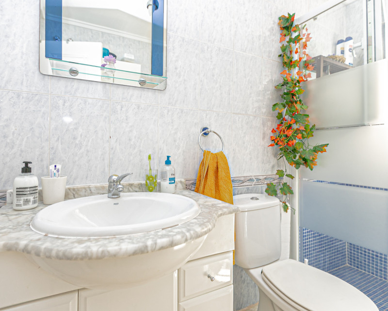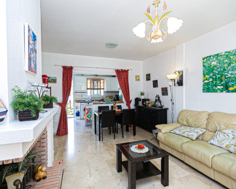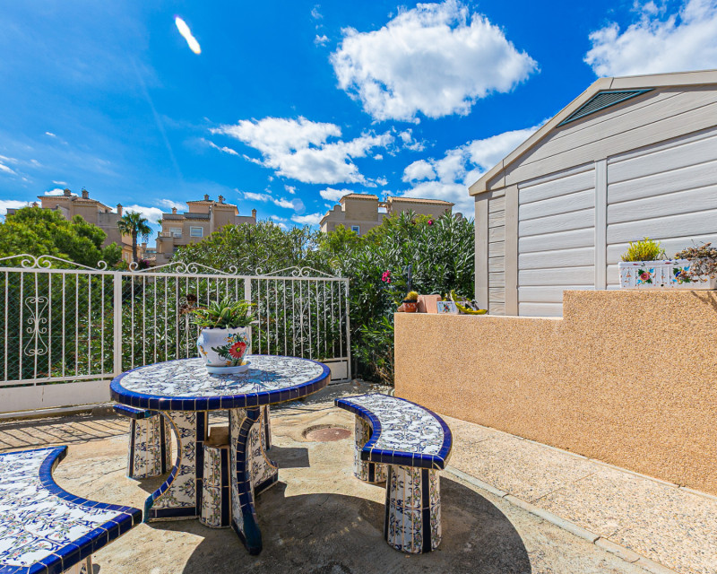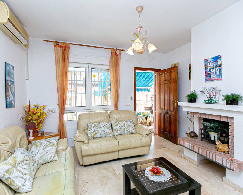 Presentamos este encantador bungalow en planta baja, con la comodidad de poder aparcar el coche dentro de la parcela bajo su práctico carport. La vivienda se encuentra en una parcela privada en forma de semicírculo que rodea toda la casa, ofreciendo diferentes ambientes exteriores para disfrutar del clima mediterráneo. En la parte delantera dispone de una doble terraza: una junto a la entrada y otra terraza principal equipada con toldo, perfecta para relajarse a la sombra o compartir comidas al aire libre. Al acceder al interior, encontramos un amplio salón-comedor con aire acondicionado y chimenea, creando un espacio acogedor tanto en verano como en invierno. La cocina, independiente y de generosas dimensiones, cuenta con una cómoda barra de cocina y acceso directo al jardín trasero, que añade aún más funcionalidad a la vivienda. La zona de noche se compone de dos dormitorios y un baño con ducha. La propiedad incluye extras como ventiladores de techo y aire acondicionado en el salón y en el dormitorio principal. Se vende amueblada (excepto efectos personales), sin frigorífico ni lavadora. Ubicación – Playa Flamenca Playa Flamenca es una de las zonas más demandadas de Orihuela Costa, famosa por su ambiente cosmopolita y sus playas con bandera azul. Ofrece todo tipo de servicios a pocos minutos andando: restaurantes, bares, supermercados, centros deportivos y el popular centro comercial Zenia Boulevard. Además, cuenta con excelentes conexiones con campos de golf cercanos como Villamartín, Las Ramblas y Campoamor, así como con las playas de La Zenia y Cabo Roig. Esta propiedad es ideal tanto como residencia vacacional, inversión o vivienda permanente en una de las zonas más solicitadas de la Costa Blanca. No deje pasar esta oportunidad y contacte con nosotros hoy mismo para concertar una visita.