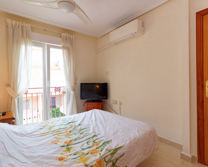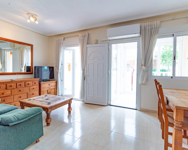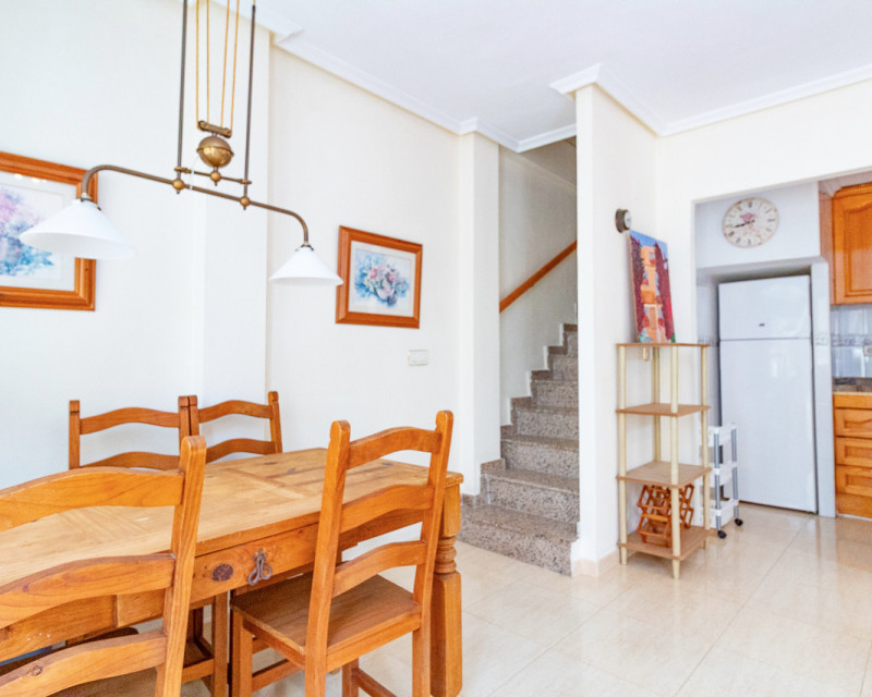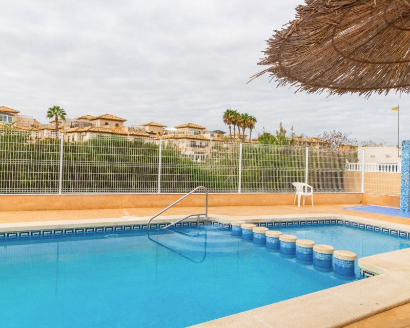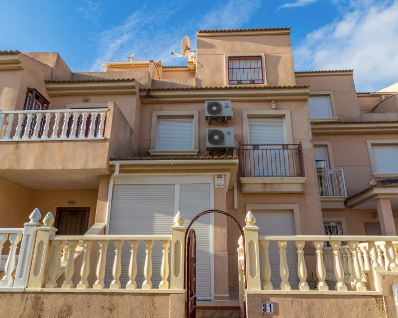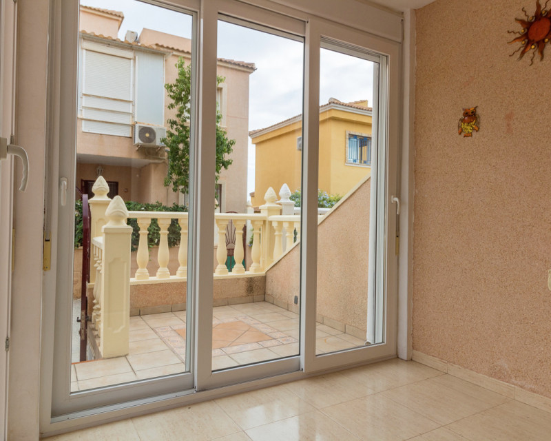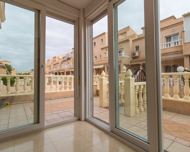 Adosado muy bien situado, justo en la frontera entre Playa Flamenca y La Zenia, a solo un paseíto de la playa de La Zenia y del conocido centro comercial Zenia Boulevard. La vivienda cuenta con 3 dormitorios dobles, 2 baños completos y un aseo en la planta baja, salón-comedor y cocina americana totalmente equipada con barra de desayuno y lavadero. También tiene un porche acristalado ideal para disfrutar en invierno. En el exterior hay una terraza delantera de bajo mantenimiento, un dormitorio en la primera planta con balcón tipo Julieta y el dormitorio principal en la segunda planta con su propia terraza. Ubicada en una comunidad tranquila con piscina para los vecinos. Una ubicación fantástica, a un paso de todas las zonas comerciales de Playa Flamenca y La Zenia, sin necesidad de coche. Se vende tal como se ve, amueblado, con electrodomésticos, aire acondicionado, ventiladores de techo, persianas y rejas de seguridad.