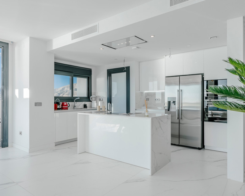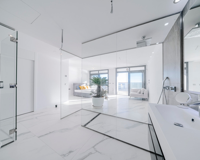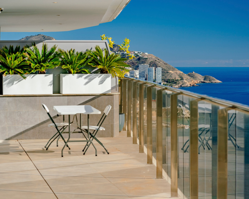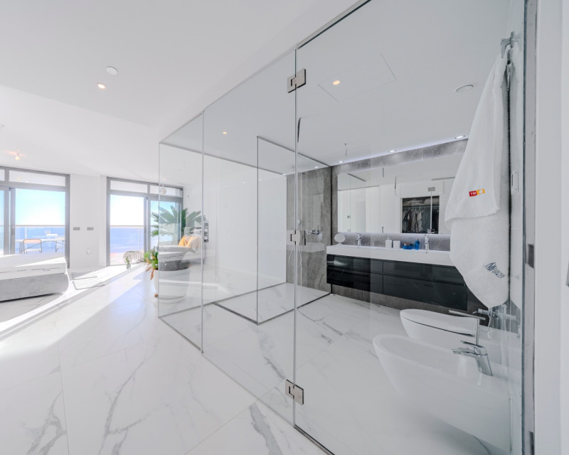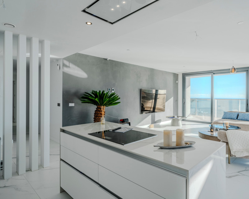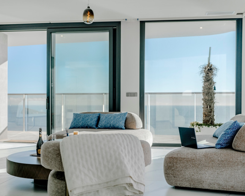 Situado en el prestigioso Residencial Sunset Cliffs, este impresionante apartamento en el piso 29 ofrece un estilo de vida costero incomparable con vistas frontales al mar Mediterráneo y a la Playa de Poniente. Diseñada tanto para la comodidad como para la sofisticación, esta casa combina a la perfección la elegancia moderna con un entorno impresionante. La amplia sala de estar está bañada por la luz natural, con una cocina de concepto abierto equipada con electrodomésticos inteligentes Samsung de alta gama y acabados exclusivos de Porcelanosa. Con su diseño impecable y materiales de primera calidad, este espacio es perfecto tanto para la vida cotidiana como para el entretenimiento. La suite principal es un refugio privado, con un vestidor, un baño privado estilo spa y un ambiente tranquilo. Un segundo dormitorio brinda versatilidad y se puede convertir fácilmente en un tercer dormitorio si se desea. El control de climatización automatizado y los acabados de lujo en toda la casa garantizan un nivel excepcional de comodidad. Una característica destacada de esta residencia es la amplia terraza privada, donde un jacuzzi privado lo invita a relajarse mientras disfruta de las vistas frontales ininterrumpidas del mar. Este espacio al aire libre ofrece el entorno perfecto para relajarse y disfrutar del impresionante paisaje costero. Como parte del exclusivo complejo residencial Sunset Cliffs, los residentes disfrutan de acceso a piscinas climatizadas, un gimnasio panorámico, canchas deportivas, un cine e instalaciones para niños, lo que brinda una experiencia estilo resort. El desarrollo también ofrece acceso directo a la playa y está a solo minutos del centro histórico de Benidorm, combinando lujo con comodidad. La propiedad incluye dos unidades de almacenamiento y estacionamiento subterráneo, lo que agrega practicidad a sus muchas características premium. Una oportunidad única de experimentar el lujo, la comodidad y las espectaculares vistas al mar en una de las ubicaciones más solicitadas de Benidorm.