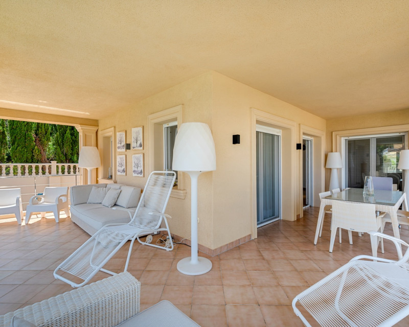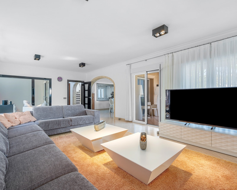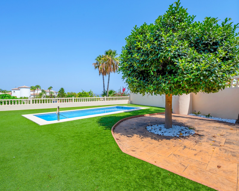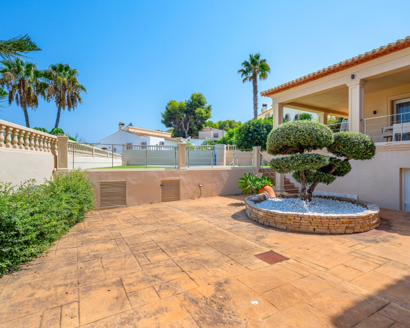 Esta magnífica villa se encuentra en una zona tranquila de Benissa, en un entorno residencial privilegiado. Construida en 2004 y renovada por completo en 2012, la propiedad ofrece un diseño moderno y funcional, con acabados de gran calidad tanto en el interior como en el exterior. La parcela de 960 m² está cuidadosamente ajardinada con palmeras y vegetación mediterránea, combinada con zonas embaldosadas y un césped artificial de alta calidad en la terraza superior. En el centro del área exterior se sitúa una gran piscina privada con sistema de filtrado que reproduce las sensaciones del agua de mar. La entrada principal dispone de un amplio porche cubierto que da la bienvenida a la vivienda. En la planta principal se encuentra un luminoso salón con acceso directo a la terraza y a la piscina, un comedor independiente y una cocina completamente equipada. En el ala izquierda hay dos dormitorios y un baño. La primera planta está destinada al dormitorio principal, que cuenta con baño en suite y una terraza privada desde la que se disfrutan vistas abiertas. La planta baja alberga dos dormitorios adicionales, un baño completo, un gimnasio, un cuarto de lavandería y una sala técnica, además de espacios de almacenamiento. La vivienda ofrece un alto nivel de confort gracias a que todas las habitaciones y el salón disponen de aire acondicionado. La cocina está equipada con electrodomésticos de calidad, y toda la casa cuenta con calefacción de gas. Además, se han incorporado mejoras como sistema de filtración de agua potable, mosquiteras y persianas. Otros detalles a destacar son los colchones nuevos de alta gama, cambiados en 2024, y el aparcamiento privado. Con una superficie construida de 302 m², esta villa combina amplitud, comodidad y un entorno excepcional, lo que la convierte en una opción ideal tanto para vivir todo el año como para disfrutarla como segunda residencia.