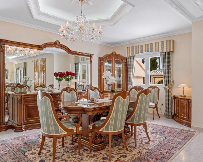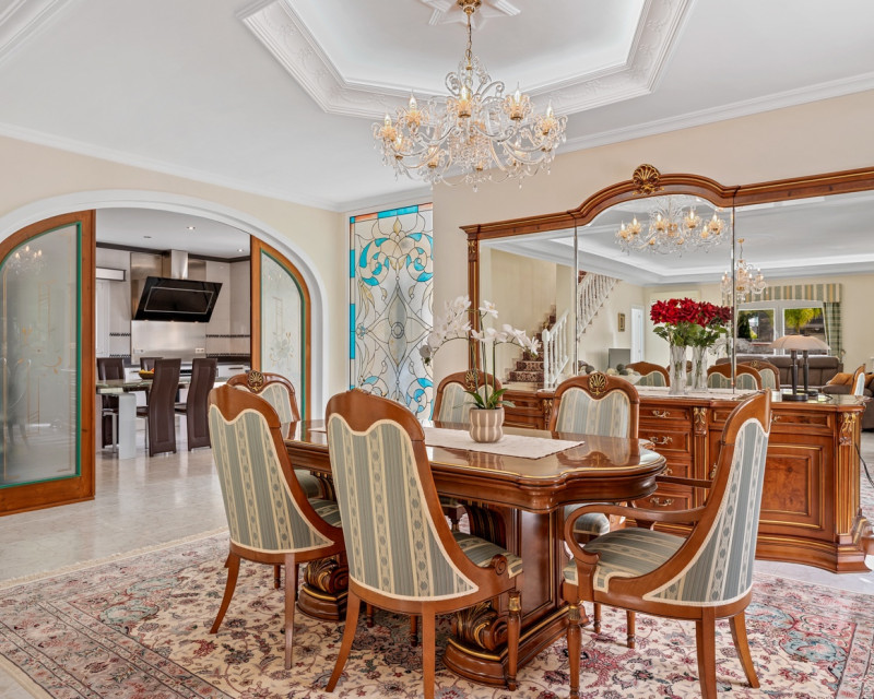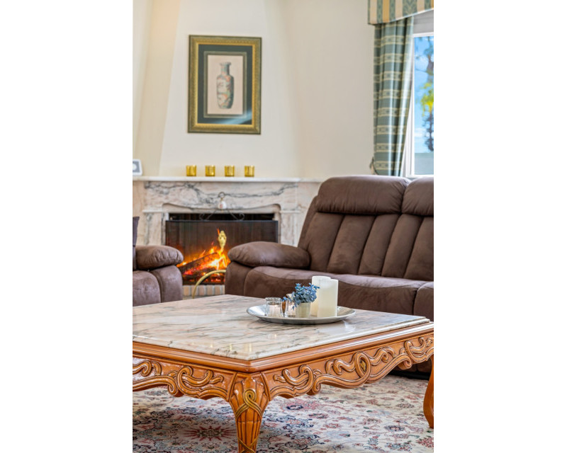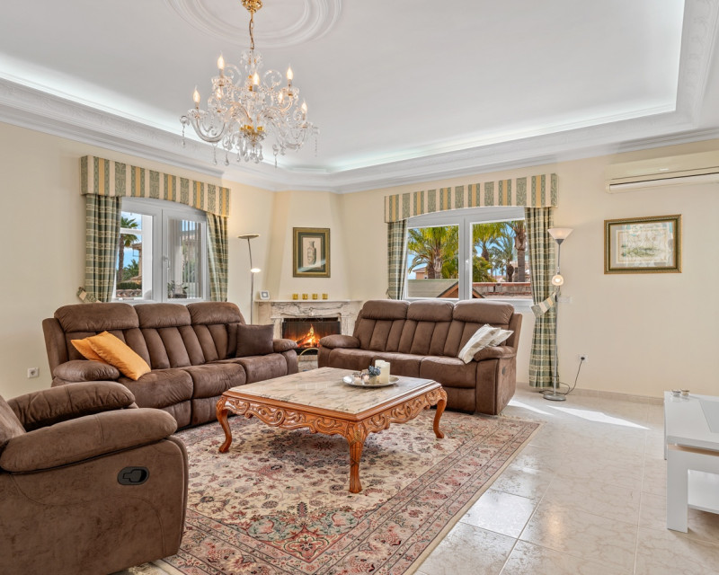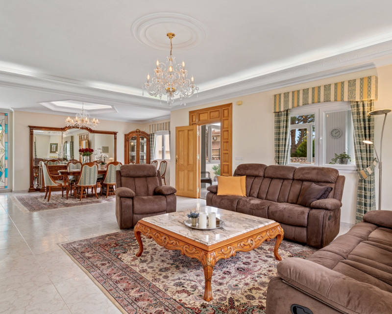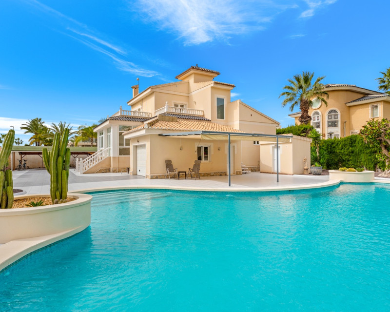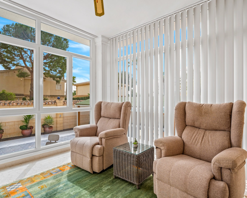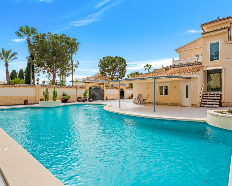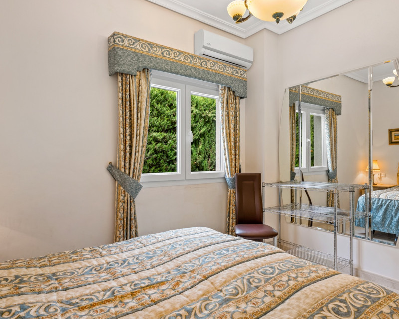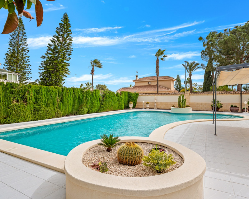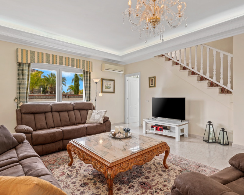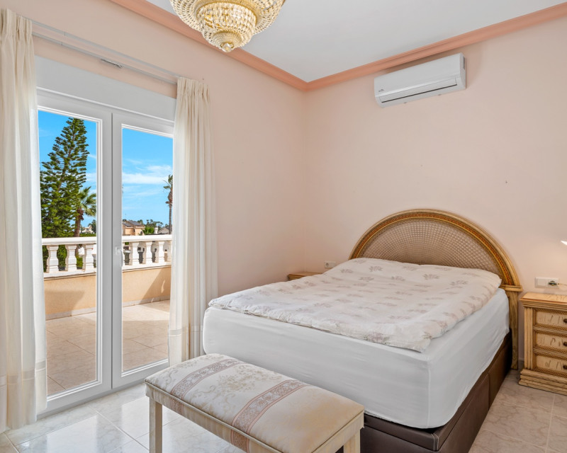 Gran villa de lujo con 4 dormitorios en Ciudad Quesada. La villa se distribuye en 3 niveles y cuenta con un total de cuatro dormitorios y seis baños. En la planta principal se encuentra un dormitorio, un baño, un amplio salón y comedor, una cocina con zona de comedor adicional y una terraza acristalada que funciona como una zona de estar adicional. En el salón hay una bonita chimenea. Desde la cocina y la terraza acristalada hay acceso directo al jardín. En la primera planta se encuentran dos dormitorios y dos baños, uno de ellos en suite con el dormitorio principal. Desde los dormitorios se accede a una terraza con vistas a la zona de la piscina. En la planta inferior hay un gran espacio abierto que se utiliza como sala de estar. Aquí también se encuentra un dormitorio y dos baños (duchas sin inodoro), uno de ellos en suite. La villa está equipada con aire acondicionado, persianas eléctricas, ventanas de doble acristalamiento y sistema de alarma. Zona exteriorLa villa está situada en una parcela de 1.058 m². Aquí se encuentra una gran piscina (125 m²) que ha sido recientemente renovada y mucho espacio alrededor para zonas de descanso. Además, hay un baño exterior completo, un garaje con zona de lavandería, aparcamiento adicional dentro de la parcela y un gran cobertizo de madera para almacenamiento. Tanto la puerta del garaje como la puerta de acceso al aparcamiento son automáticas. El bonito jardín está cuidadosamente diseñado y es fácil de mantener. La villa se encuentra a poca distancia a pie de varios restaurantes y cafeterías.
