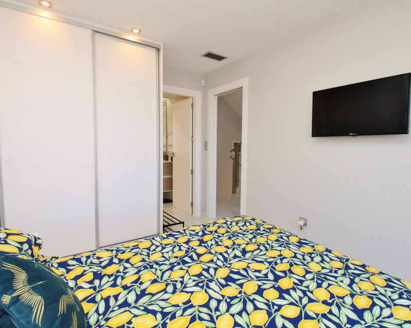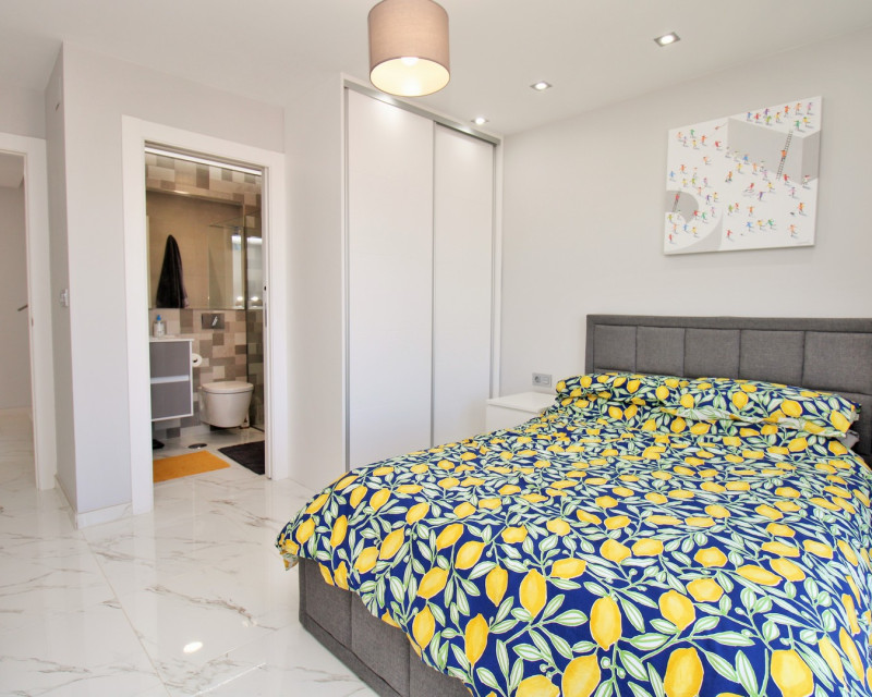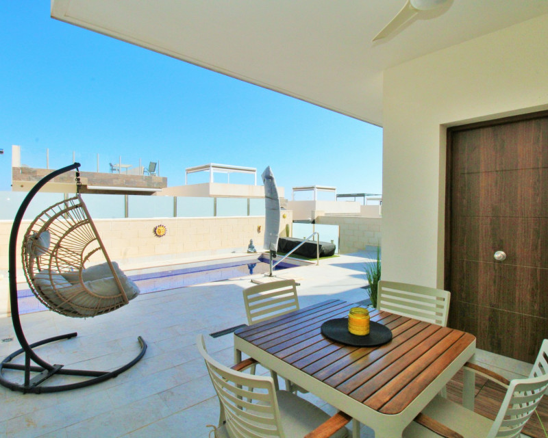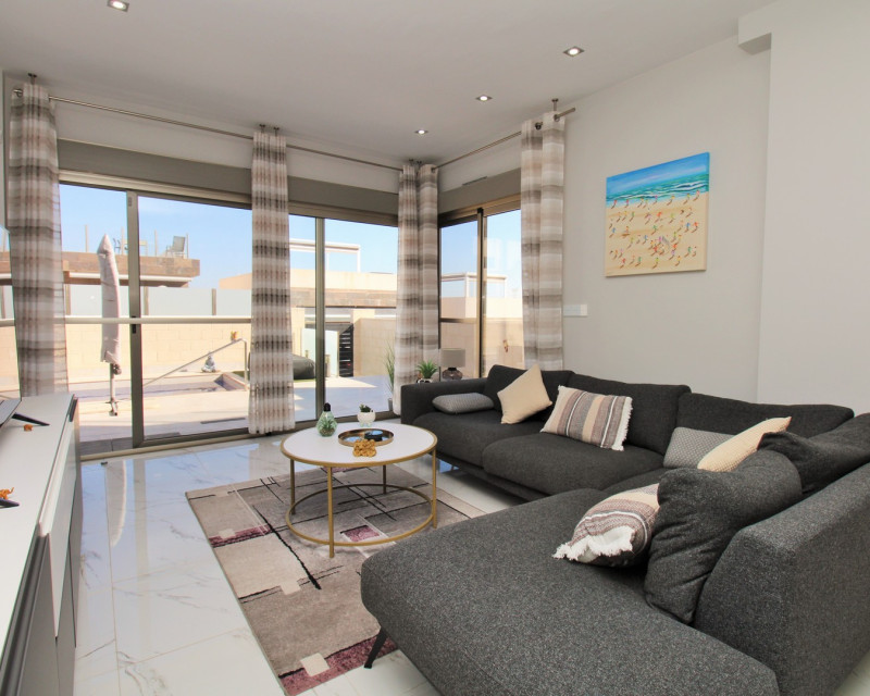 Ubicada en la conocida comunidad Pink Paradise en PAU 26, Villamartín, esta villa independiente moderna (construida en 2020) ofrece una excelente combinación de estilo, espacio y comodidad, a poca distancia de todos los servicios y a solo unos minutos en coche de la costa. La vivienda se sitúa en una parcela de bajo mantenimiento, diseñada para disfrutar durante todo el año, con piscina privada, ducha exterior y varias zonas de almacenamiento, además de amplios espacios para relajarse, comer o disfrutar al aire libre. En el interior, la propiedad destaca por su luminosidad y diseño contemporáneo. El salón-comedor de concepto abierto conecta con una cocina moderna, creando un espacio práctico y acogedor. En esta planta también se encuentra un dormitorio doble con armarios empotrados y acceso a un baño tipo Jack and Jill, ideal para invitados. En la planta superior hay dos dormitorios dobles adicionales, ambos con armarios empotrados y baños en suite. Cada dormitorio tiene acceso directo a una terraza soleada, perfecta para disfrutar del clima. La vivienda cuenta además con un amplio solárium privado, accesible mediante escalera interior, desde donde se pueden disfrutar de vistas despejadas hacia la laguna salada, ideal para relajarse o entretener. La propiedad incluye extras como aire acondicionado por conductos, persianas motorizadas, mosquiteras, iluminación LED, toldos, sistema de alarma y acabados de alta calidad. También dispone de plaza de aparcamiento asignada. Se vende amueblada, lista para entrar a vivir, siendo una opción ideal como vivienda habitual, casa vacacional o inversión.