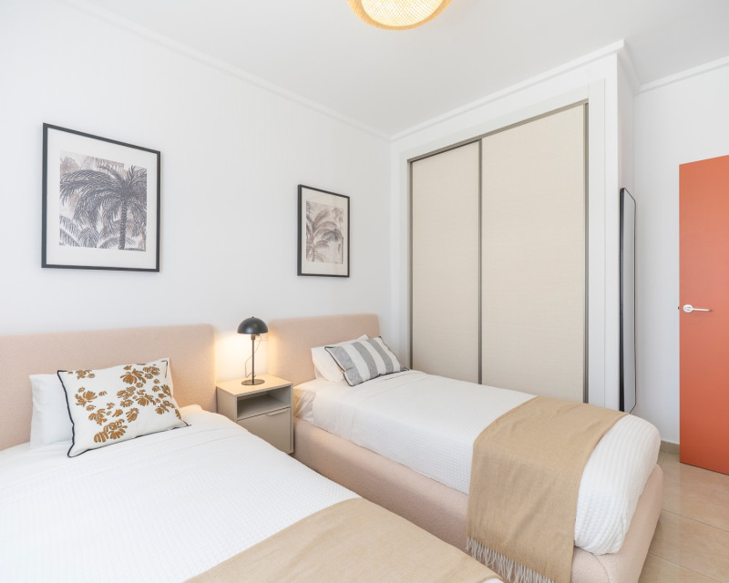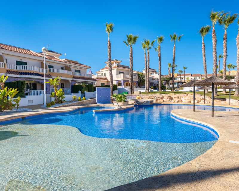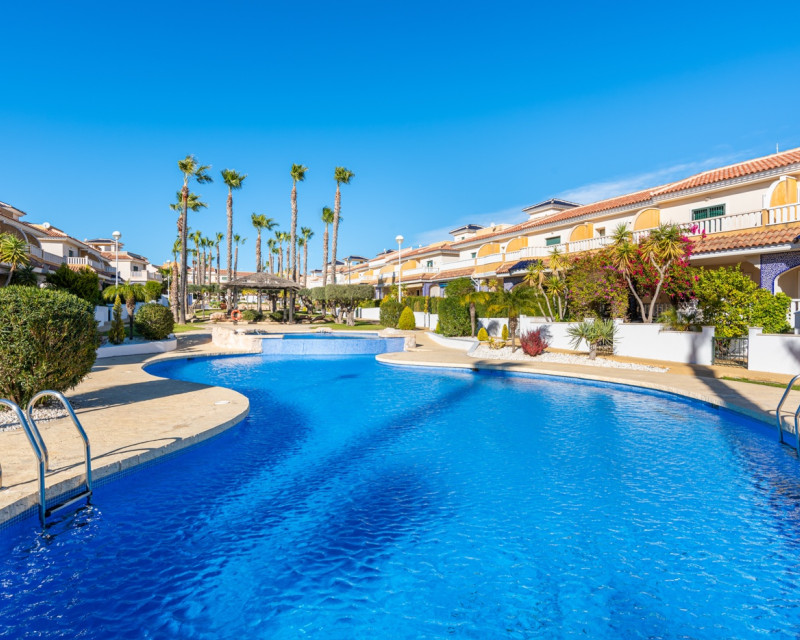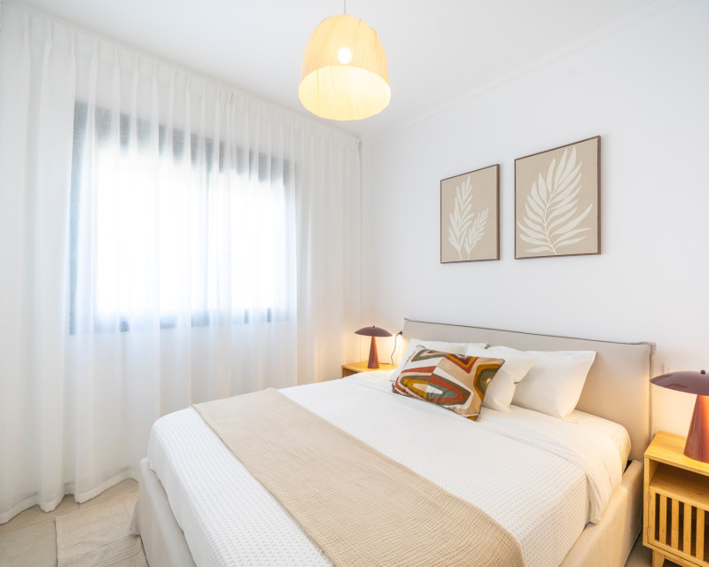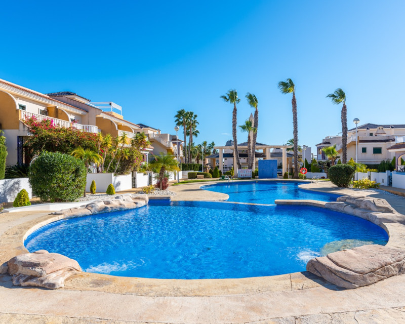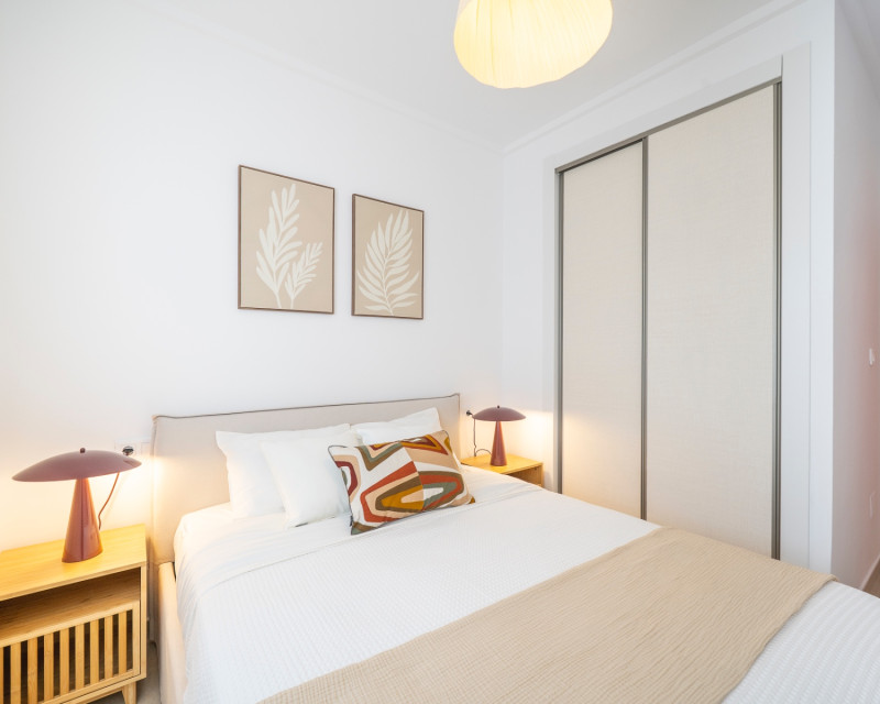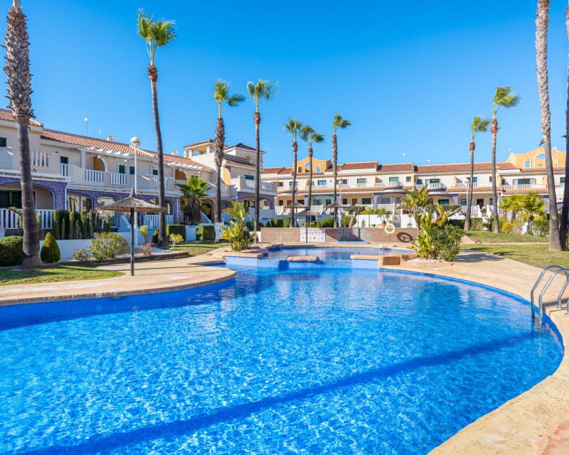 Encantador apartamento en planta alta situado en la popular urbanización Albamar. La vivienda cuenta con una superficie construida de 79,27 m² y se distribuye en dos dormitorios dobles con armarios empotrados y un baño completo familiar equipado con ducha. Además, ofrece una luminosa zona de salón-comedor con cocina americana de concepto abierto. Desde el salón se accede directamente a un amplio balcón con orientación oeste, ideal para disfrutar del sol de la tarde. Se encuentra en primera planta con acceso mediante escaleras y se vende completamente amueblado, listo para entrar a vivir. Desde el balcón se accede mediante una escalera exterior a un gran solárium privado, donde se encuentra un trastero y una barbacoa de obra, además de ofrecer vistas a las salinas de Torrevieja y La Mata. Incluye una plaza de aparcamiento privada en garaje subterráneo. La urbanización dispone de varias piscinas comunitarias, piscina infantil, amplios jardines y zonas de aparcamiento. Ubicado en Doña Pepa, a pocos minutos a pie de todos los servicios.
