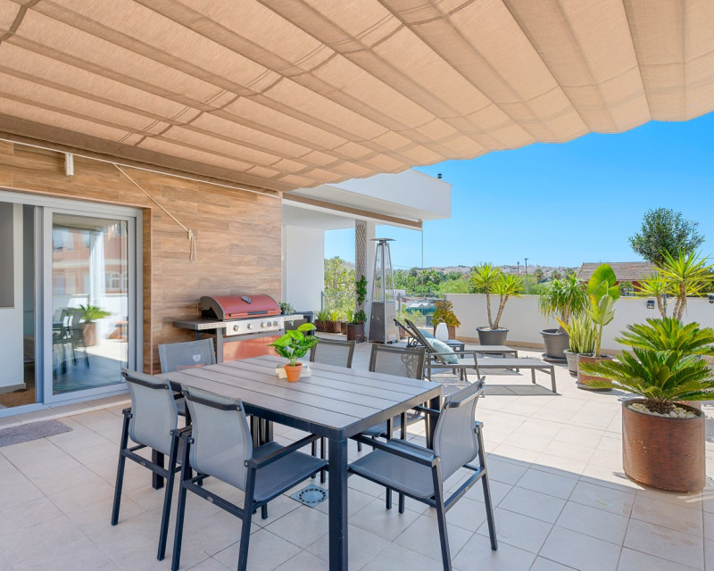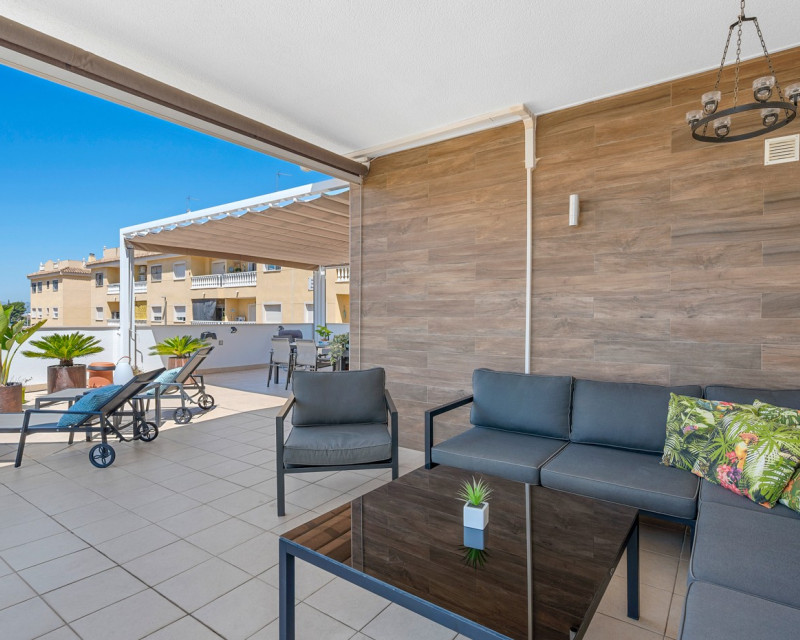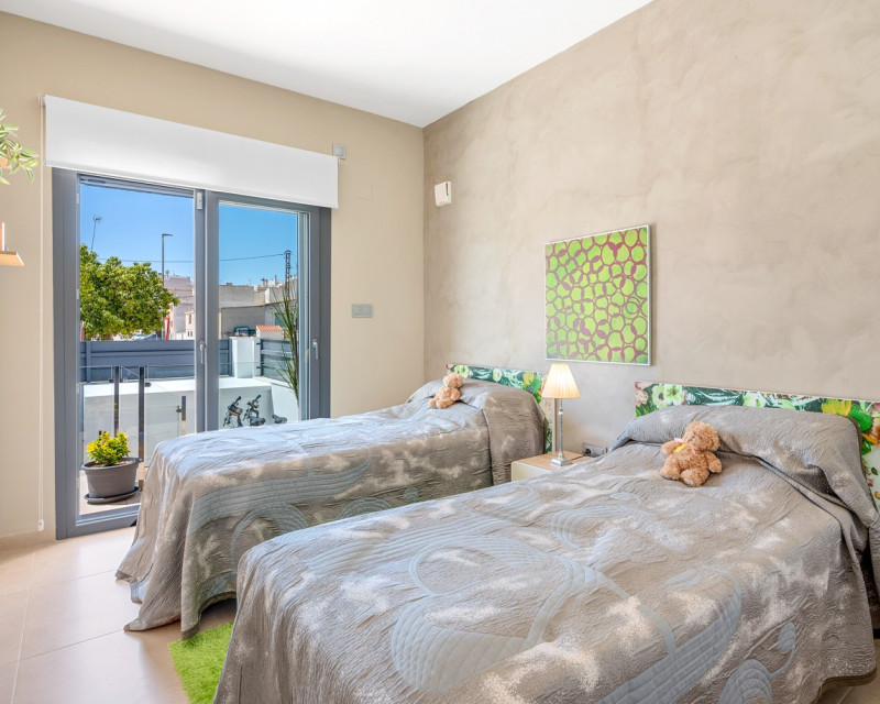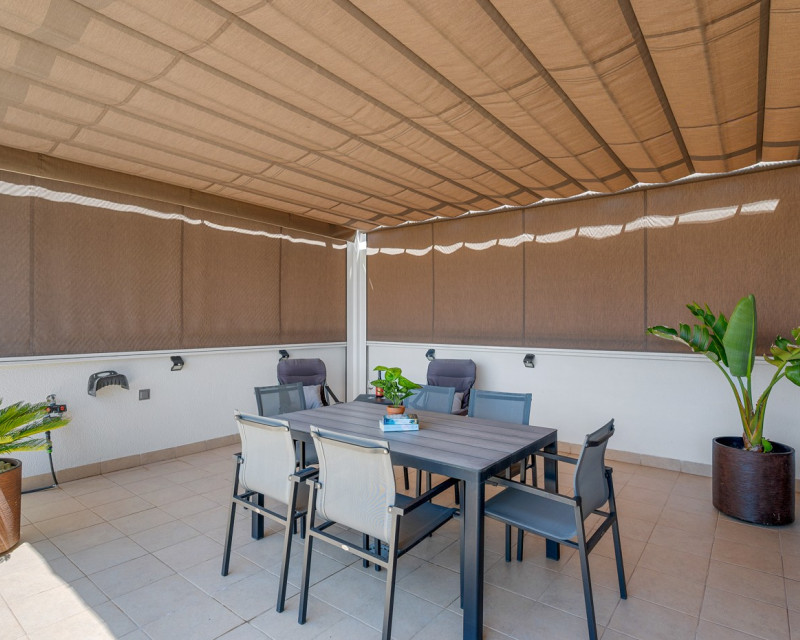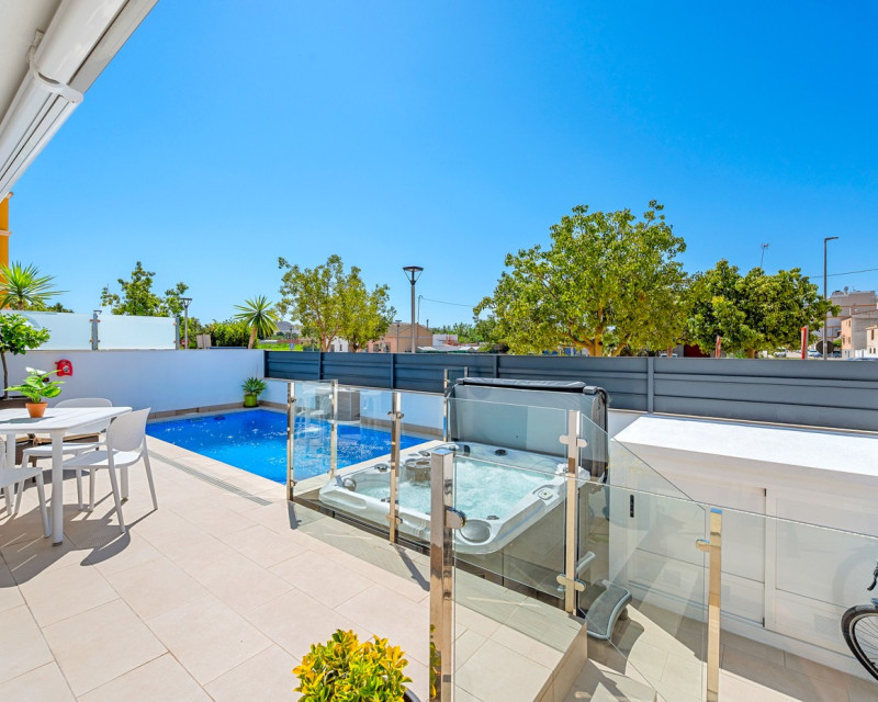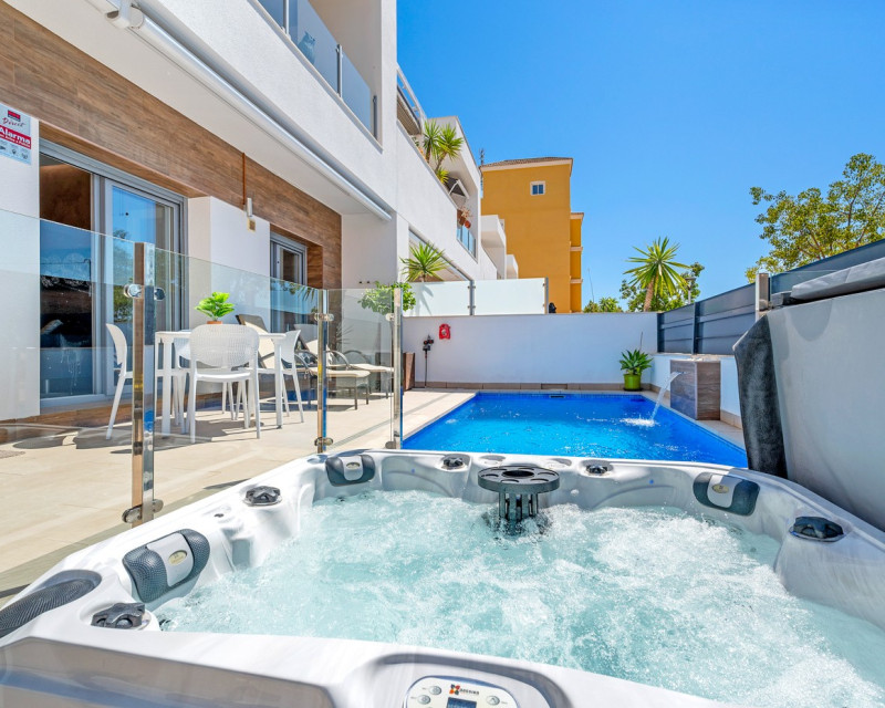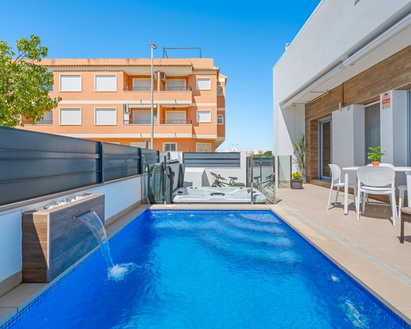 Situado en el corazón del encantador y auténtico pueblo español de Formentera del Segura, este adosado cuidadosamente mantenido combina a la perfección el confort moderno con el ambiente tradicional. Construido en 2018, forma parte de una comunidad exclusiva de solo cuatro viviendas. Esta es la primera reventa en el complejo, lo que lo convierte en una oportunidad muy especial. La propiedad cuenta con tres amplios dormitorios y dos elegantes baños, uno de ellos en suite. Dos dormitorios se encuentran en la planta baja, lo que hace que la vivienda sea práctica y cómoda durante todo el año. El interior está decorado con gusto y amueblado con piezas de alta calidad, todo incluido en la venta. Una verdadera vivienda llave en mano, en excelente estado de conservación. En el exterior, encontrará una piscina privada con cascada y un jacuzzi privado — el lugar perfecto para relajarse y disfrutar del estilo de vida mediterráneo. El solárium en la azotea ofrece un gran potencial, ya que está preparado para añadir un tercer baño privado, con instalaciones de desagüe y electricidad ya previstas. Con toldos integrados, pantallas de privacidad y una zona de estar cubierta, la terraza es ideal para entretener a los invitados o disfrutar de las impresionantes vistas. La casa está equipada con: Sistema de filtración de agua para toda la vivienda (agua potable directamente del grifo) Aire acondicionado central en la planta baja y unidad independiente en la planta superior Excelente ventilación, sin problemas de humedad Fibra óptica con cobertura incluso en la terraza — perfecta para teletrabajar Se vende totalmente amueblada. Formentera del Segura ofrece una comunidad internacional acogedora, conservando al mismo tiempo su auténtico espíritu español. Cafeterías, panaderías y restaurantes están a pocos pasos, con el supermercado más cercano a solo dos minutos andando. El colegio noruego está a 8 minutos en coche, y las playas doradas de Guardamar del Segura a solo 10 minutos. Además, hay varios campos de golf, rutas ciclistas y parques naturales en las inmediaciones. Un hogar realmente especial en una ubicación excepcional — perfecto para quienes buscan confort, estilo y una vida tranquila en la Costa Blanca.