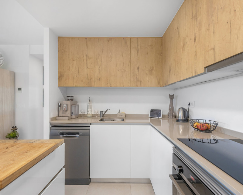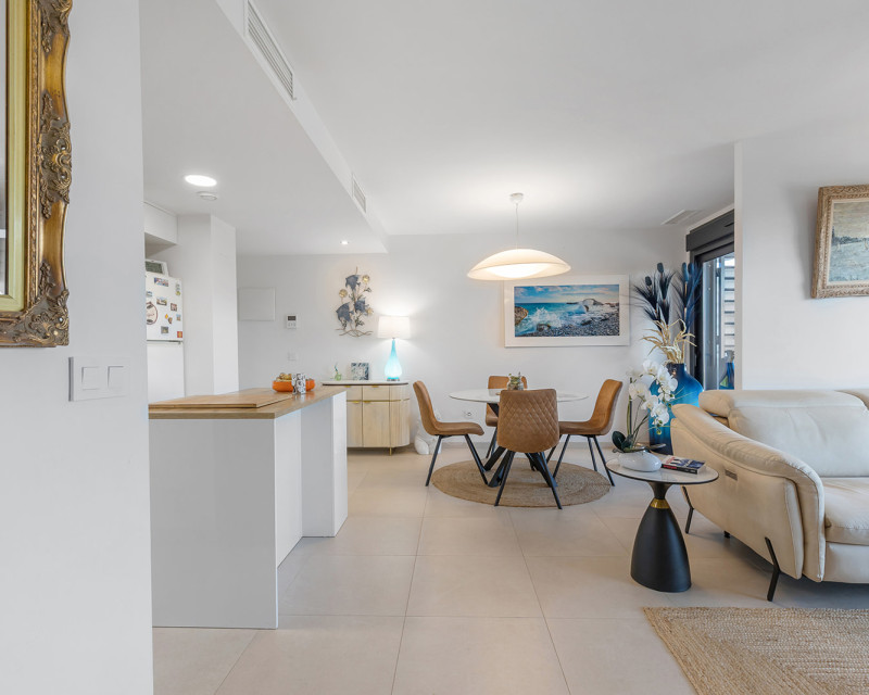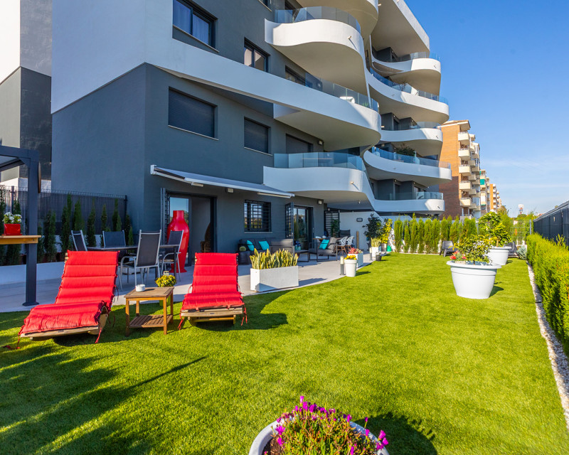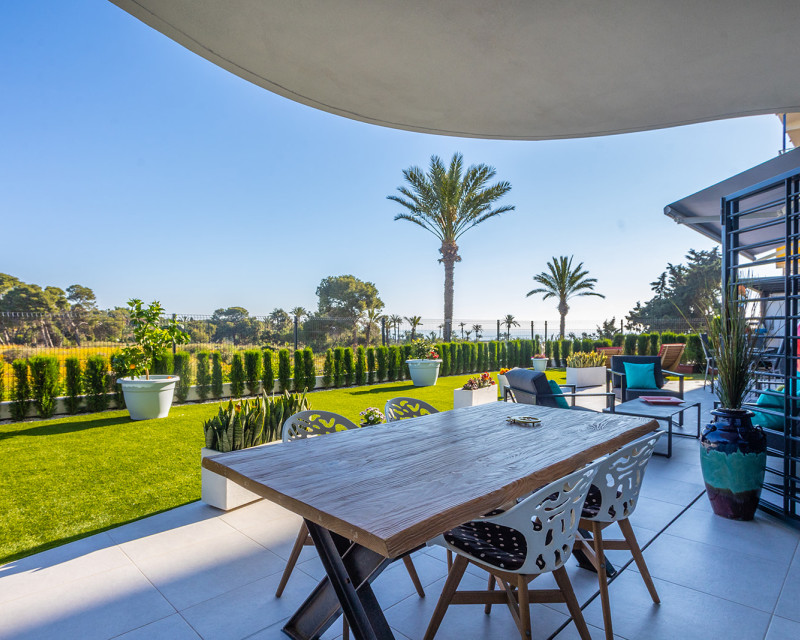 Este apartamento en el complejo Ocean Dream destaca por su funcionalidad y ubicación estratégica, a solo 200 metros de la playa de Punta Prima. Con 84 m² de superficie, la propiedad se distribuye en dos dormitorios y dos baños completos. Su principal atractivo es el amplio espacio exterior privativo: una terraza que conecta con un jardín de 95 m², manteniendo unas inusuales vistas abiertas al mar desde la planta baja.