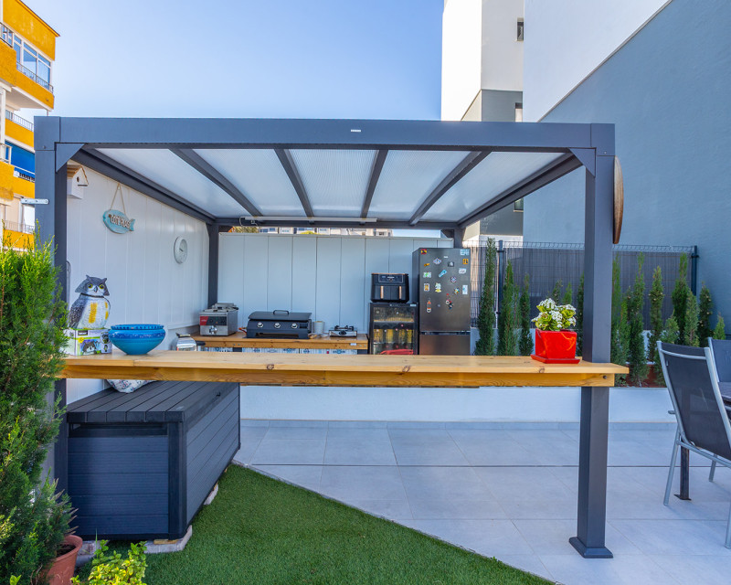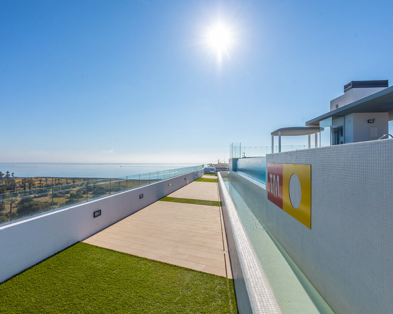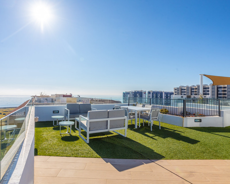 A nivel arquitectónico, el residencial optimiza el uso del espacio ubicando las zonas comunes en la cubierta. Esta azotea comunitaria cuenta con piscina, jacuzzi y zona de barbacoa, garantizando la máxima exposición solar y vistas panorámicas ininterrumpidas sobre el Mediterráneo.