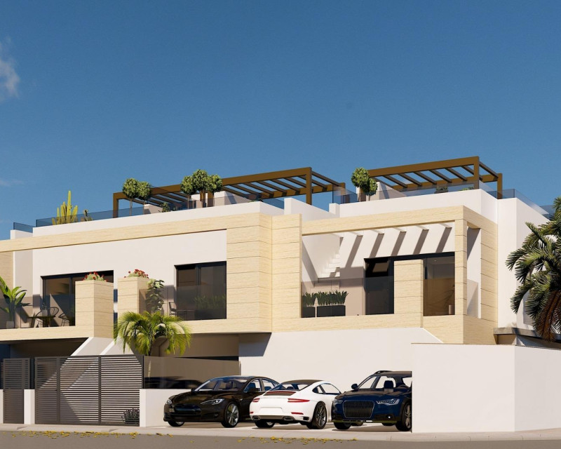 Bungalows de nueva construcción en Lo Pagán: Vida Moderna Cerca de la Playa Ubicación privilegiada en Lo Pagán, San Pedro del Pinatar Descubra el estilo de vida costero perfecto con estos bungalows de nueva construcción en Lo Pagán, una encantadora zona de San Pedro del Pinatar. Situado a sólo 1,2 km de la hermosa Playa de Villa Nanitos, estás a 15 minutos a pie de playas de arena y del icónico Molino Quintín. Esta ubicación privilegiada es perfecta para los amantes de la playa y los deportes náuticos, con clubes náuticos y puertos deportivos en las inmediaciones. Además, todos los servicios esenciales como supermercados, bares y restaurantes están a sólo unos minutos a pie. Características Estos elegantes bungalows disponen de 2 dormitorios, 2 baños, cocina americana y sala de estar. Los bungalows disponen de preinstalación de aire acondicionado, armarios empotrados e interiores modernos. Las unidades de la planta baja cuentan con una amplia terraza con la opción de añadir una piscina privada (disponible a un coste adicional), mientras que las unidades de la planta superior cuentan con un solarium privado con piscina incluida, perfecto para relajarse bajo el sol mediterráneo. Acabados de alta calidad Cada bungalow incluye una plaza de aparcamiento, y todos los apartamentos tienen acabados de alta calidad. Las características incluyen electrodomésticos de cocina Bosch, persianas eléctricas, pre instalación de aire acondicionado por conductos, baños totalmente equipados e iluminación LED tanto en el interior como en el exterior. Ideal para vivir todo el año Lo Pagán ofrece un estilo de vida tranquilo con una comunidad acogedora y establecida. Los residentes pueden disfrutar de actividades durante todo el año gracias al suave clima invernal de la región. La zona cuenta con piscinas cubiertas, instalaciones deportivas y una gran variedad de eventos sociales. Los baños de barro natural y las tranquilas aguas del Mar Menor contribuyen a su atractivo, convirtiéndolo en un destino privilegiado para el bienestar y la relajación. Atracciones cercanas Centro Comercial Dos Mares: 5 minutos en coche Aeropuerto de Murcia (Corvera): 30 minutos en coche Aeropuerto de Alicante: 1 hora en coche Los campos de golf y los puertos deportivos se encuentran a poca distancia en coche, lo que la convierte en una ubicación excelente tanto para el ocio como para la comodidad.