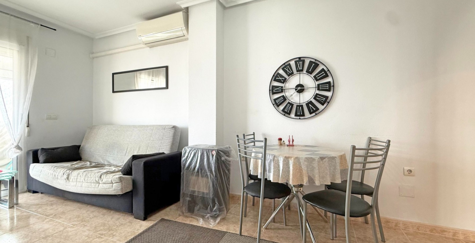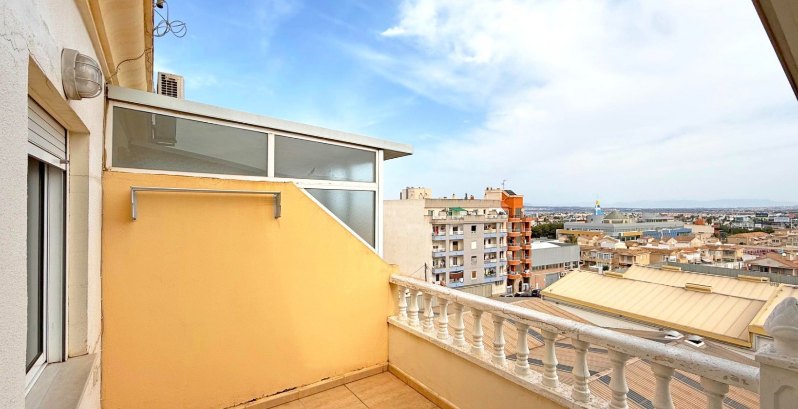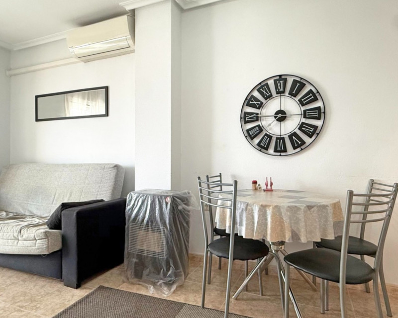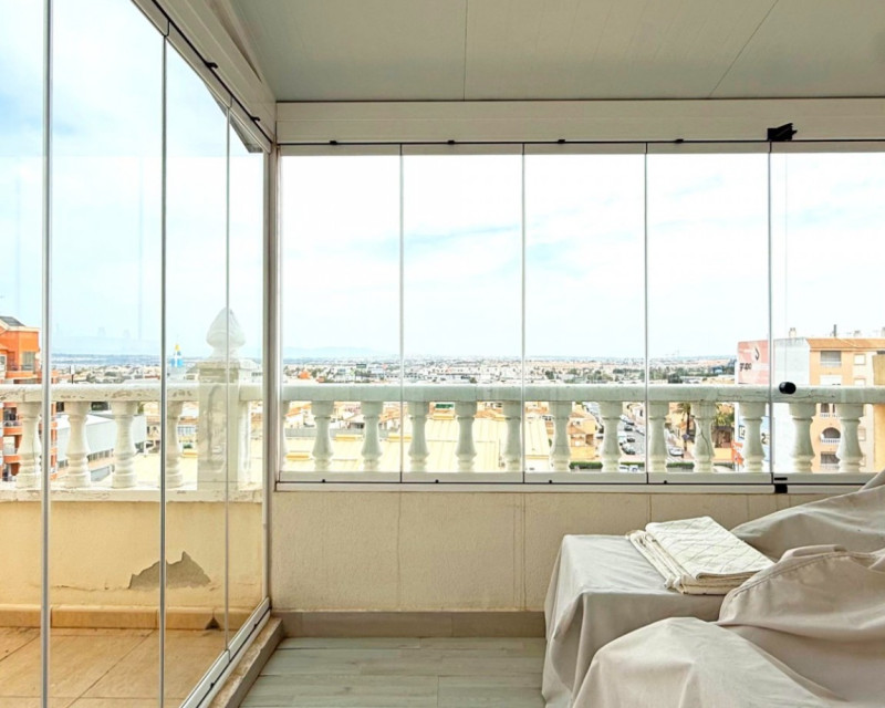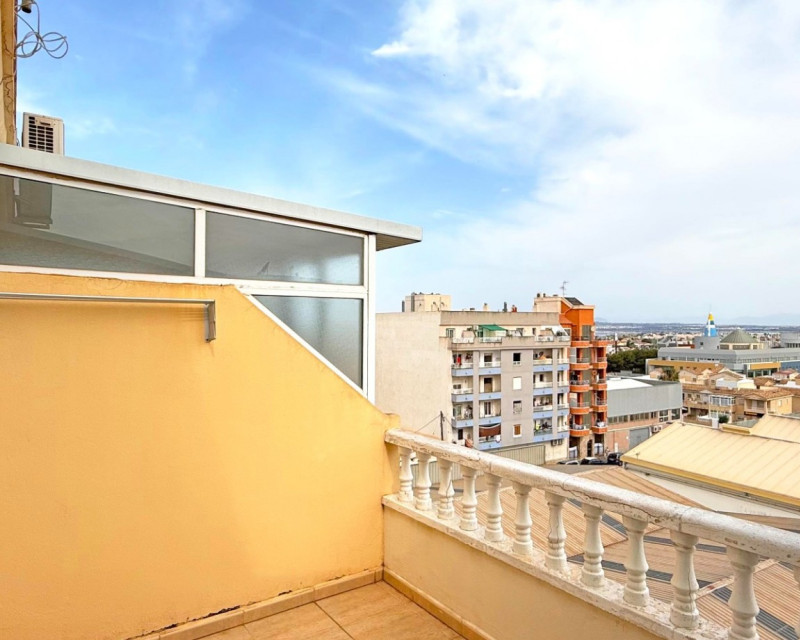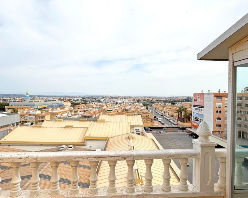 Descubre este ático en la quinta planta en el corazón de Torrevieja, idealmente ubicado a pocos pasos de tiendas, restaurantes y el paseo marítimo. Esta luminosa propiedad ofrece 2 dormitorios, 1 baño y una amplia sala de estar con aire acondicionado para mayor confort durante todo el año. El gran atractivo es la amplia terraza parcialmente acristalada, perfecta para disfrutar de comidas o relajarse contemplando las espectaculares vistas de la ciudad y la famosa laguna rosa. Se vende amueblado y listo para entrar a vivir. También incluye acceso a una piscina comunitaria bien mantenida, ideal tanto para vivir todo el año como para vacaciones. ¡Una oportunidad única de tener un hogar en la última planta con vistas inmejorables y una ubicación inmejorable!