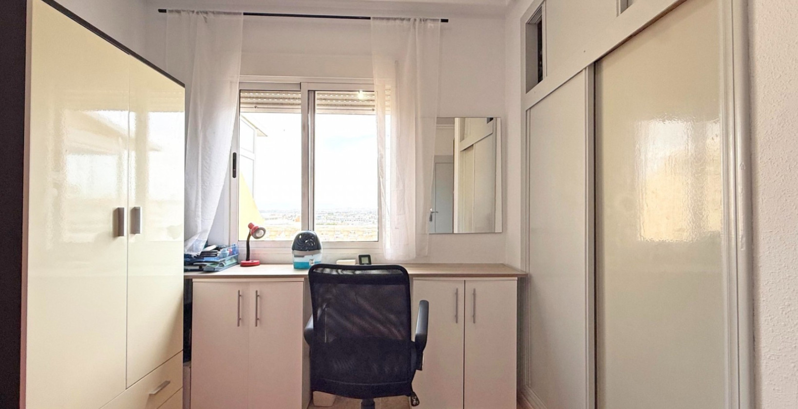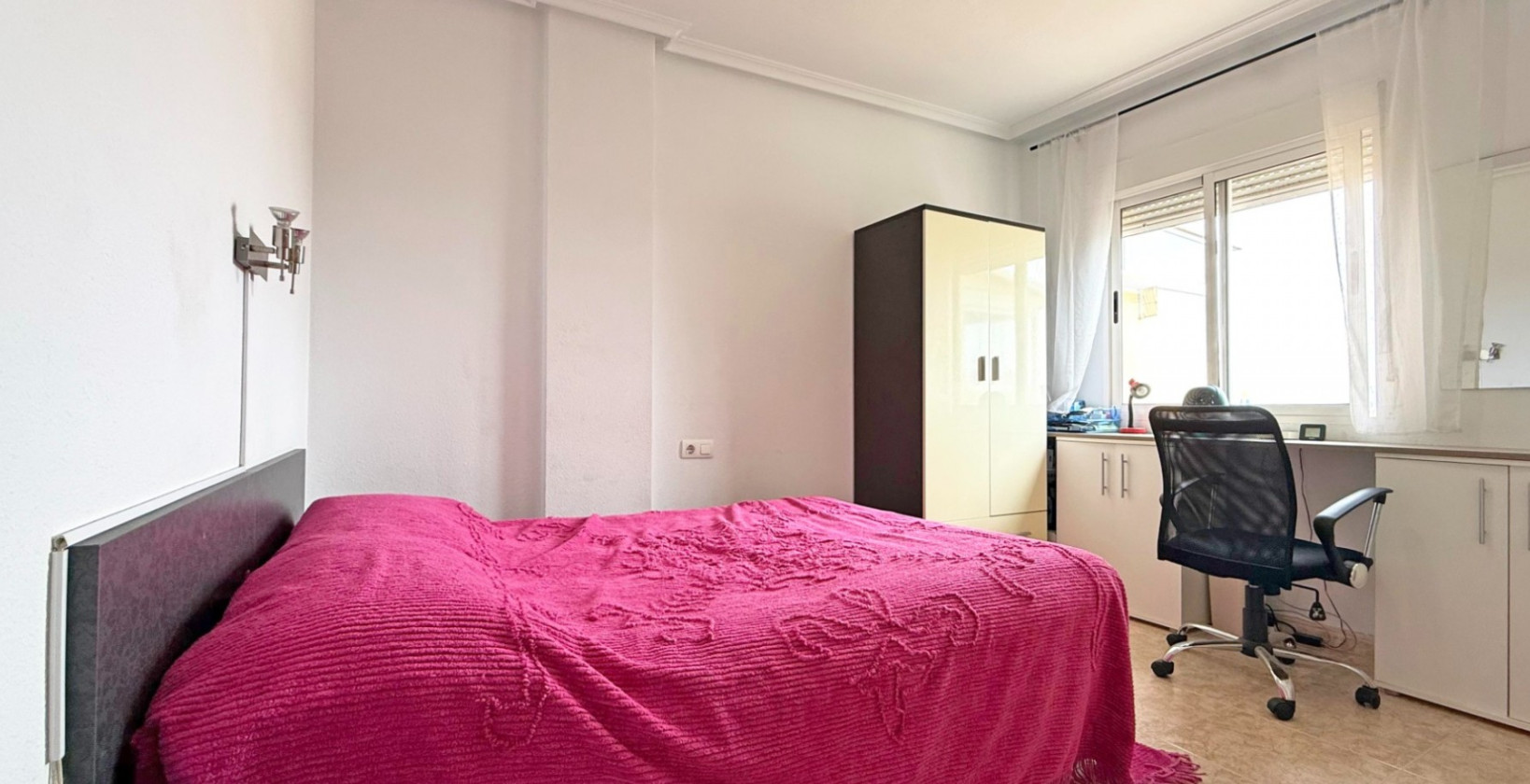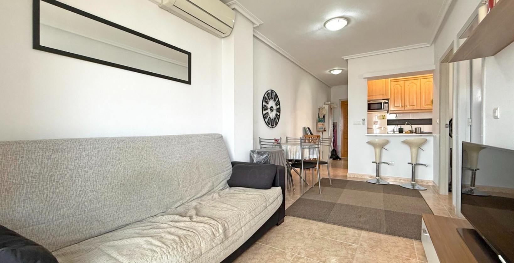 Descubre este ático en la quinta planta en el corazón de Torrevieja, idealmente ubicado a pocos pasos de tiendas, restaurantes y el paseo marítimo. Esta luminosa propiedad ofrece 2 dormitorios, 1 baño y una amplia sala de estar con aire acondicionado para mayor confort durante todo el año. El gran atractivo es la amplia terraza parcialmente acristalada, perfecta para disfrutar de comidas o relajarse contemplando las espectaculares vistas de la ciudad y la famosa laguna rosa. Se vende amueblado y listo para entrar a vivir. También incluye acceso a una piscina comunitaria bien mantenida, ideal tanto para vivir todo el año como para vacaciones. ¡Una oportunidad única de tener un hogar en la última planta con vistas inmejorables y una ubicación inmejorable!