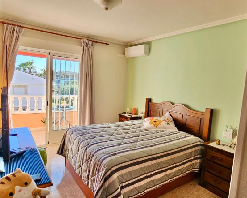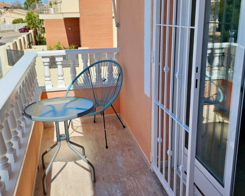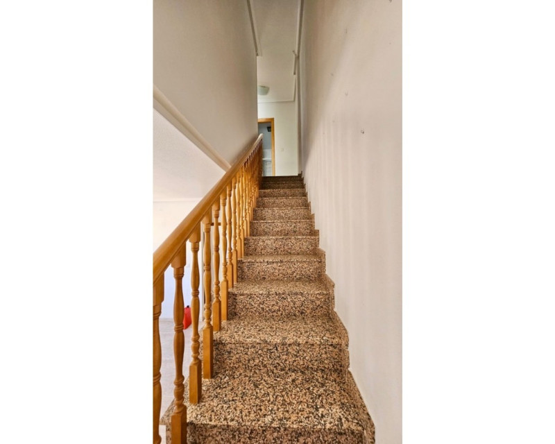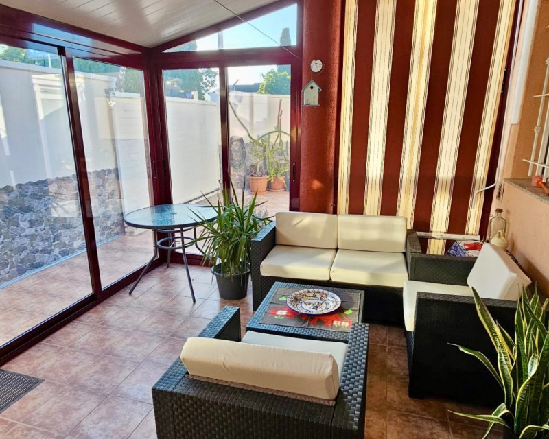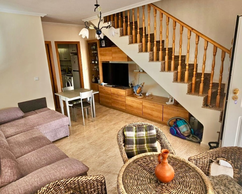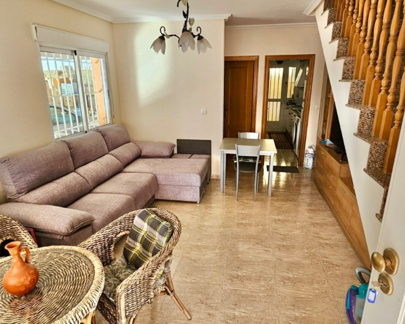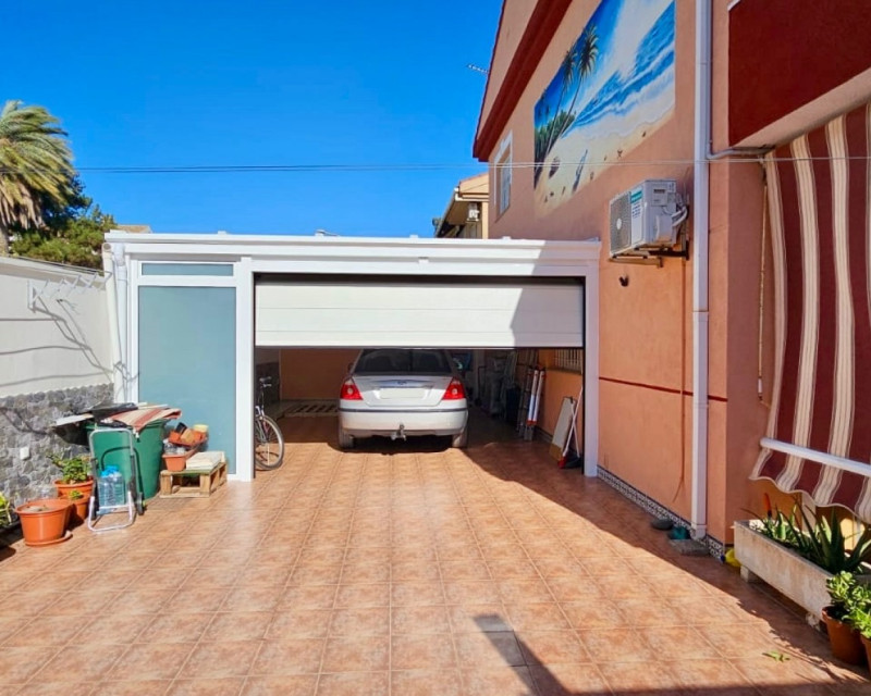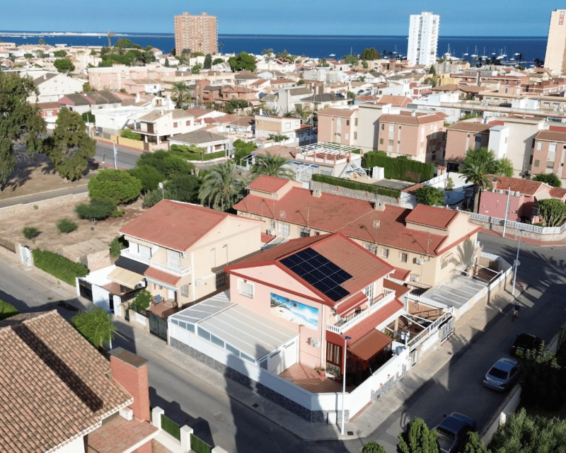 Descubre este luminoso dúplex adosado en esquina, situado a tan solo 440 metros de la playa y del paseo marítimo de Santiago de la Ribera. Con orientación sur, disfruta de sol todo el día y vistas despejadas a dos calles tranquilas sin edificios altos, ofreciendo privacidad y confort. Ubicado en una parcela de 165 m² con 155 m² construidos, cuenta con un amplio salón-comedor, una cocina recientemente reformada con electrodomésticos de calidad y un patio interior con techo retráctil que aporta mucha luz natural. Dispone de tres amplios dormitorios, dos baños, y se vende totalmente amueblado. Incluye garaje privado y trastero. Equipada con un sistema domótico completo, la vivienda permite controlar la iluminación, el aire acondicionado, la puerta del garaje, la energía solar y la seguridad desde el móvil. También dispone de cámaras de seguridad, videoportero, aire acondicionado centralizado frío/calor con tecnología inverter y dispositivos Wi-Fi. El sistema de energía solar fotovoltaica con 9 paneles garantiza eficiencia y ahorro. Cuenta además con puerta blindada y rejas en puertas y ventanas para máxima seguridad. Situado en una zona tranquila con centro médico público, mercado semanal a 50 m, y excelentes conexiones con Los Alcázares, Cartagena y Murcia. Cerca de campos de golf, club náutico, pistas de tenis, gimnasios, y numerosos chiringuitos y restaurantes para disfrutar del estilo de vida mediterráneo del Mar Menor.