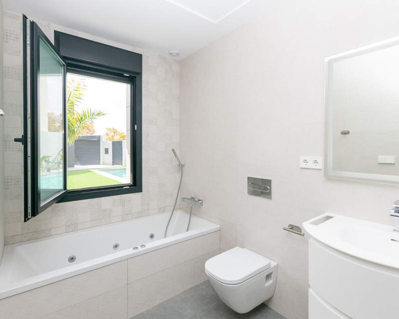 Le presentamos esta exclusiva vivienda de lujo situada en una de las zonas más codiciadas de San Pedro del Pinatar, rodeada de todos los servicios y comodidades a pocos metros: colegios, universidad, supermercados, restaurantes, gimnasios, bares, bancos y zonas de ocio, todo a su alcance para disfrutar de una vida cómoda y sofisticada junto al Mar Menor. A menos de 200 metros se encuentran el Colegio Castelar y la Facultad Castellar College; a pocos pasos, bares y restaurantes como Kus Karaoke, Trebol Sport Bar, Pub Estrella o Bombay Tacos – Indian & Mexican Restaurant; supermercados como Supermercado Pinatar II, Dia y Carrefour Express; además de entidades bancarias como La Caixa, SabadellCAM y Bankia. En la zona también se dispone de gimnasio, hospital privado y múltiples opciones de ocio, garantizando una ubicación inmejorable tanto para residencia habitual como para segunda vivienda. La propiedad destaca por su arquitectura contemporánea, tecnología avanzada y calidades premium en cada detalle, ofreciendo una experiencia residencial inigualable. Distribución y calidades destacadas Cinco dormitorios amplios, distribuidos en una suite principal con vestidor y baño premium, una junior suite con vestidor y baño, una habitación con baño en suite, y dos habitaciones dobles adicionales. Cinco baños completos con cuatro bañeras de hidromasaje, sanitarios de alta gama y un aseo exterior. Cocina de diseño totalmente equipada con electrodomésticos premium, sistema de cocina invisible bajo encimera y una despensa oculta perfectamente integrada. Dos patios interiores, uno junto al lavadero y otro con un espectacular bonsái gigante en el hall de entrada, aportando luz natural y serenidad a la vivienda. Depósito de agua de reserva de 1.000 litros, garantizando suministro constante. Chimenea eléctrica “Total Virtuo” de última generación. Sistema de domótica integral, permitiendo el control remoto de luces, persianas, climatización y otros sistemas. Suelo radiante en toda la vivienda, incluidas las duchas, para máximo confort en cualquier estación. Puertas de acceso acorazadas y persianas de seguridad eléctricas de acero en todas las estancias. Barbacoa completa en la terraza, ideal para reuniones familiares o sociales. Instalación fotovoltaica de 10 kW, que cubre el consumo energético de toda la vivienda. Garaje cubierto con punto de recarga para vehículos eléctricos. Piscina privada con zona de descanso, hidromasaje y cuello de cisne hidrante, perfecta para disfrutar del clima mediterráneo. Además, la propiedad cuenta con una amplia terraza en la azotea, con espacio suficiente para disfrutar de un solárium privado o para construir una habitación adicional, ya que una parte del perímetro está preparada estructuralmente para ello. Ubicación y entorno Situada en el corazón de San Pedro del Pinatar, esta vivienda ofrece el equilibrio perfecto entre tranquilidad y vida urbana. A solo minutos de las playas del Mar Menor y del Mediterráneo, cuenta con excelentes conexiones por carretera con Murcia, Cartagena y Alicante. Ideal para quienes buscan una residencia moderna, eficiente y segura, con todos los lujos y prestaciones de una villa de alto nivel.