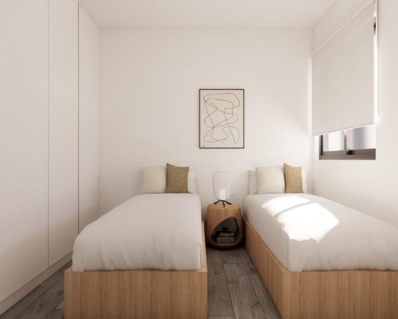 Nye middelhavsleiligheter bare 100 meter fra stranden i Torre de la Horadada Eksklusivt liv ved sjøen på Costa Blanca Oppdag dette nye boligprosjektet i Torre de la Horadada, med en ideell beliggenhet bare 100 meter fra sjøen, mellom Playa de los Jesuitas og Playa del Conde, to av de vakreste strendene i området. Dette eksklusive prosjektet består av bare 6 moderne leiligheter i middelhavsstil, og tilbyr en unik blanding av kystens sjarm og moderne komfort i et av de mest ettertraktede områdene på Costa Blanca Sør. Disse boligene ligger i en rolig, pittoresk kystby, omgitt av viktige tjenester som supermarkeder, restauranter, kafeer og butikker – alt innen gangavstand. Området er kjent for sin avslappede atmosfære, krystallklare vann og familievennlige miljø. Elegant design og kvalitetsfinish Hver leilighet har 2 soverom og 1 eller 2 bad, gjennomtenkt designet for å maksimere plass og naturlig lys. Interiøret har: Sikkerhetsdør for ekstra trygghet Innebygde garderober i soverommene, fullt kledd og ferdigbehandlet Moderne bad utstyrt med møbler, speil og dusjvegger Forhåndsinstallert luftkondisjonering for komfort hele året Disse høykvalitets finishene skaper lyse og funksjonelle boarealer, perfekte for både permanent bolig og feriebruk. Solarium på taket med basseng og chill-out-område Det som skiller seg ut ved dette prosjektet er det felles solariet på taket, som er tilgjengelig via trapper eller heis. Beboerne kan nyte et basseng på taket, utekjøkken, grill- og spiseplasser under pergolaer og et solområde med kunstgress. Denne eksklusive oasen på taket er det perfekte stedet å slappe av under den spanske solen. Førsteklasses beliggenhet og utmerket tilknytning Torre de la Horadada er kjent for sin fantastiske kystlinje, marina og livlige promenade. Prosjektet tilbyr enkel tilgang til nærliggende destinasjoner: Strender: 100 m Lo Romero golfbane: 7 km San Pedro del Pinatar: 5 km Murcia-Corvera flyplass: 40 minutter (55 km) Alicante lufthavn: 55 minutter (75 km) Din drømmebolig ved stranden venter Med sin uovertrufne beliggenhet, elegante design og eksepsjonelle fellesfasiliteter er dette nye boutique-boligprosjektet i Torre de la Horadada den perfekte muligheten til å nyte middelhavslivet. Kontakt oss i dag for å avtale en visning og sikre deg din nye bolig bare noen skritt fra havet på Costa Blanca.