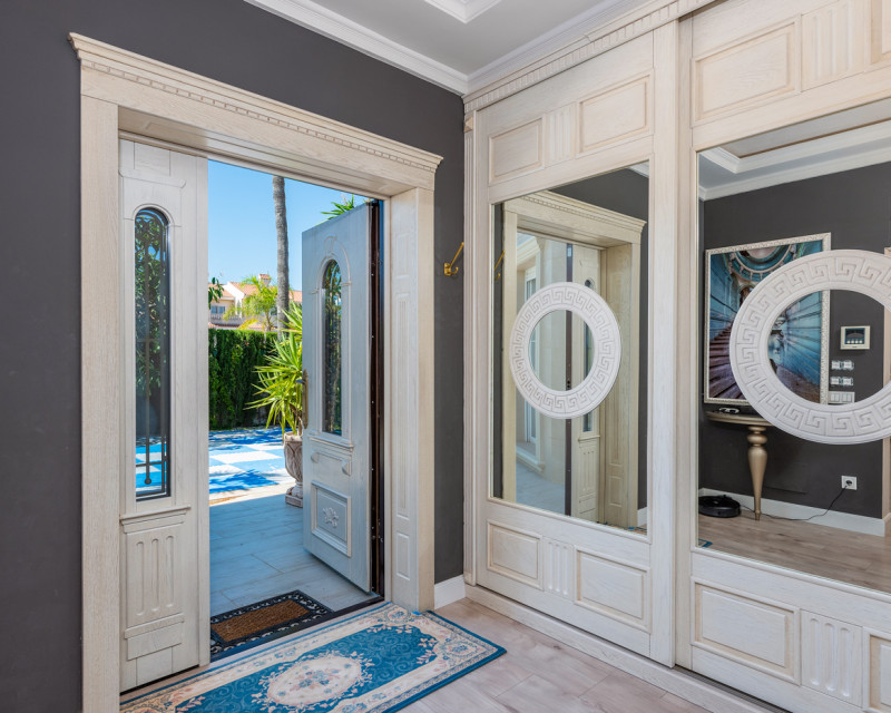 Vi er glade for å presentere dette vakre huset som inneholder 5 soverom og 3 bad i den populære Doña Pepa - Ciudad Quesada. Boligen er på 303kvm inkludert 20kvm garasje og består av to etasjer. Du kommer inn i en åpen hall hvor du har en lys og åpen adkomst til stue med stor takhøyde. I tillegg har du 2 doble soverom og 1 bad i første etasje. Stuen er stor og luftig med direkte utgang til en herlig terrasse, med utsikt over hagen. I denne etasjen finner du også vaskerom og direkte adkomst til garasje. I andre etasje har du en stor walk in closet, 3 store soverom og 2 bad, hvorav ett med eget bad. Boligen er utstyrt med integrert klimaanlegg i hver etasje og gulvvarme i hele huset. Uteområde Tomten er på 882kvm hvor du finner området med saltvannsbasseng m8 x 4m, utekjøkken med grill og lekeplass for barn. Du finner god plass til å ha flere sittegrupper og solsenger.