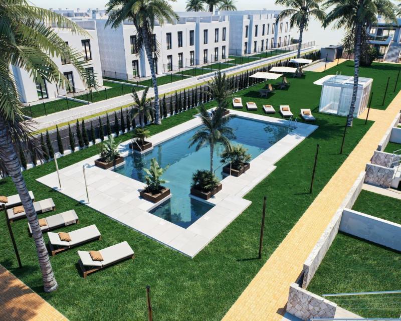 Nybyggede bungalower med hage eller solarium nær stranden i Pilar de la Horadada Moderne middelhavshus designet for komfort Oppdag dette eksklusive nybyggede boligkomplekset i Pilar de la Horadada, som tilbyr moderne bungalower mindre enn 2 km fra stranden. Disse boligene er designet for å kombinere komfort, stil og funksjonalitet, og er ideelle for helårsboende, ferier eller som en smart investering på Costa Blanca. Komplekset tilbyr et valg mellom bungalower i første etasje med private hager og bungalower i øverste etasje med private solarium på taket. Hver eiendom er nøye designet for å maksimere utendørslivet og få mest mulig ut av det middelhavsklimaet. Romslige boliger med 2 soverom og høykvalitets finish Hver bungalow har 2 soverom og 2 bad, hvorav det ene er eget, samt en privat parkeringsplass i den underjordiske garasjen. Boligene er bygget med kvalitetsmaterialer og moderne finish som sikrer energieffektivitet og holdbarhet. Viktige funksjoner inkluderer: Forhåndsinstallasjon for kanalisert klimaanlegg Aluminiumssnekkerarbeid på utsiden med doble vinduer og motoriserte persienner Sikkerhetsdør for trygghet Aerotermisk system for effektiv varmtvannsproduksjon Innebygde garderober i alle soverom Fullt utstyrte bad med møbler og dusjvegger Disse spesifikasjonene gir et komfortabelt og praktisk hjem som passer for alle årstider. Privat fellesområde med basseng og anlagte hager Boligkomplekset er privat og sikkert, med vakkert anlagte felleshager og et stort felles svømmebasseng. Dette skaper et behagelig og avslappende miljø hvor beboerne kan slappe av og nyte det utmerkede klimaet. Beliggende like utenfor sentrum, gjør dette boligkomplekset det mulig for beboerne å gå til supermarkeder, restauranter, barer, skoler og viktige tjenester uten å trenge bil. Utmerket beliggenhet nær strender og tjenester Pilar de la Horadada er en sjarmerende spansk by i den sørligste delen av Costa Blanca, kjent for sin livlige atmosfære, lokale butikker, tradisjonelle torg og vennlige samfunn. Sandstrendene Torre de la Horadada Beach og Mil Palmeras Beach ligger bare 2 km unna, og tilbyr fin gylden sand, en naturskjønn promenade og en marina. Området er også ideelt for sykling, turgåing og utendørssport. Avstander til viktige severdigheter Lo Romero Golf 5 km La Zenia Boulevard 15 km Murcia Corvera lufthavn 40 km Alicante lufthavn 55 km Torre de la Horadada marina 3 km Reserver ditt nye hjem i dag Ikke gå glipp av denne muligheten til å eie en splitter ny bungalow nær stranden i et av de mest attraktive områdene på Costa Blanca. Kontakt oss i dag for mer informasjon og for å avtale en visning.