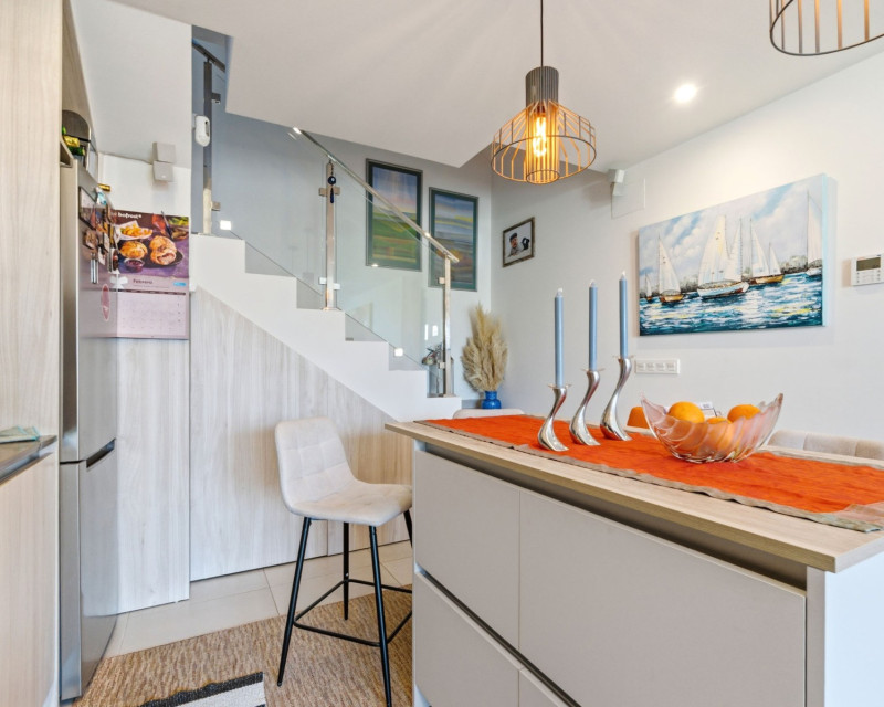 Innvendig fremstår boligen lys og moderne. Det fullt utstyrte kjøkkenet er sømløst integrert med stuen og skaper en åpen og sosial atmosfære. Elektriske persienner og vertikale gardiner gir komfort og skjerming. Sentralisert klimaanlegg via kanalsystem sørger for behagelig temperatur hele året. I første etasje finnes et komplett bad.