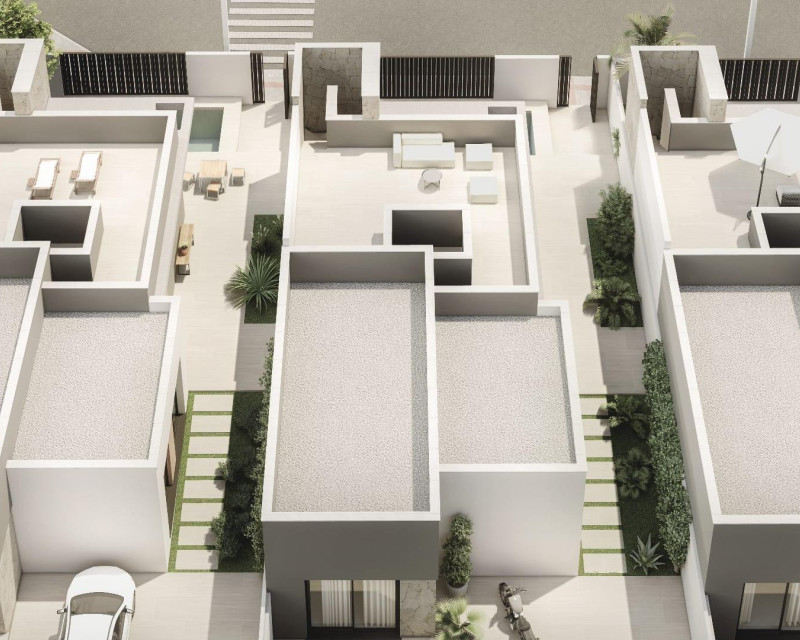 NYBYGDE VILLAER I SAN JUAN DE LOS TERREROS Den moderne og nyskapende arkitekturen til moderne villaer skaper et boligkompleks som ligger i byen San Juan de los Terreros i Pulpí, Almería, i Sør-Spania. Disse omhyggelig utformede boligene og boligkomplekset kombinerer et eksepsjonelt nivå av design og kvalitet med de høyeste standarder for bærekraft og velvære. Boligene er omhyggelig utformet av det tekniske arkitektteamet, slik at lys, romslighet og orientering gir hver bolig og tomt en helt spesiell karakter. Unike rom som åpner døren til en ny livsstil å nyte. Fundamentet og strukturen til husene er utført i armert betong og har ti års garanti. Fasadene er utformet for å redusere husets energibehov, kombinert med ulike materialer for å oppnå en estetisk konsistent komposisjon og farge som gjenspeiles i infografikken. Romslige terrasser utstyrt med solide brystninger for å gi sikkerhet på terrasserekkverkene, noe som gir amplitude og lysstyrke. Tomtens utvendige innhegninger vil bli behandlet med de samme materialene som brukes i huset, noe som sikrer integrering i boligkomplekset. Ventilerte og isolerte flate tak på plater, med forskjellige overflater i henhold til plassering og bruk. Inngangsdøren til huset vil være pansret. Dørene til hovedsoverommet, de sekundære badene og toalettene vil ha lås. Det utvendige snekkerarbeidet vil bestå av vinduer og franske vinduer i lakkert aluminium med opprullbare persienner av aluminiumslameller, motoriserte i stuene. Video intercom-system, som garanterer individuell adgangskontroll for hvert av husene. Badene vil være utstyrt med vask, toalett og dusj, og toalettene vil ha toalett og vask. Badene har sanitærutstyr i moderne design, laget av hvitt forglasset porselen fra Roca-merket og Gap-modellen, med ettgrepsbatterier i krom eller matt svart å velge mellom. Dusjveggene vil bli festet med 8 mm herdet glass med en lengde på 80 cm. Hver forhåndsinstallasjon er designet for et system med opptil 10 paneler, som kan installeres med en solcellevekselretter koblet til husets strømnett for å minimere strømforbruket. Panelene integreres på taket, i installasjonsområdet, skjult fra utsiden av boligen. Lufttilførselen til boligene sikres ved at det bygges inn et mikroventilasjonssystem i vinduene i stuer og soverom. Uavhengig røykavtrekk for kjøkkenvifte. En forhåndsinstallasjon av hjemmeautomatisering i boligen med forberedelser for en fremtidig installasjon av hjemmeautomatisering for styring av romklima og oppvarming, persienner og eventuelle innbruddsalarmsystemer. Forhåndsinstallasjon av videoovervåkning på parkeringsområdet og i de indre sonene på tomten. Hver bolig vil ha et fullt installert kjøkken i matt hvitt, i henhold til design, med et GOLA-system. De innvendige skapene vil være hvite, med hengslede dører og skuffer med bremser under den keramiske kokeplaten, klare til å installere synlige apparater. Hvitevarer er ikke inkludert. Soverom med innebygde garderober leveres med skyvedører i matt hvitt. Disse boligene vil være energieffektive og energisparende, samtidig som de har lav forurensning. De er designet med fokus på større effektivitet for lavere energiforbruk, noe som fremmer rasjonell energibruk samtidig som det tas hensyn til miljø, kvalitet og klimakomfort i boligen. Glass med lav emissivitet forhindrer varmetap til utsiden, noe som gir økonomiske besparelser ved å holde på varmen i boligen om vinteren og hindre at varmen trenger inn om sommeren. HVAC- og varmtvannssystemene er utformet med individuelle systemer for å maksimere forbruket og effektiviteten i hver enkelt bolig. San Juan de los Terreros er en kystlandsby som hører til Pulpí kommune. Den er kjent for sine fantastiske strender, de siste i Andalucia. Utenfor kysten av San Juan de los Terreros ligger det to små holmer av vulkansk natur som danner naturmonumentet Isla de Terreros-Isla Negra. Det mest karakteristiske monumentet i byen er slottet San Juan de los Terreros, som ble bygget i 1764 på en odde hvorfra man på klare dager kan se store deler av kystlinjene i Almería og Murcia. Her finner du roen og skjønnheten i naturen, omgitt av strender og bukter med krystallklart vann som er klassifisert blant de beste i Spania. Omgitt av beskyttet naturlandskap som fyller oss med ro og samtidig gir oss ny energi, takket være et pulserende gastronomisk, sosialt og sportslig tilbud. Eksklusive restauranter, sportsklubber og selvfølgelig utmerkede golfbaner med utsikt over havet, som Aguilón Golf. Et perfekt reisemål å nyte sammen med familien hele året.