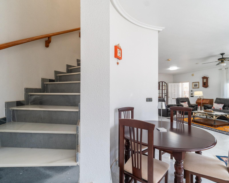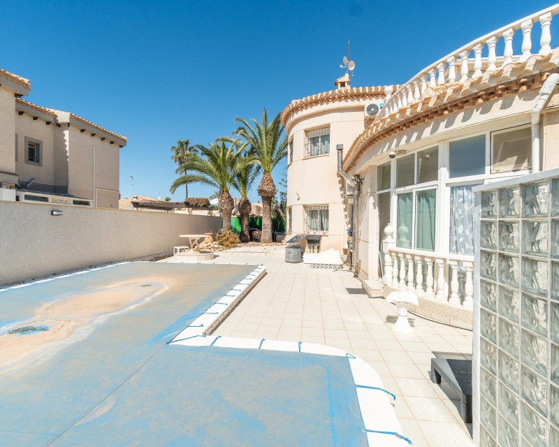 Denne store frittliggende villaen, som ligger på en tomt på 500 m2 med over 190 m2 boareal, har en flott beliggenhet i hjertet av Playa Flamenca. Den er virkelig innen gangavstand fra alt: supermarkeder, kommunale og private idrettsanlegg, kjøpesenteret Zenia Boulevard, en offentlig skole, rådhuset, butikker, leger og strendene i Orihuela Costa.~~Lørdagsmarkedet ligger svært nært, med direkte gangavstand, slik at du kan nyte shopping av frukt, grønnsaker og tradisjonelle produkter samtidig som du opplever atmosfæren i en liten spansk landsby. Samtidig kan du enkelt komme deg til eiendommen med bil uten å støte på veisperringer.~~Den 500 m2 store tomten, som nevnt, tilbyr en rekke muligheter for å nyte uteområdet, inkludert et svømmebasseng, grill, utekjøkken, solarium, pergolaer, parkering og mer. Vedlikeholdet er veldig enkelt, med terrasser, kunstgress og grusområder, som sikrer at det krever minimal innsats å holde hagen og uteområdene i perfekt stand.~~Eiendommen har parkering på stedet med automatiske porter og en privat garasje/bod for å beskytte kjøretøyet mot Alicante-solen. Bassengområdet er perfekt for soling i det uforstyrrede, mens den innebygde grillen og pergolaen i tre lar deg utnytte tomtens potensial fullt ut, takket være den sørvendte beliggenheten og soleksponeringen gjennom dagen. Dette sikrer også rikelig med naturlig lys i hele eiendommens oppholdsrom på dagtid.~~Det er en glassert solterrasse ved inngangen til huset, men med et tradisjonelt leirtak. Om vinteren, når solen står lavere, kan den brukes til soling, og om sommeren, ved å åpne glassvinduene og nyte skyggen fra taket, blir det et kjølig og luftig rom hvor du kan slappe av med en bok og tilbringe tid med familien i et delvis overbygd uteområde. Fra denne overbygde terrassen med buer kommer du inn i hovedhuset med sin store stue-spisestue, med peis og sørvendte vinduer for maksimalt naturlig lys og solskinn, og et delvis uavhengig kjøkken med frokostbar og et tilstøtende vaskerom som kombinerer spiskammer og vaskerom.~~I samme første etasje har huset to romslige soverom med innebygde garderober, et bad med dusjkabinett og en trapp som fører til andre etasje.~~Ovenpå finner du det store hovedsoverommet med utsikt over egen hage og svømmebasseng, et stort bad med dusjkabinett og et stort glassvindu som er perfekt for lekerom, kontor, gjesterom eller annen bruk. Dette kompletteres av resten av takterrassen, som tilbyr havutsikt og sørvendt orientering, noe som sikrer solskinn hele dagen.~~Kort sagt, dette er en frittliggende villa i en sentral og god beliggenhet, med uteområder for fritid og familiekos. Den er i perfekt stand og klar til innflytting, og et besøk er vel verdt det for å sette pris på de utmerkede funksjonene.~~Pris: €640 000. Skatter og avgifter er ikke inkludert (i henhold til gjeldende forskrifter). En oversikt over tilleggskostnader vil bli gitt før bestilling.~~Ved transaksjon med to mellommenn vil kjøperens honorar være 1,5 % av den endelige kjøpesummen, med et minimum på 3 000 euro, pluss mva. (21 %), med mindre annet er uttrykkelig avtalt. Disse honorarene er ikke inkludert i den annonserte prisen.