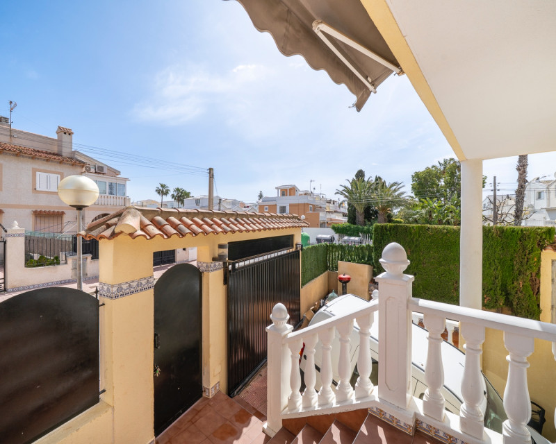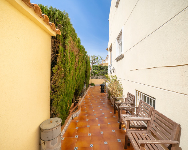 Enderekkehus beliggende i et rolig boligområde i Guardamar del Segura, ideelt for de som søker komfort og nærhet til sjøen. Boligen fra 1997 er i god stand og klar til innflytting. Den har fire soverom, to bad og et ekstra toalett. Kjøkkenet er separat og funksjonelt. Sørøstvendt beliggenhet gir godt med naturlig lys. Uteområdet har en overbygd terrasse og åpne områder med utsikt mot grøntområder. Eiendommen har tilgang til felles basseng. Den er utstyrt med aircondition, sentralvarme, innebygde garderober, selges fullt møblert og har kjeller med privat garasje.