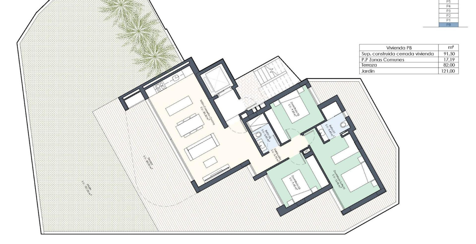 Nybyggede leiligheter med utsikt over elven i Guardamar del Segura Eksklusivt boligområde med bare 9 moderne boliger Dette nye boligprosjektet i Guardamar del Segura, Alicante, tilbyr en unik mulighet til å bo i en privilegert beliggenhet med uhindret utsikt over elven Segura og Vega Baja. Bygningen består av bare 9 eksklusive boliger, en per etasje, noe som garanterer privatliv, ro og komfort. Romslige boliger med store terrasser Hver leilighet har 3 soverom og 2 bad, i tillegg til store uteområder: Første etasje med privat hage på 120 m² Mellometasjer med terrasser på 18 m² Penthouse med terrasse og privat solarium på 78 m² Disse eiendommene er designet i en moderne stil, ideell både for permanent opphold og ferier på Costa Blanca. Førsteklasses utstyr og kvaliteter Boligene leveres med utmerket finish, designet for å tilby komfort og effektivitet: Pansret inngangsdør Bad med hengende servanter, speil, veggmontert dusjkar og glassvegg Aerotermisk system for varmt vann (100 liter) Parkeringsplass inkludert i prisen Ideell beliggenhet nær sjøen og alle tjenester Boligområdet ligger bare 1,4 km fra stranden og få minutter fra havnen i Guardamar, den naturlige pinjeskogen og et livlig shoppingområde med supermarkeder, restauranter og viktige tjenester. Omtrentlige avstander til viktige steder: Guardamar sentrum: 1,2 km (15 minutters gange) Nærmeste strand: 1,4 km Yachthavn: 1 km Reina Sofía-parken: 1,5 km La Marquesa golfbane (Ciudad Quesada): 9 km Habaneras kjøpesenter (Torrevieja): 13 km Alicante-Elche flyplass: 33 km Guardamar har også direkte bussforbindelse til Alicante og Torrevieja, noe som gjør det enkelt å komme seg rundt uten egen bil. Ditt nye hjem i Guardamar venter på deg Enten det er som investering, permanent bolig eller feriehus, representerer dette boligområdet en unik mulighet i et av de mest etterspurte områdene på Costa Blanca. Kontakt oss nå og sikre deg din leilighet med utsikt i Guardamar del Segura.