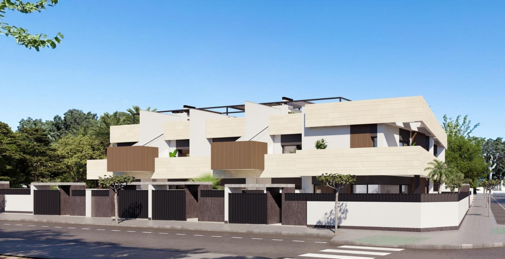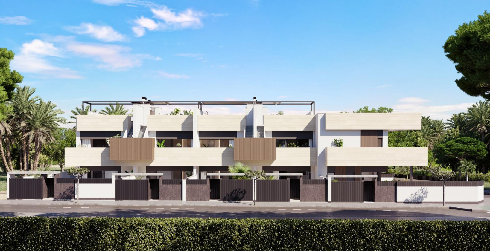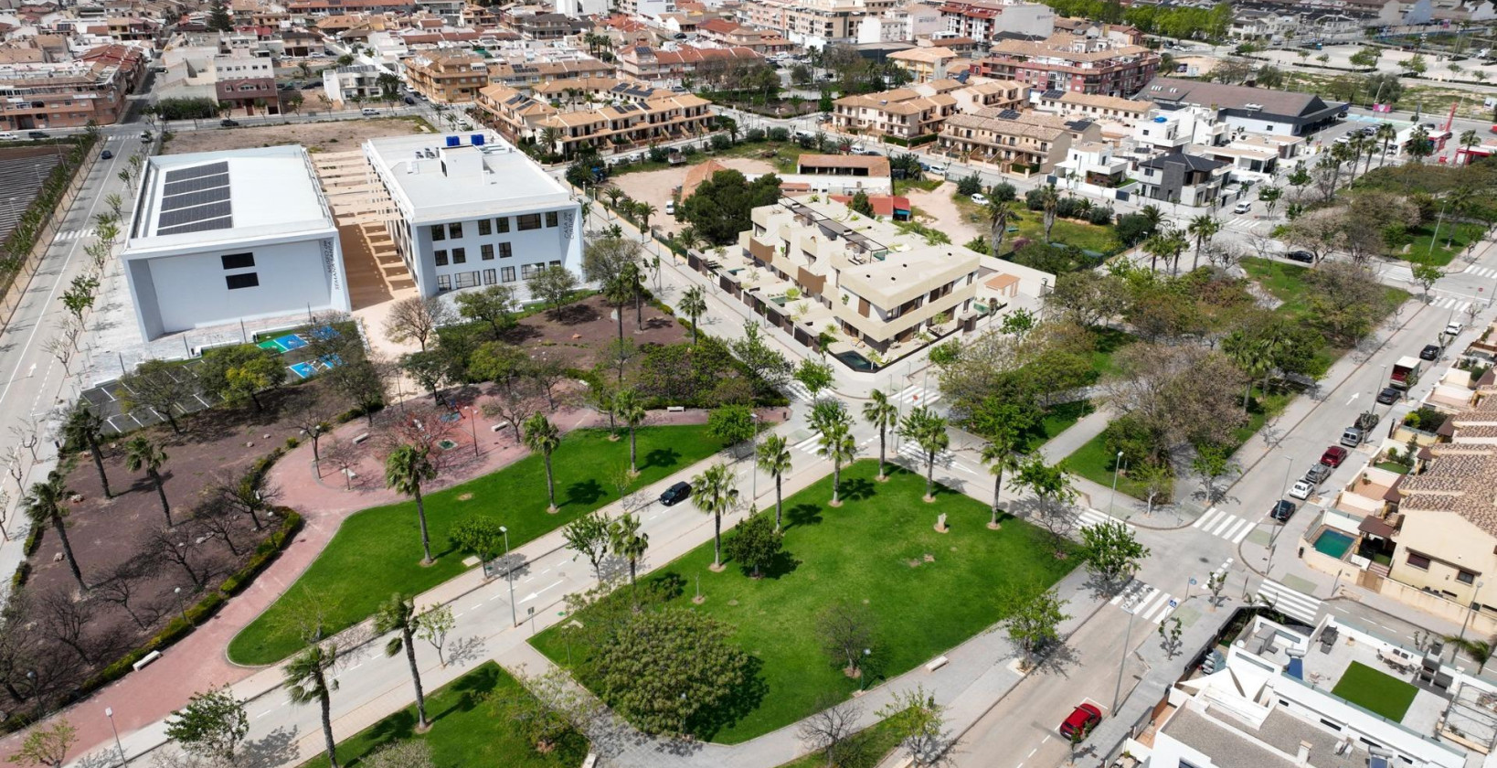 Boutique-utvikling av nybyggede boliger med private bassenger i Pilar de la Horadada Eksklusivt boligområde i en førsteklasses beliggenhet på Costa Blanca Oppdag dette boutique-nybyggprosjektet med bare 10 eksklusive boliger i Pilar de la Horadada, en sjarmerende kystby sør på Costa Blanca. Dette moderne prosjektet ligger i utkanten av byen og tilbyr åpen utsikt mot grønne parkområder, samtidig som det ligger bare 2 km fra Middelhavsstrendene i Torre de la Horadada. Nyt bekvemmeligheten av å ha alle nødvendige tjenester innen gangavstand, inkludert supermarkeder, restauranter, banker, skoler og helsetjenester. Valg av planløsninger med private uteområder Dette nye prosjektet tilbyr en rekke planløsninger med 2 og 3 soverom som passer til forskjellige behov og livsstiler: Husene i første etasje har privat hage, basseng med strandområde og fullt anlagt uteområde med automatisk vanning. Husene i øverste etasje har privat solarium med sommerkjøkken, pergola, utedo og privat basseng med innebygd boblebad, samt eget sykkelrom i første etasje. Tomannsboliger tilbyr romslig innendørs og utendørs areal med privat hage og basseng, ideelt for familieliv eller lengre opphold. Alle boliger har privat parkeringsplass. Premium-funksjoner og høykvalitets finish Alle boliger er designet med tanke på komfort, effektivitet og stil, og er utstyrt med: Fullt installert klimaanlegg Elektriske persienner og forsterkede inngangsdører LED-belysningspakke for innendørs og utendørs områder Innredede kjøkken med apparater fra BOSCH eller SIEMENS Stilfulle bad med gulvvarme, speil, servantskap og dusjvegger Moderne design som maksimerer naturlig lys og funksjonalitet Disse gjennomtenkte boligene tilbyr en sømløs blanding av innendørs komfort og utendørs liv, perfekt for å nyte det varme middelhavsklimaet hele året. Viktige avstander: Strender: 2 km Lo Romero golfbane: 6 km Dos Mares kjøpesenter (San Javier): 10 km Zenia Boulevard kjøpesenter (Orihuela Costa): 12 km Murcia internasjonale lufthavn: 40 km Alicante lufthavn: 70 km Ideelt for å bo eller investere Med begrenset tilgjengelighet og en privilegert beliggenhet representerer dette nye prosjektet i Pilar de la Horadada en fantastisk mulighet for både permanent bolig og investering. Enten du er på jakt etter en feriebolig, et sted å tilbringe pensjonisttilværelsen eller en utleiebolig, tilbyr disse moderne boligene alt du trenger. Kontakt oss i dag for å sikre deg din nye bolig på Costa Blanca.