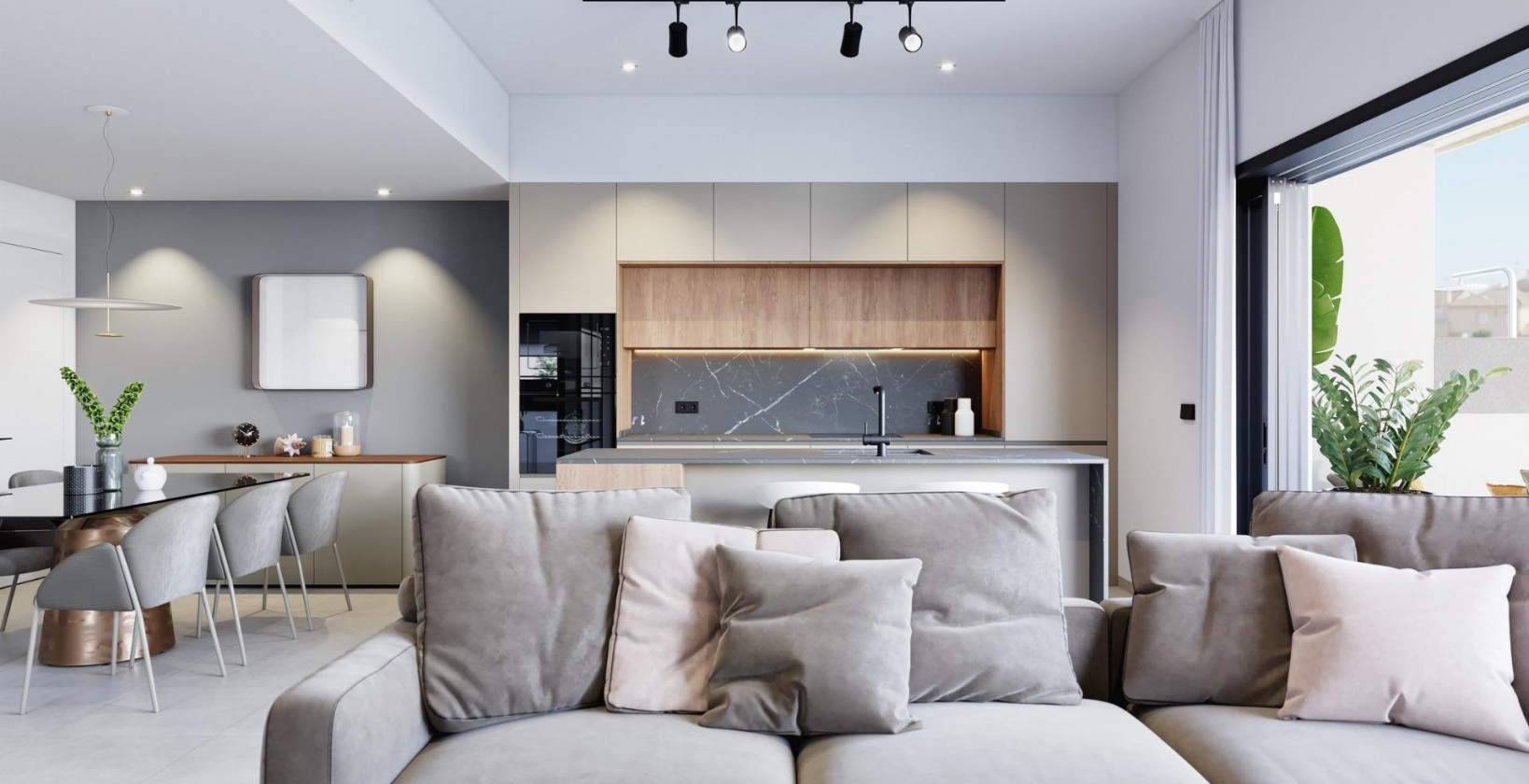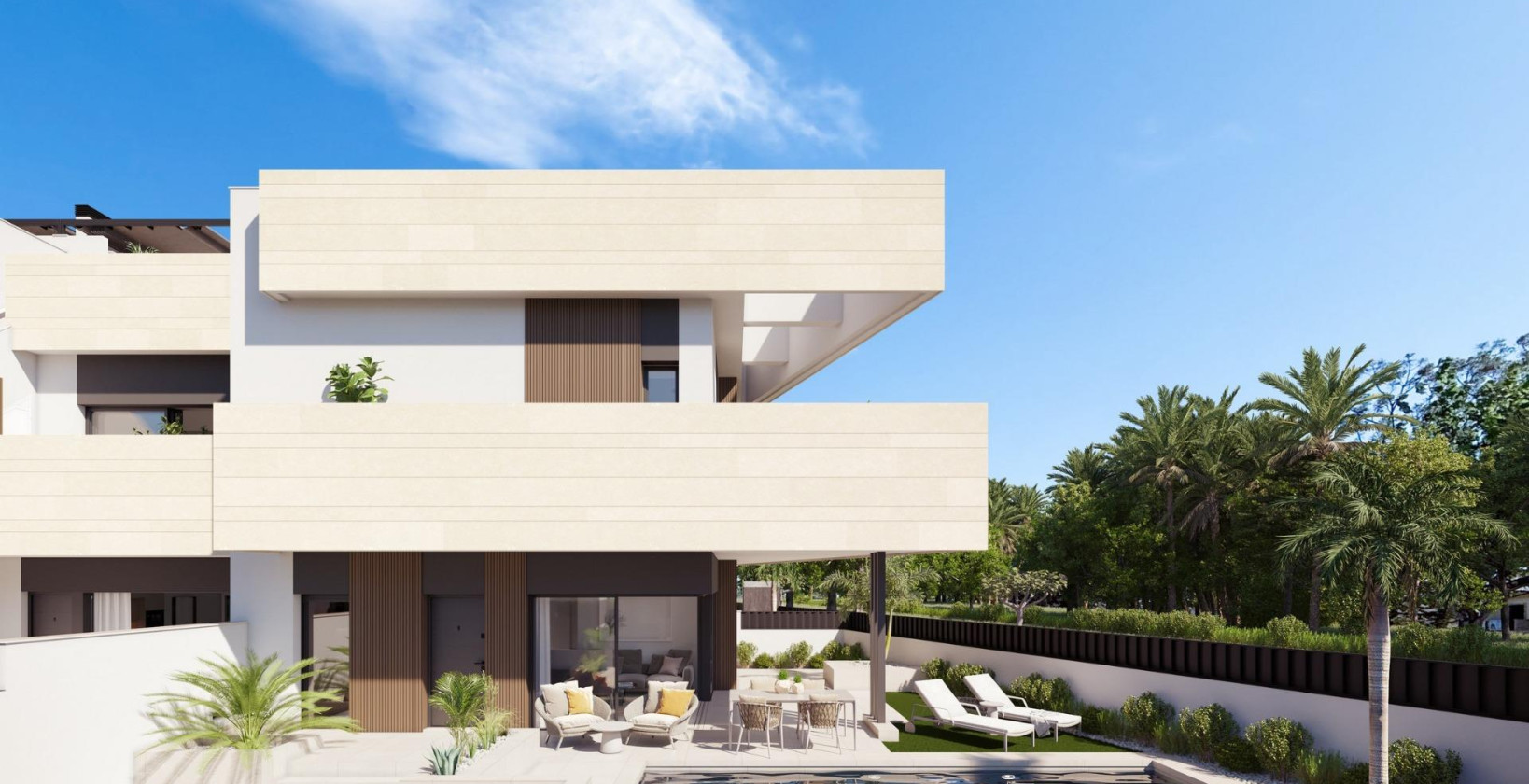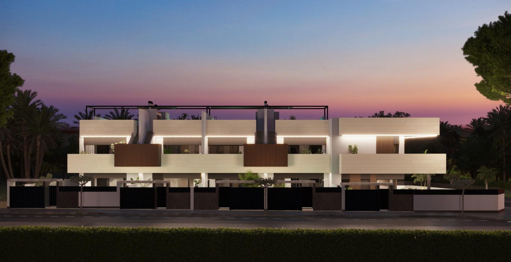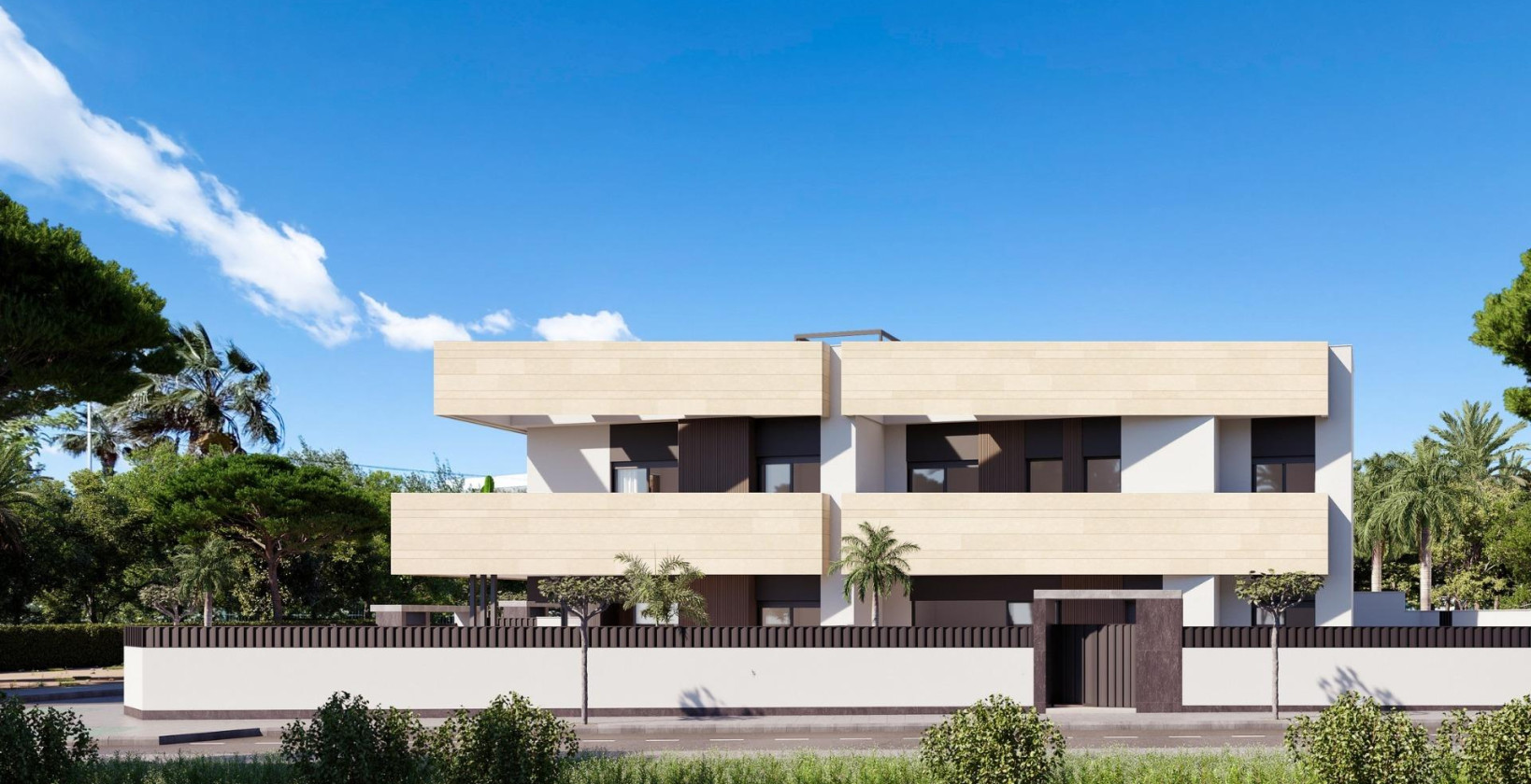 Boutique-utvikling av nybyggede boliger med private bassenger i Pilar de la Horadada Eksklusivt boligområde i en førsteklasses beliggenhet på Costa Blanca Oppdag dette boutique-nybyggprosjektet med bare 10 eksklusive boliger i Pilar de la Horadada, en sjarmerende kystby sør på Costa Blanca. Dette moderne prosjektet ligger i utkanten av byen og tilbyr åpen utsikt mot grønne parkområder, samtidig som det ligger bare 2 km fra Middelhavsstrendene i Torre de la Horadada. Nyt bekvemmeligheten av å ha alle nødvendige tjenester innen gangavstand, inkludert supermarkeder, restauranter, banker, skoler og helsetjenester. Valg av planløsninger med private uteområder Dette nye prosjektet tilbyr en rekke planløsninger med 2 og 3 soverom som passer til forskjellige behov og livsstiler: Husene i første etasje har privat hage, basseng med strandområde og fullt anlagt uteområde med automatisk vanning. Husene i øverste etasje har privat solarium med sommerkjøkken, pergola, utedo og privat basseng med innebygd boblebad, samt eget sykkelrom i første etasje. Tomannsboliger tilbyr romslig innendørs og utendørs areal med privat hage og basseng, ideelt for familieliv eller lengre opphold. Alle boliger har privat parkeringsplass. Premium-funksjoner og høykvalitets finish Alle boliger er designet med tanke på komfort, effektivitet og stil, og er utstyrt med: Fullt installert klimaanlegg Elektriske persienner og forsterkede inngangsdører LED-belysningspakke for innendørs og utendørs områder Innredede kjøkken med apparater fra BOSCH eller SIEMENS Stilfulle bad med gulvvarme, speil, servantskap og dusjvegger Moderne design som maksimerer naturlig lys og funksjonalitet Disse gjennomtenkte boligene tilbyr en sømløs blanding av innendørs komfort og utendørs liv, perfekt for å nyte det varme middelhavsklimaet hele året. Viktige avstander: Strender: 2 km Lo Romero golfbane: 6 km Dos Mares kjøpesenter (San Javier): 10 km Zenia Boulevard kjøpesenter (Orihuela Costa): 12 km Murcia internasjonale lufthavn: 40 km Alicante lufthavn: 70 km Ideelt for å bo eller investere Med begrenset tilgjengelighet og en privilegert beliggenhet representerer dette nye prosjektet i Pilar de la Horadada en fantastisk mulighet for både permanent bolig og investering. Enten du er på jakt etter en feriebolig, et sted å tilbringe pensjonisttilværelsen eller en utleiebolig, tilbyr disse moderne boligene alt du trenger. Kontakt oss i dag for å sikre deg din nye bolig på Costa Blanca.
