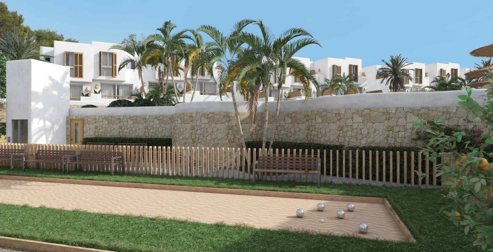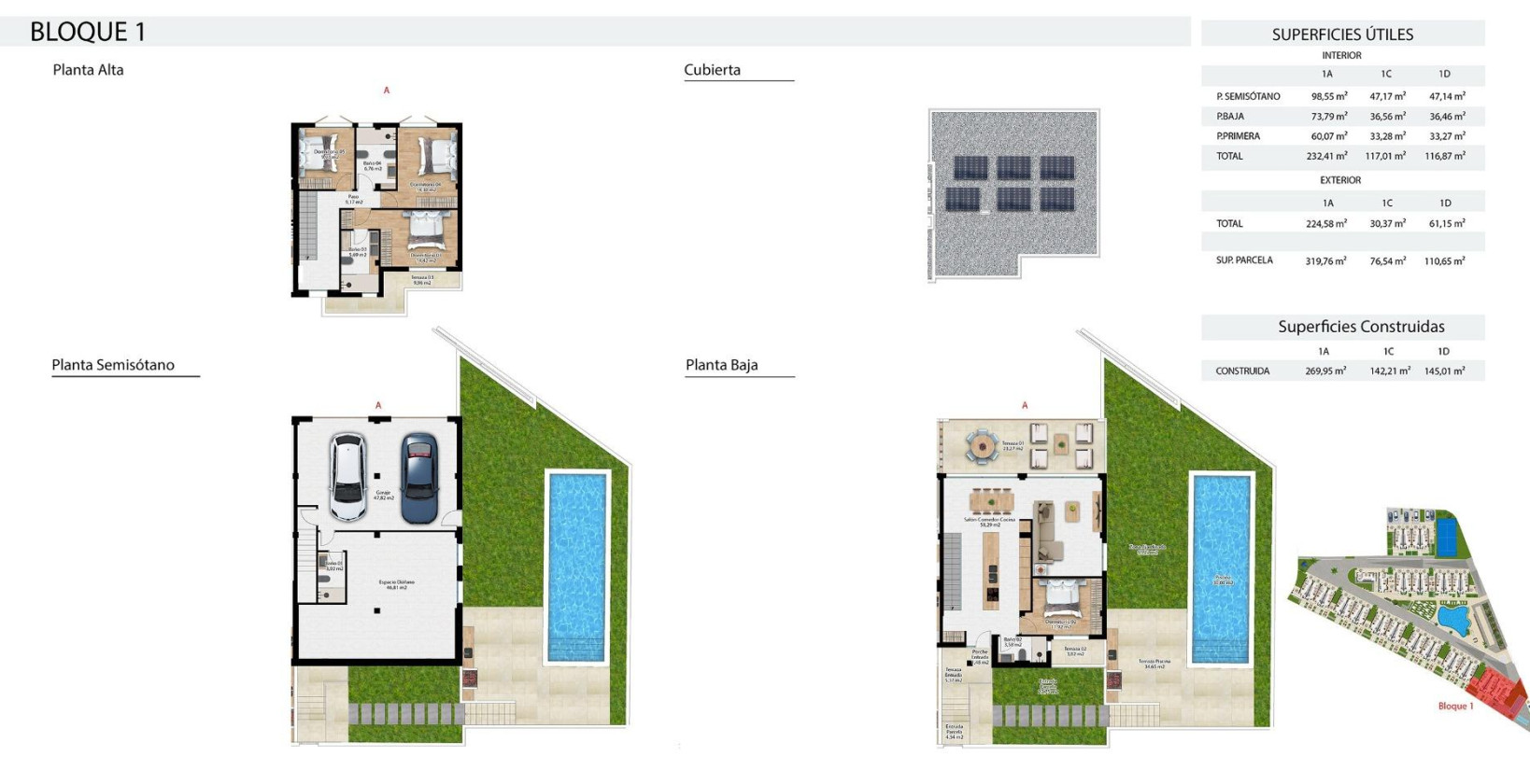 Nybygget tomannsbolig i Ráfol de Almunia: natur, komfort og moderne design Sjarmerende hus i rolige, naturskjønne omgivelser Dette nye boligprosjektet ligger i det rolige boligområdet La Almunia, i nærheten av Ráfol de Almunia, og tilbyr tomannsboliger og tomannsboliger med vakker design omgitt av natur. Bare 6 km fra de nærmeste strendene og bare 2 km fra sentrum av landsbyen, tilbyr dette boligområdet den perfekte balansen mellom landlig fred og enkel tilgang til de beste tjenestene på Costa Blanca. Ráfol de Almunia er en pittoresk landsby i Marina Alta, i Alicante, kjent for sine rolige landskap, appelsinlunder og fjellutsikt. Det er ideelt for de som søker et rolig og familievennlig miljø med en middelhavs livsstil. Moderne rekkehus med store rom Hver eiendom har: Fire soverom og fire bad. En halvkjeller med bad, åpen planløsning og parkeringsplass for to biler. En første etasje med stue-spisestue-kjøkken, bad, soverom og tre terrasser: terrasse foran, terrasse på siden med privat basseng og grill og terrasse på baksiden med utsikt over fellesbassenget. En øverste etasje med tre soverom, to bad og tilgang til en terrasse med åpen utsikt over det landlige området. Boligene leveres med moderne finish, materialer av høy kvalitet og fullt utstyrte kjøkken. Kjøperne har også muligheter for tilpasning etter egne ønsker. Eksklusive tjenester i resort-stil Dette boligområdet er designet for å forbedre livskvaliteten med et bredt utvalg av felles tjenester: Strandbasseng med solsenger og parasoller. Landskapsgartnerte hager med frukttrær, avslapningsområder og piknikplasser. Lekeplass med husker og rutsjebaner. Padelbane og petanquebane. Utendørs bad for felles bruk. Kontrollert tilgang og innvendig vei med enveiskjøring. CCTV-overvåking i fellesområdene for økt sikkerhet. Høy standard og bærekraftig teknologi Alle boliger inkluderer: Fem solcellepaneler med omformer for direkte energiproduksjon. Utvendig snekring i lakkert aluminium av høy kvalitet med termisk brudd. Motoriserte persienner i soverommene. Sikkerhetsvinduer med dobbeltglass og argonisolering Automatisk seksjonert garasjeport Kjøkkenapparater fra Siemens inkludert Luftvarme Klimaanlegg (varme og kjøling) Oppvarmede håndklestativ på badene Innvendig alarmsystem Kjeller med bad, vaskerom og keramiske gulv Avstander til interessante steder Sentrum av Denia: 17 km Strender: 6 km Golf La Sella: 13 km Portal de la Marina kjøpesenter: 10 km Alicante flyplass: 105 km Valencia flyplass: 115 km Start ditt nye liv i Ráfol de Almunia: kontakt oss i dag for mer informasjon eller for å avtale en visning.