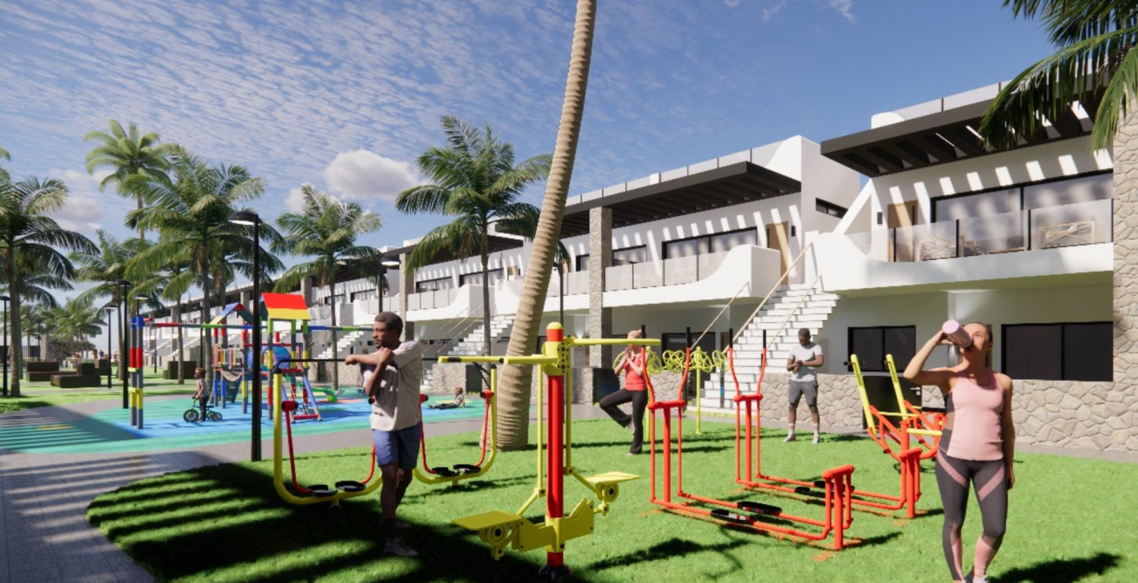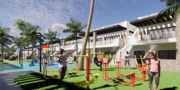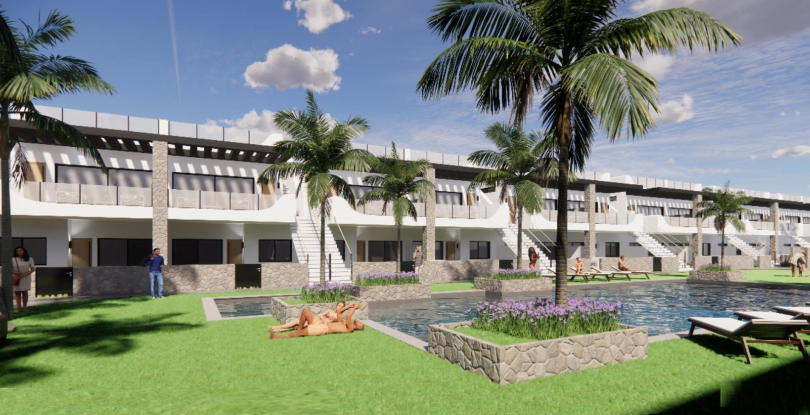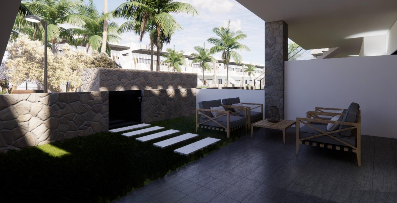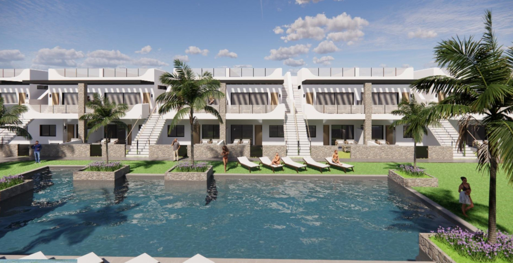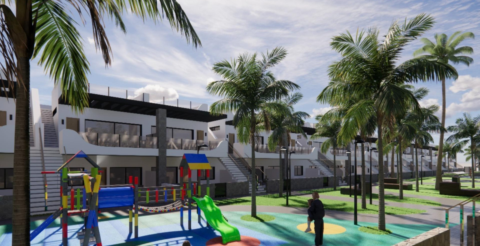 NYBYGG BOLIGKOMPLEKS I PUNTA PRIMA Nydelig nybygd boligkompleks med leiligheter, bungalower og villaer i Punta Prima, Torrevieja. Moderne 94 bungalower og leiligheter med 2 og 3 soverom, 2 bad, åpen kjøkkenløsning med romslig stue, garderober. Bungalower i første etasje med privat hage, bungalower i toppetasjen med privat solarium og leiligheter med romslige terrasser. Alle eiendommer har underjordisk parkeringsplass. Boligen vil bestå av 1,980m2 av felles grønne områder, 2,620m2 av private grønne områder, lekeplass for barn, felles bassenger, boblebad og treningsstudio. Komplekset ligger i nærheten av sportssentre, shoppingområder, restauranter og bare 10 minutters gange fra stranden i Punta Prima. Punta Prima, som ligger bare 5 km fra Torrevieja, er preget av sin gode kommunikasjons- og helseinfrastruktur, nærhet til Alicante flyplass og antall tjenester som er åpne hele året. Bare 10 km unna ligger golfbanene Villamartin, Campoamor, Las Ramblas, Las Colinas og Lo Romero, samt kjøpesentrene La Zenia og Habaneras.