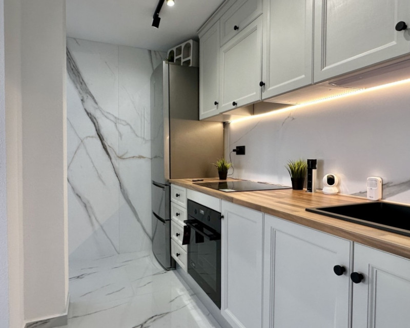 Discover this fully renovated and bright penthouse with exclusive interior design, located in the desirable Zeniamar 1 residential complex. Offering 52 m² of modern living space, the property features a southeast orientation and stunning direct sea views. Positioned on the first floor with a private entrance, it includes a storage room and access to a beautiful community with a swimming pool and green areas. Inside, the home consists of 1 bedroom, a contemporary bathroom with walk-in shower, and a cozy living space that flows to a 6.5 m² balcony. High–quality finishes include LG and Samsung appliances, inverter air conditioning, 55” AI smart TV, washer–dryer, underfloor heating, smoke detectors, and Wi-Fi video surveillance. Perfectly located within walking distance to landscaped parks, restaurants, paddle courts, mini-golf, and both municipal and Scandinavian schools. Beaches and Zenia Boulevard shopping center are just a 5-minute drive away—making this the ideal holiday home, residence, or rental investment.