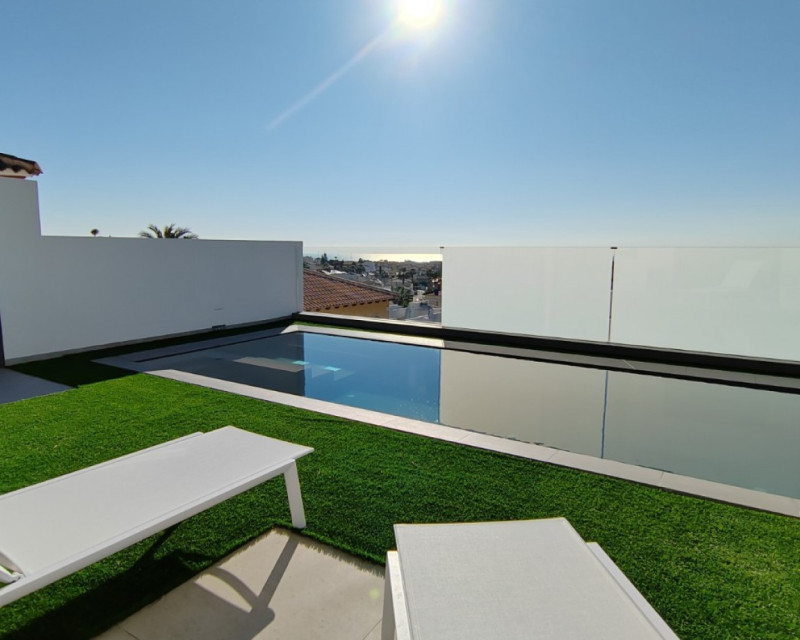 Step into Mediterranean luxury with this brand-new villa in Los Balcones, Torrevieja, where contemporary design meets comfort and style. Every detail of this home has been crafted to provide a lifestyle of sophistication, relaxation, and convenience. Property Highlights 3 spacious bedrooms and 3 elegant bathrooms 130 m² of modern living space filled with natural light Private 475 m² plot for total comfort and privacy 250 m² garage/basement with space for several cars, gym, cinema, or storage South-facing orientation for all-day sunshine Private 12 x 3.5 m swimming pool with landscaped garden Open-plan living and kitchen with seamless access to the terrace and pool Solarium with panoramic sea views Premium finishes throughout Location Situated in Los Balcones, Torrevieja, this villa offers an unbeatable location close to international schools, shopping centers, restaurants, golf courses, and only a short drive to the sandy beaches of Orihuela Costa. This is more than just a villa – it is a statement of modern Mediterranean living.