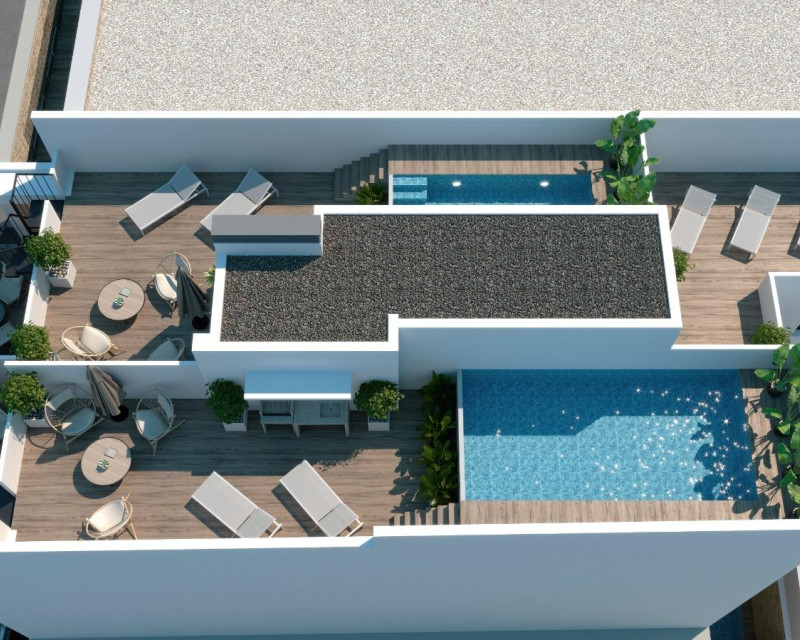 Modern New Build Apartments in the Heart of Torrevieja Prime Location Just 150 m from the Sea This exceptional new development is located in the very centre of Torrevieja, just 150 m from the natural swimming pools and seafront promenade, and only 500 m from Playa del Cura. Surrounded by an extensive range of services including shops, supermarkets, parks, cafés and restaurants, the area offers everything you need within a short walk. Its combination of urban convenience and coastal tranquillity makes it one of the most attractive residential areas in the city. Contemporary Apartments With 1 and 2 Bedrooms The development offers modern apartments featuring 1 or 2 bedrooms and 1 or 2 bathrooms, including two exclusive penthouses with private solarium, barbecue and private pool. All homes are designed with open layouts that maximise natural light, incorporating spacious terraces and stylish American style kitchens. Each apartment includes a fully equipped kitchen with appliances, complete bathrooms with furniture, shower screens and underfloor heating, as well as interior lighting. There is also preinstallation for ducted air conditioning, ensuring year round comfort. Attractive Communal Areas for Relaxation Residents can enjoy excellent communal facilities designed for wellbeing and leisure. The ground floor features a refreshing communal pool and a relaxing sauna. The rooftop terrace offers a shared solarium, ideal for sunbathing and taking in the Mediterranean atmosphere. Enjoy a Unique Coastal and Natural Environment Torrevieja is renowned for its mild Mediterranean climate, with an average annual temperature of 20 ºC, perfect for year round living. The city is home to the famous salt lakes and the protected Natural Park of La Mata and Torrevieja, located just 4 km from the development. With its vibrant pink and green lagoons, scenic walking routes and diverse wildlife, it provides a healthy and inspiring natural setting. Distances to Key Points of Interest Puerto Deportivo de Torrevieja 1 km Parque Natural de La Mata 4 km Villamartin Golf 8 km Alicante Airport 45 km Murcia Airport 60 km Live the Mediterranean Lifestyle Secure your modern home in one of the most sought after coastal cities in the Costa Blanca. Contact us today to schedule a visit and reserve your place in this outstanding new development.