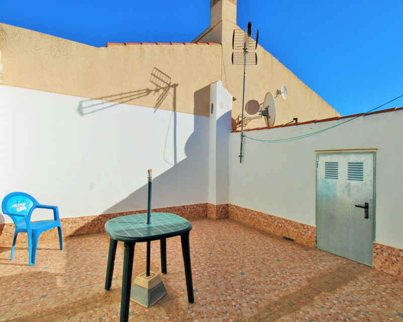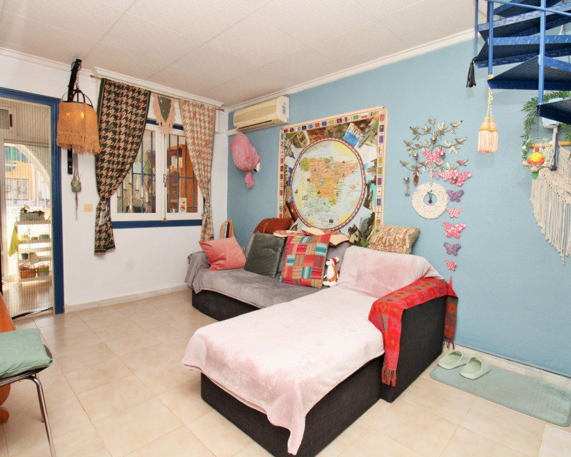 This South-East facing 2-bedroom bungalow is located in the popular La Siesta area of Torrevieja, set down a quiet communal alley that provides a peaceful and private setting. The property features a sunny front garden/terrace with an enclosed porch area — ideal for relaxing or outdoor dining. Inside, the home offers a bright lounge, a good-sized separate kitchen with a skylight, 2 bedrooms, and a bathroom with a walk-in shower. Exterior stairs lead up to the private solarium, complete with a useful storage room. La Siesta is a well-established residential area with all essential services within walking distance, including cafés, restaurants, pharmacies and a small supermarket. The location also benefits from the new multipurpose park opened last year by the town hall, offering walking paths, sports zones, and open green spaces for year-round recreation. Torrevieja’s beaches, the Habaneras shopping centre, and the Ozone leisure complex are only a short drive away. The property is sold mostly furnished, with white goods and air-conditioning included. With no community fees, only the yearly IBI, it represents excellent value in today’s market and is ideal as a holiday home, full-time residence, or rental investment.
