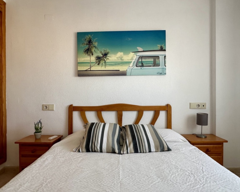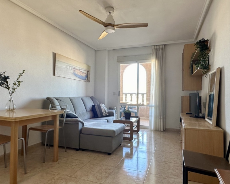 This bright and well-maintained apartment is located on the third floor of a modern building in the El Molino area of Torrevieja. The property benefits from excellent natural light, open views, and convenient access to all nearby services. Property Features Total area: 65 m²Floor: 3rd floor with exterior-facing windowsBuilding with two elevatorsCommunal swimming poolCommunal solarium and drying areaPrivate terrace overlooking the Torrevieja salt lakes2 bedrooms with natural light and built-in wardrobes1 full bathroomOpen-plan kitchen connected to the living–dining room, with the option to enclose if desiredSold fully furnished and ready to move into Location – El Molino, Torrevieja Surrounded by essential amenities such as supermarkets, gyms, restaurants, cafés, public transport, and green areas—everything just a few meters away. A comfortable home in a central, well-connected neighborhood.