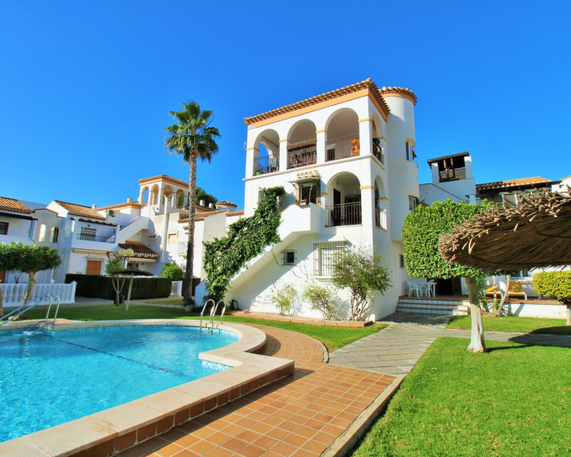 Set in the heart of highly sought-after Playa Flamenca, this beautifully presented duplex penthouse enjoys an exceptional location just under 700 metres from the sandy coves of Cala Estaca and Cala Mosca, and less than 200 metres from all daily amenities including Mercadona supermarket, bars, restaurants, gym and the local town hall — everything you need is quite literally on your doorstep. Situated within a secure, gated urbanisation, residents benefit from immaculately maintained landscaped gardens and 2 stylish communal swimming pools, creating a peaceful Mediterranean setting despite being so close to the action. The property itself is designed to make the most of outdoor living, offering multiple private terraces with open views over the pool and gardens — ideal for relaxing, dining, or entertaining in the sunshine. Inside, the main living level features a bright open-plan lounge, dining area and kitchen, flooded with natural light and opening directly onto a terrace overlooking the pool. This floor also includes a double bedroom with fitted wardrobes and a modern family bathroom with walk-in shower, thoughtfully designed with space for utilities. The upper level comprises two further double bedrooms and a second contemporary bathroom, also with a walk-in shower. Completing the home is a private rooftop solarium, complete with a built-in BBQ and beautiful views across the communal areas and the Mediterranean Sea — a perfect spot for evening sunsets or hosting friends. An ideal choice for those seeking a quality home in a prime coastal location, whether as a permanent residence, holiday retreat or investment, with the beaches, amenities and lifestyle of Playa Flamenca all within easy walking distance.