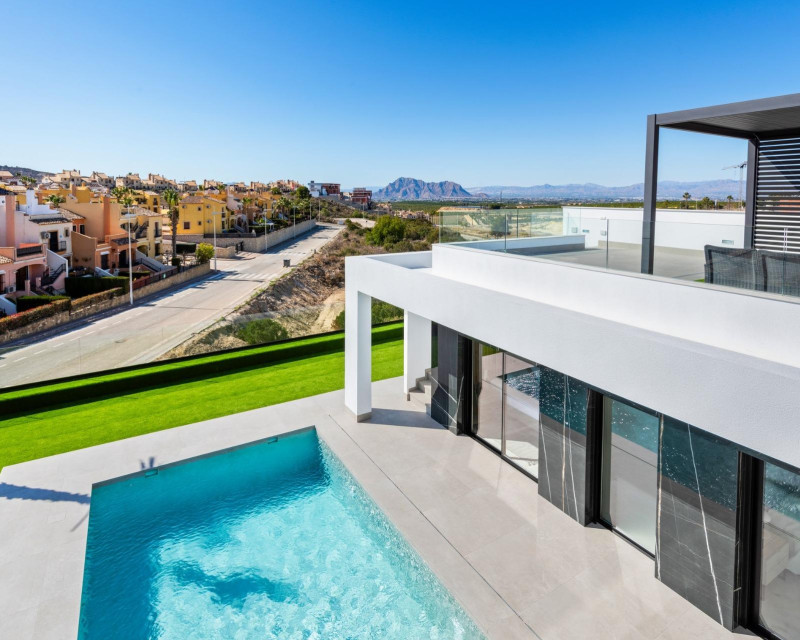 New Build Luxury Villas in La Finca Golf, Algorfa Exclusive One floor Villas next to the Golf La Finca in Costa Blanca South Discover this exclusive new build residential project of 11 independent villas located within the prestigious La Finca Golf Resort in Algorfa, one of the most sought after areas of the Vega Baja, Costa Blanca South. Surrounded by green landscapes, citrus groves and rolling fairways, this location offers tranquillity, privacy and a high quality Mediterranean lifestyle, while remaining close to all essential services and coastal attractions. Modern Single Level Villas with Private Pool and Solarium Each villa is thoughtfully designed on one level, offering comfort and functionality throughout. The properties feature 3 spacious bedrooms and 2 modern bathrooms, an open plan American style kitchen, and a bright living and dining area with large windows that open directly onto the terrace and private garden. Outdoors, each villa enjoys a private swimming pool, parking space within the plot, and an impressive 150 sqm private solarium, ideal for enjoying the sun all year round. For buyers seeking additional space, there is the option to add a basement or a fourth bedroom on an upper level at an extra cost, allowing you to tailor the home to your personal needs. High Quality Specifications and Elegant Finishes These villas are built with premium materials and finishes to ensure comfort, efficiency and modern style. Features include a reinforced security entrance door, motorized shutters, fully furnished kitchens equipped with appliances, and bathrooms complete with furniture, mirrors and shower screens. The rooftop solarium is delivered with a summer kitchen and pergola, creating the perfect setting for outdoor dining and relaxation. An interior and exterior LED lighting package is also included, enhancing both design and ambience. Prime Location in La Finca Golf Resort La Finca Golf Resort is renowned for its championship golf course, luxury hotel, spa facilities, restaurants and sports areas, all set within a secure and well maintained environment. Algorfa is a charming Spanish village offering a relaxed atmosphere, local shops and traditional restaurants, while nearby towns provide a wider range of services. Key Distances La Finca Golf Club: on site Guardamar del Segura beaches: 15 km Torrevieja and Orihuela Costa shopping centres: 15 km Almoradi, Benijofar and Ciudad Quesada: 5 to 10 km Alicante International Airport: 35 km Mediterranean Lifestyle and Smart Investment With over 300 days of sunshine per year, excellent road connections and proximity to beaches, golf courses and commercial areas, these villas are ideal as a permanent residence, holiday home or investment opportunity on the Costa Blanca. Secure Your New Villa in La Finca Golf Today Do not miss the opportunity to own a modern villa in one of the most exclusive golf resorts in Algorfa. Contact us today for more information or to arrange a private viewing.