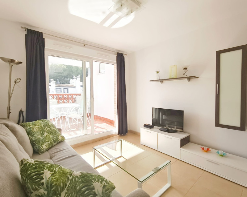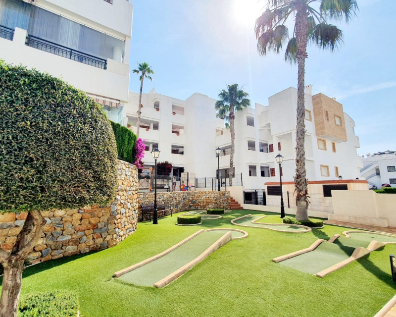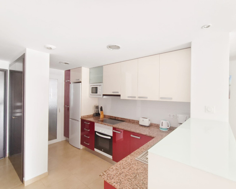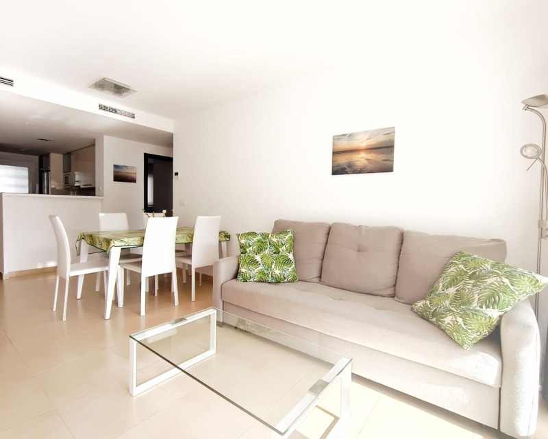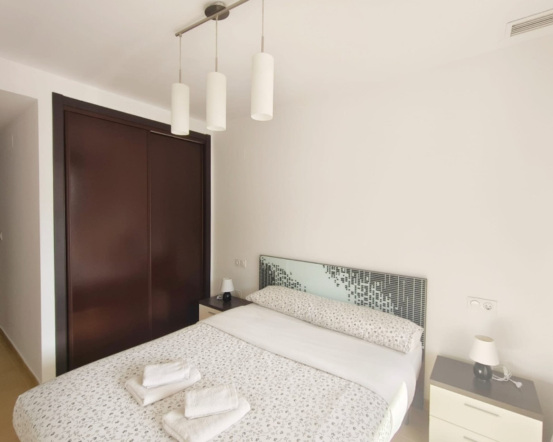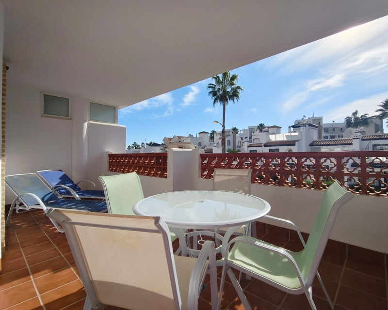 Located on the first floor of a residence with a lift, this bright flat is sold fully furnished and equipped, ready to move into or rent immediately. It comprises two bedrooms, a bathroom, a laundry room, and has central air conditioning ensuring optimal comfort all year round. The south-facing terrace offers a pleasant outdoor space. The property is located within a well-maintained condominium offering numerous amenities: swimming pool, jacuzzi, children's playground, and mini-golf. Ideally located, the residence is only 5 minutes from the shops, bars, and restaurants of La Fuente, and 10 minutes from the beach. For more information or to arrange a viewing, please do not hesitate to contact us.