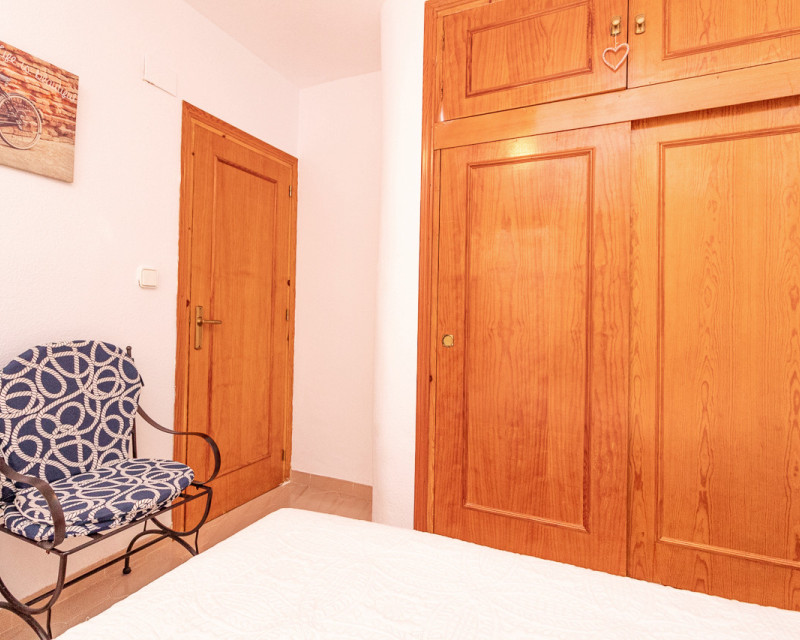 Well presented ground floor maisonette style apartment located in El Chaparral. The property offers an open concept living/dining room and kitchen with breakfast bar , double bedroom with fitted wardrobes with access to a rear covered terrace which houses a second shower (ideal for beach sand) and a sofa bed plus the main bathroom with modernised shower. To the front the bonus enclosed front terrace is ideal for relaxing and taking advantage of the winter sun, extra dining space or office space.The apartment boasts a private patio garden with an East facing aspect and high privacy walls. Sold as seen , fully furnished and key ready with extras including newly installed air conditioning, white goods and security shutters/grilles. Set on a small community with swimming pool and gardens for residents (just next door to the property) and walking distance to local amenities including shops, bars, restaurants , the new Siesta Park and Pump track and much more. The beaches and port of Torrevieja area easily reached in just over 5 minutes by car, likewise the Habaneras shopping mall , Carrefour hypermarket, plus leisure facilities including the local water park, cinema and bowling. Contact us today for more information and viewings