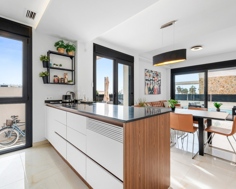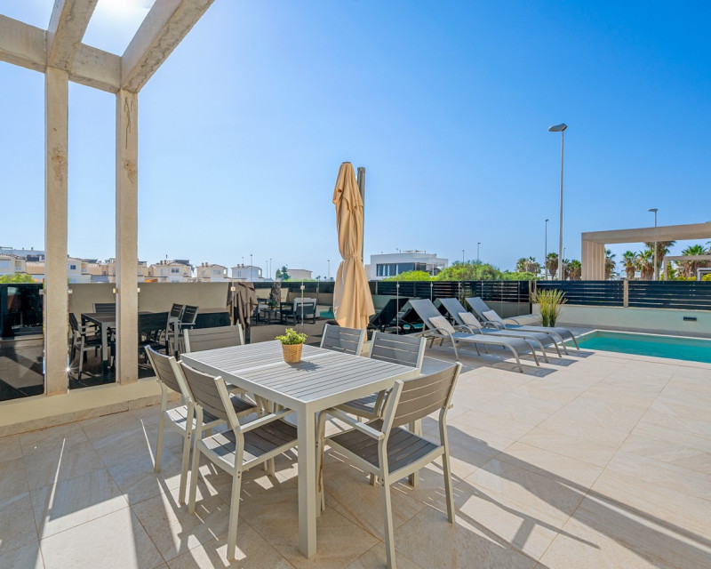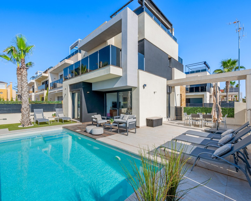 Exclusive 4-bedroom villa, ideally located in the highly sought-after area of Lomas de Cabo Roig - just moments from the beach, renowned golf courses, and a wide selection of local amenities.This stylish property boasts a sleek and spacious design, offering four generously proportioned bedrooms, each with its own en-suite bathroom and high ceilings. The villa also features a private swimming pool, a rooftop solarium with panoramic sea views, and a large basement that can be adapted for fitness, entertainment, or extra storage. Designed for open-plan living, it includes high-quality finishes, plenty of natural light, and generous outdoor space – making it an ideal choice for both permanent residence and luxury holiday living. Property Highlights ✔ 4 Bedrooms | 4 En-Suite Bathrooms ✔ Private Swimming Pool ✔ Rooftop Solarium with Sea Views ✔ Large Versatile Basement ✔ Walking Distance to Shops, Restaurants & Beaches Location – Lomas de Cabo Roig Lomas de Cabo Roig is one of the most desirable neighbourhoods on the Orihuela Costa, celebrated for its laid-back atmosphere, modern infrastructure, and close proximity to Blue Flag beaches. The area offers convenient access to international schools, prestigious golf courses, marinas, and a wide range of dining and shopping options – all within a short distance. Whether you're searching for a stylish coastal residence or a sound investment property with strong rental potential, this villa delivers the perfect combination of comfort, location, and refined living. Get in touch today to arrange a private viewing or receive more information about this exclusive opportunity.