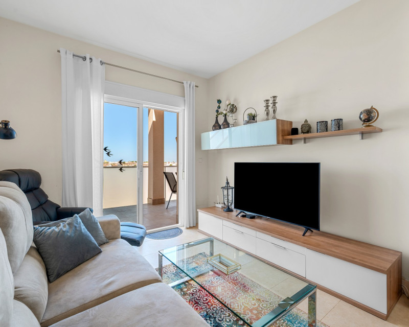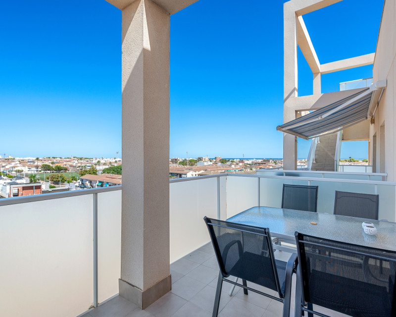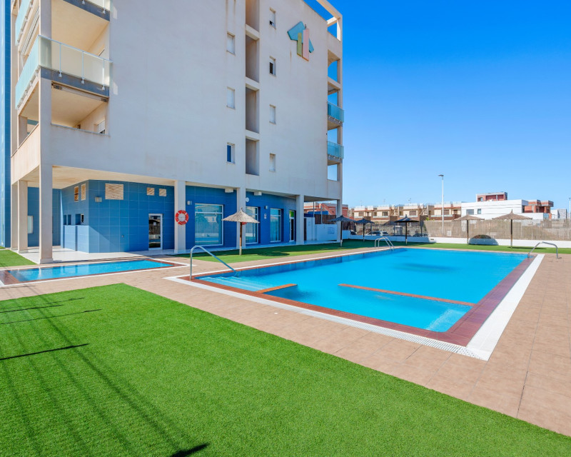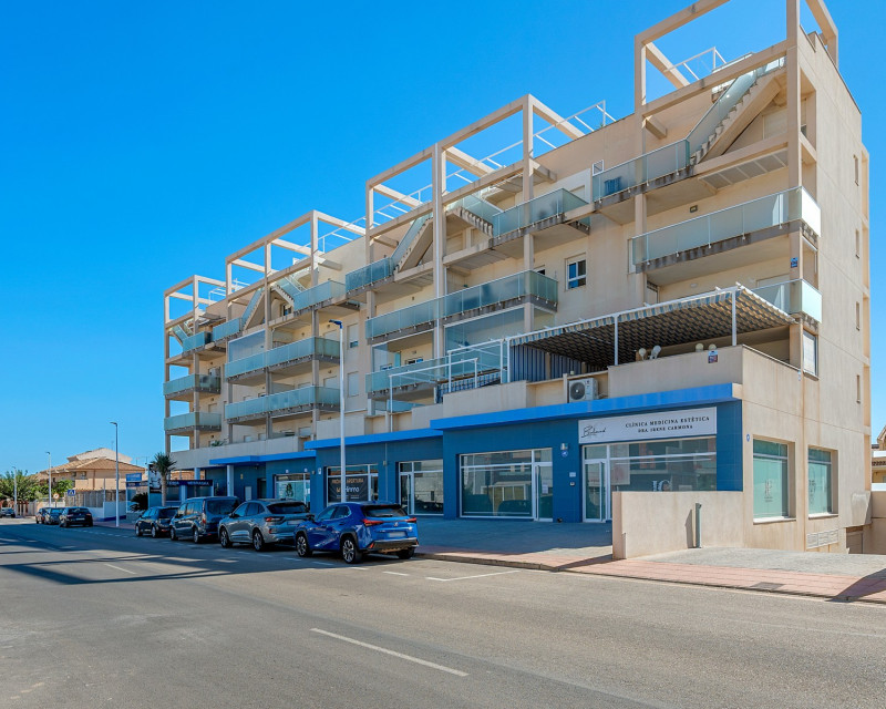 Spain1 proudly presents this spectacular penthouse apartment with wonderful mountain and seaviews, just 250 meters from the sea! This bright apartment has a modern open-plan kitchen, a spacious living-dining room, two spacious bedrooms with fitted wardrobes and two bathrooms. The apartment has a big roof terrace of 65 m2 where you can during the day enjoy the spanish sunshine, and also spend nice evenings with family and friends. In the apartment there is a ducted air conditioning system offering heating and cooling throughout the whole apartment. The apartment is sold fully furnished. There is a community pool for adults and also a childrens pool within the complex. A short walk from the apartment you find the beaches of Mar Menor and Lo Pagan. Here you also find a long promenade along the sea. Along this promenade you also find a lot of restaurants and bars. With excellent access to the AP-7 motorway and only 35 minutes to Murcia Airport and 50 minutes to Alicante Airport, this home is ideal for both year-round living and relaxing holidays. Don't miss the opportunity to live in a privileged area. Contact us today to book your viewing!