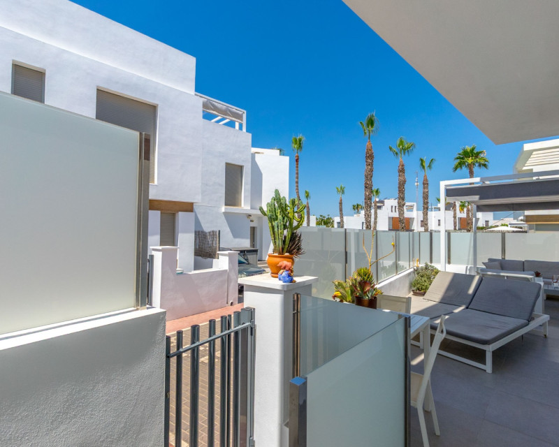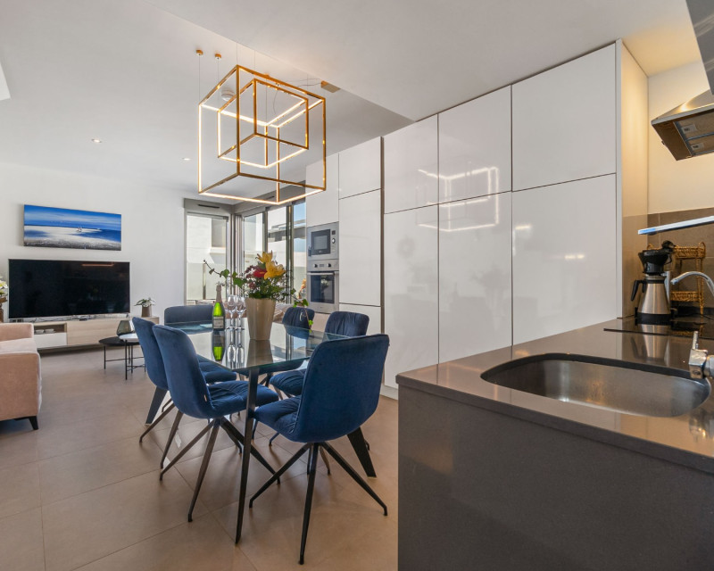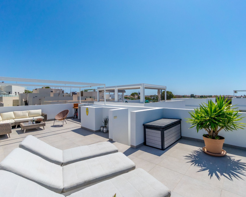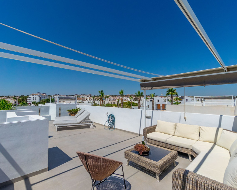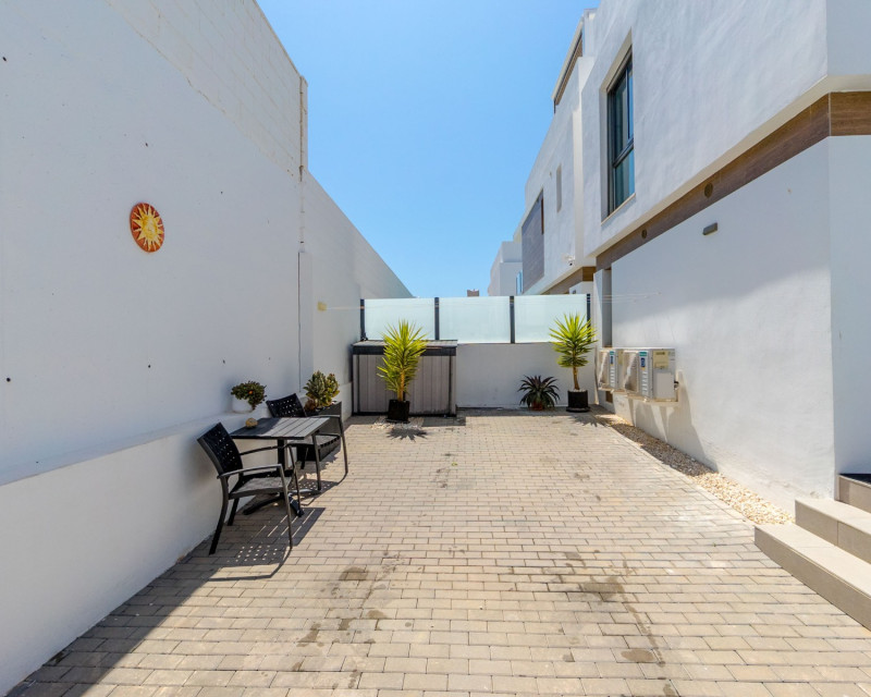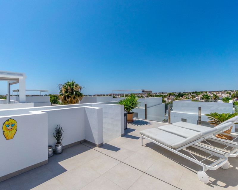 This beautiful villa, built in 2018 and in good condition, is an ideal home for those seeking comfort and a sunny lifestyle on the Costa Blanca. With a southwest orientation, you can enjoy sunny days and evenings. The property is fully furnished, making it ready for immediate occupancy. The property offers: 3 spacious bedrooms 3 modern bathrooms, each equipped with underfloor heating. Living area: 199 m² Plot: 204 m² Terraces: The villa boasts several private outdoor spaces: The master bedroom has a private terrace of 6.58 m². Additionally, there is a spacious roof terrace of 47.06 m² offering extra outdoor space and opportunities for sunbathing and enjoying the views. This also features an outdoor kitchen with running water. Heated private pool for year-round enjoyment Private parking with space for 2 cars Interior and layout: On the ground floor, you will find an open-plan living room and kitchen, perfect for socializing. From this floor, you also have direct access to the pool and the outdoor area below, making it easy to enjoy sunny days. This floor also features one bathroom. Further up on the first floor , you will find three bedrooms and two bathrooms. The master bedroom has its own en-suite bathroom, providing additional privacy and comfort. From the first floor, there is also access to the fantastic roof terrace. Facilities and features include: Sea view and pool view Alarm system and reinforced door for increased security Outdoor and indoor lighting Electric shutters Central air conditioning and central heating Intercom Storage room Built-in wardrobes Access to common green areas and a communal pool (in addition to the private one) The Villamartín Area Villamartín is a well-developed and cosmopolitan urbanization on the Southern Costa Blanca, known for its vibrant community and excellent facilities. The area boasts around 320 sunny days a year and an average annual temperature of approximately 20°C, contributing to a pleasant Mediterranean climate year-round. Villamartín is a paradise for golf enthusiasts. Here you will find the historic Villamartín Golf Course, opened in 1972 and designed by Robert Dean Puttman. This 18-hole course (par 72) is recognized as one of the best in the region and has even hosted qualifying rounds for the European Tour. The course is characterized by mature vegetation and offers fantastic sea views. The clubhouse restaurant also has a rooftop terrace with excellent views of the 18th hole. In addition to Villamartín Golf, there are several other renowned golf courses in the immediate vicinity, including Las Ramblas Golf, Las Colinas Golf & Country Club, La Finca Golf, and Lo Romero Golf. The area is also known for its lively atmosphere with a variety of restaurants, bars, and shops. The famous Villamartín Plaza is a popular meeting point with a wide selection of dining and entertainment options. Large shopping centers like Zenia Boulevard are also nearby. The beautiful beaches along Orihuela Costa, including "Blue Flag" beaches such as La Zenia, Playa Flamenca, and Cabo Roig, are just a short drive away. This villa is perfect for those seeking a combination of privacy, golf, and easy access to all that Villamartín and the Costa Blanca have to offer.