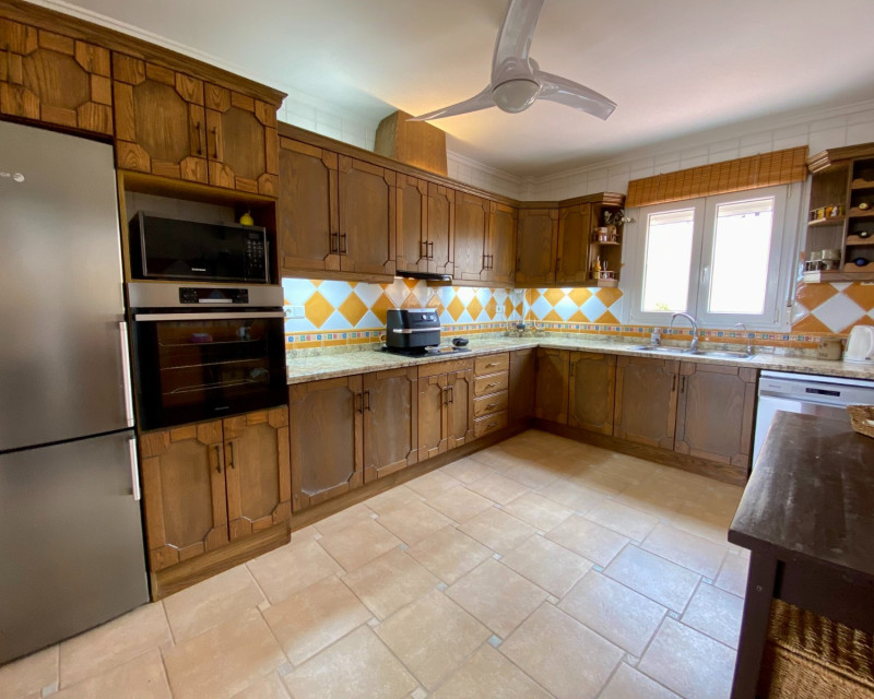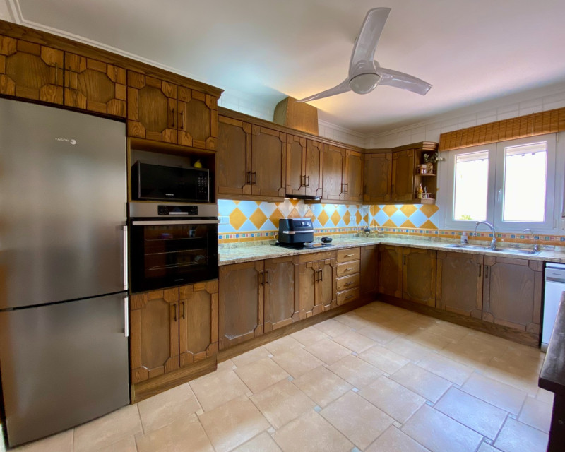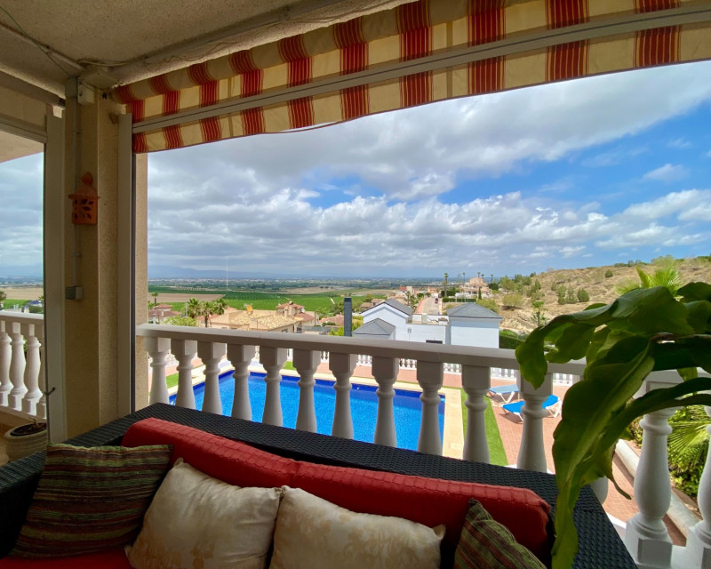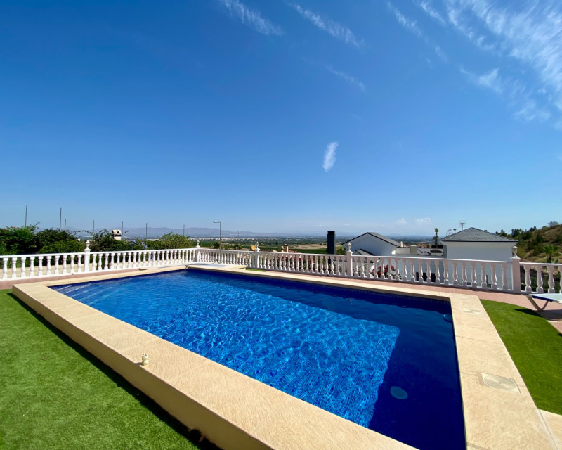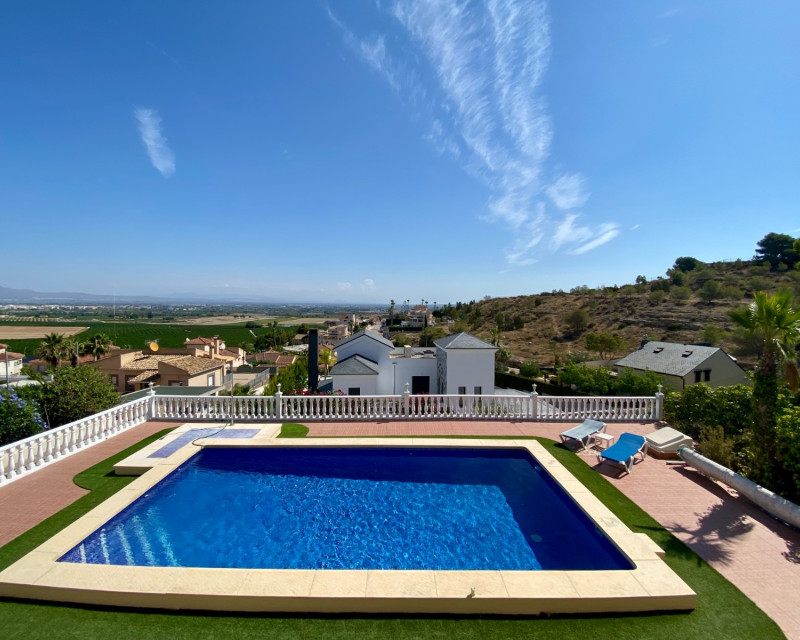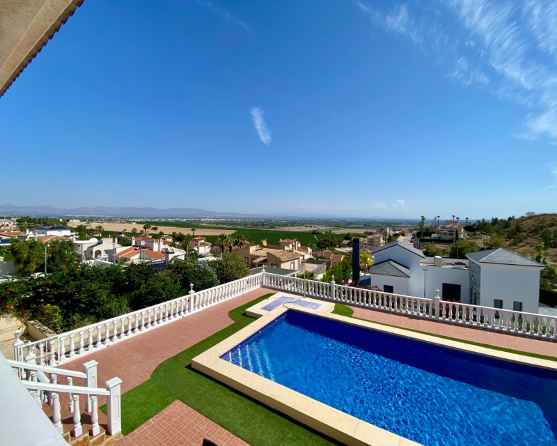 Spacious 3-bedroom villa with beautiful mountain views in Algorfa Situated in a peaceful residential area of Algorfa, this well-maintained villa offers stunning panoramic mountain views, generous interior space, and excellent outdoor living on a large 1,020 m² plot. With 272 m² of built area, this property is perfect for those seeking comfort, privacy, and a touch of Mediterranean charm. The villa features 3 bedrooms, 2.5 bathrooms, an open independent kitchen, and spacious living areas filled with natural light. A dedicated office space adds flexibility, while the 10m x 5.5m private pool and mature garden make outdoor entertaining a pleasure. The home is equipped with air conditioning in most rooms, ceiling fans in the bedrooms and hallway, and a pallet burner for year-round comfort. A large, cool storage area under the stairs and private parking for two cars complete the offering. Key Features: 3 bedrooms 2.5 bathrooms Office (optional 4th bedroom or workspace) Beautiful panoramic mountain views 272 m² built area 1,020 m² plot Large private pool (10m x 5.5m) Open independent kitchen Air conditioning  Ceiling fans in all bedrooms and hallway Pallet burner on the lower floor Large cool storage area under the stairs Private parking for 2 vehicles South-facing orientation Garden Furniture negotiable Built in 2004 In great condition Fitted wardrobes Spacious and private outdoor area Don't miss this opportunity, contact us now for a visit!