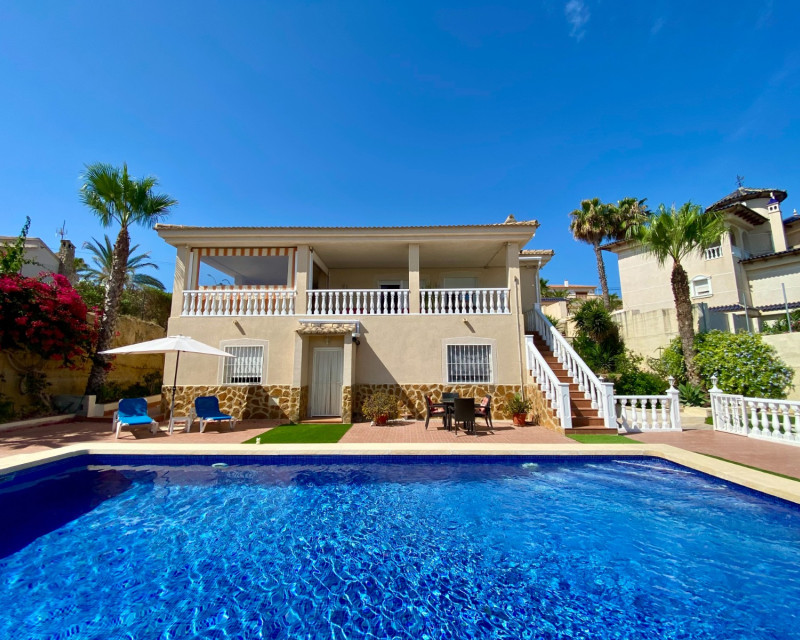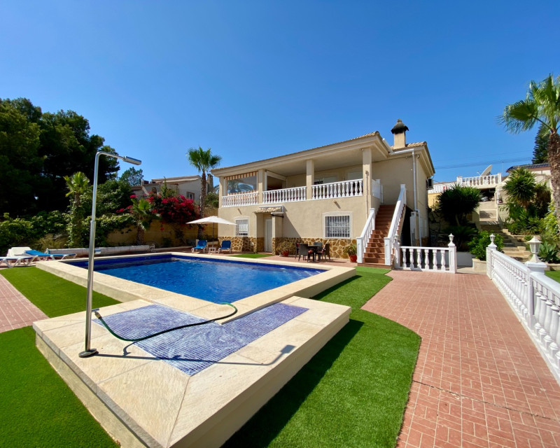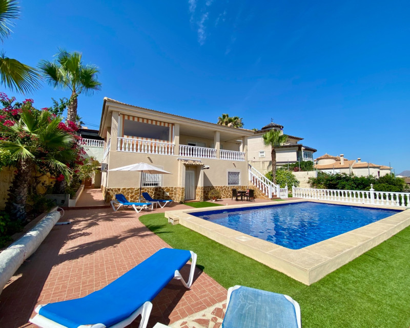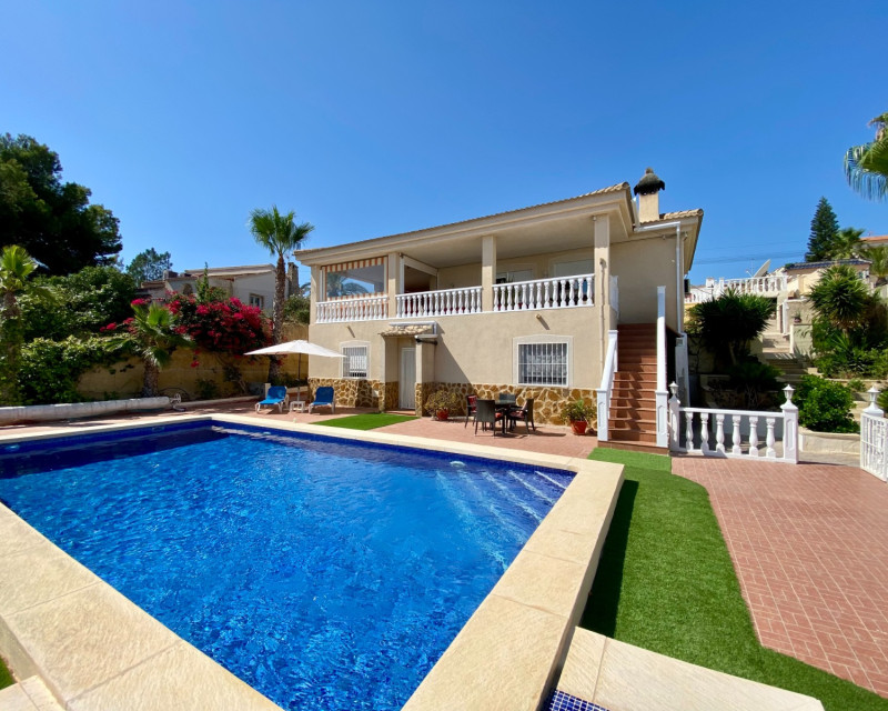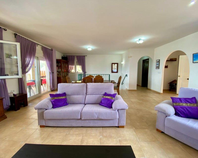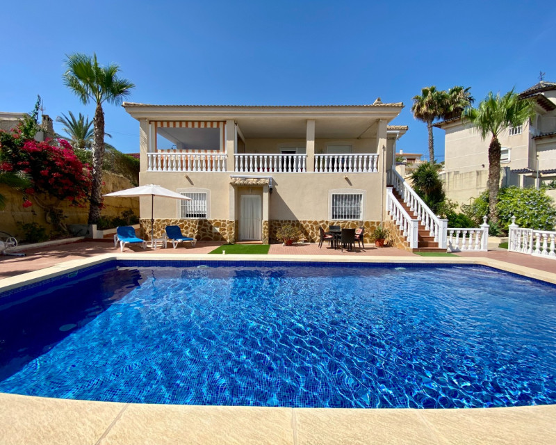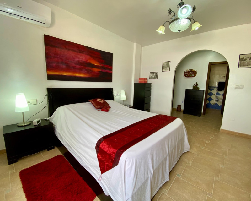 Spacious 3-bedroom villa with beautiful mountain views in Algorfa Situated in a peaceful residential area of Algorfa, this well-maintained villa offers stunning panoramic mountain views, generous interior space, and excellent outdoor living on a large 1,020 m² plot. With 272 m² of built area, this property is perfect for those seeking comfort, privacy, and a touch of Mediterranean charm. The villa features 3 bedrooms, 2.5 bathrooms, an open independent kitchen, and spacious living areas filled with natural light. A dedicated office space adds flexibility, while the 10m x 5.5m private pool and mature garden make outdoor entertaining a pleasure. The home is equipped with air conditioning in most rooms, ceiling fans in the bedrooms and hallway, and a pallet burner for year-round comfort. A large, cool storage area under the stairs and private parking for two cars complete the offering. Key Features: 3 bedrooms 2.5 bathrooms Office (optional 4th bedroom or workspace) Beautiful panoramic mountain views 272 m² built area 1,020 m² plot Large private pool (10m x 5.5m) Open independent kitchen Air conditioning  Ceiling fans in all bedrooms and hallway Pallet burner on the lower floor Large cool storage area under the stairs Private parking for 2 vehicles South-facing orientation Garden Furniture negotiable Built in 2004 In great condition Fitted wardrobes Spacious and private outdoor area Don't miss this opportunity, contact us now for a visit!