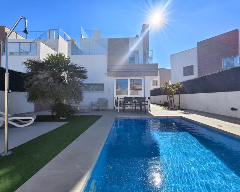 Contemporary house with 3 bedrooms, 3 bathrooms, sold furnished with appliances. The villa is equipped with central air conditioning, electric shutters and underfloor heating in the bathrooms. The property also offers several terraces and a solarium allowing you to enjoy the sun all day long, but above all all year round. Private heated swimming pool, ideal for extending the summer. Private parking space with electric gate. Ideal for rental investment or second home. Contact us now to find out more and arrange a viewing!