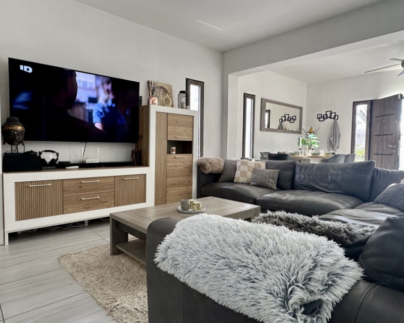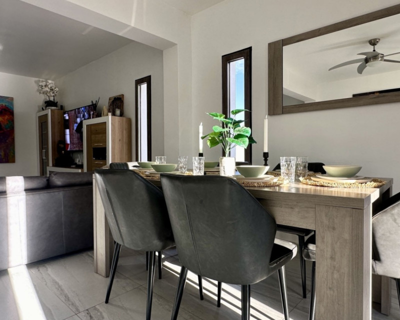 Discover a beautifully renovated, contemporary detached villa located in the residential heart of Ciudad Quesada, Rojales. This stylish home combines modern design with comfortable living spaces across two levels, set on a generous plot of approximately 500 m². The property is ideal for families seeking spacious accommodation or as a desirable holiday residence. The villa offers a built area of 132 m² and features five well-sized bedrooms and three modern bathrooms, giving plenty of room for family, guests, or flexible living arrangements. The layout flows around bright, open-plan living areas that seamlessly connect to outdoor terraces and garden spaces — perfect for enjoying the Mediterranean climate. Externally, the home boasts an elegantly landscaped garden with paved terraces designed for outdoor living and entertaining. A standout feature is the private heated pool (8 × 4 m), providing year-round enjoyment. The outdoor space also includes a covered exterior kitchen/bar area, ideal for al fresco dining and social gatherings. Additional highlights include air conditioning in all rooms, built-in wardrobes, south-facing orientation for excellent natural light, and a garage space. The property is finished to a high standard with contemporary touches throughout and is located in a quiet, sought-after neighbourhood