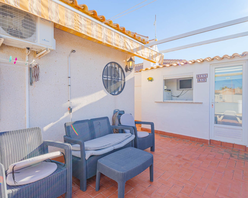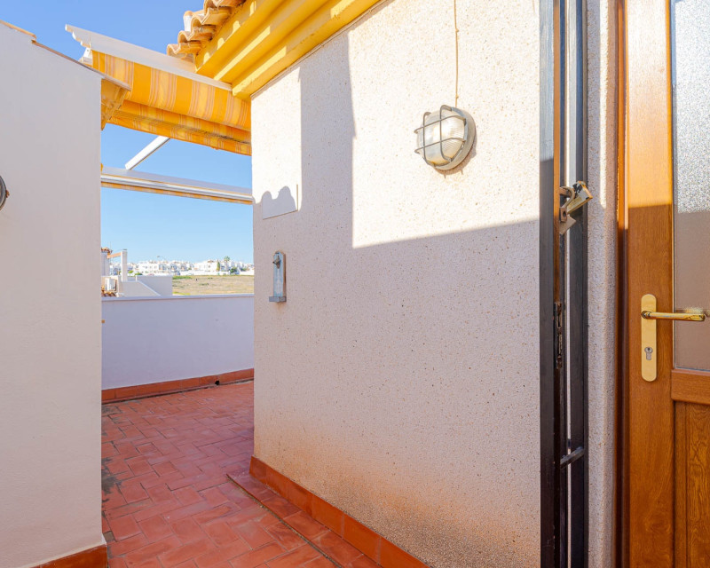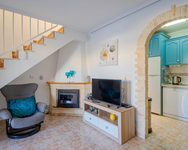 3 Bedroom  Property for Sale in Playa Flamenca – Costa Blanca South We are pleased to present this well-presented 3 bedroom, 2 bathroom property for sale in Playa Flamenca, one of the most popular areas on the Orihuela Costa, Costa Blanca South. Spacious & Well-Maintained Interior This exceptionally well-maintained home is offered  furnished , making it an excellent turnkey option for both holiday use and permanent living. Covered and glazed terraceCozy  lounge-diner with feature fireplaceFully fitted kitchenSeparate utility room2 bedrooms Family bathroom Master Bedroom & Private Solarium On the upper level you will find the main bedroom, featuring: Fitted wardrobesEn suite bathroom  From both the bedroom and landing, there is direct access to a large, sun-drenched private solarium, perfect for relaxing, entertaining, or sunbathing in total privacy. Outdoor Space & Parking Externally, the property benefits from: GardenOff-road private parking The property forms part of the attractive Residential Iria I, a secure gated development offering a large communal swimming pool and generous sunbathing areas — ideal for enjoying the Mediterranean climate. Playa Flamenca is a well-established seaside resort on the Orihuela Costa, highly sought after for both holiday homes and permanent living. The area offers excellent infrastructure and is close to top golf courses such as: VillamartínLas RamblasCampoamorLas Colinas Golf Why This Property? ✔ Ideal holiday home or permanent residence✔ Sought-after location in Playa Flamenca✔ Close to beaches, golf, shopping & airports