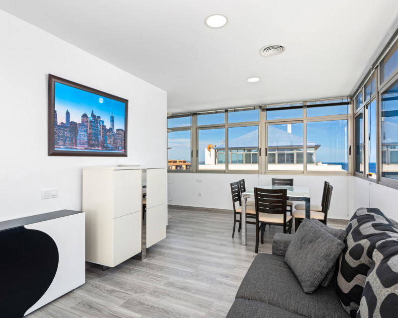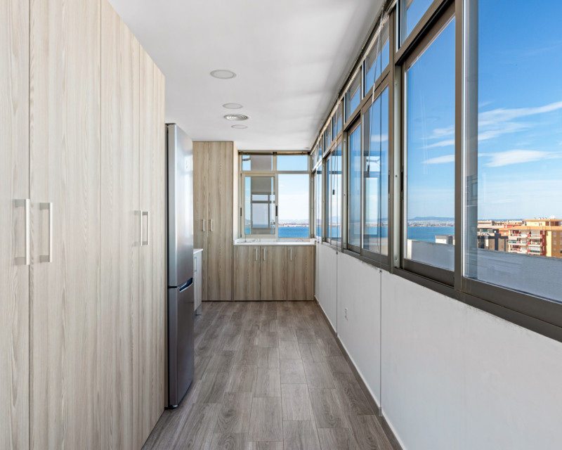 Magnificent penthouse on the first line of the Mediterranean Sea Part of Euromarina Towers, a project built in 2007 and located at km. 16.5 from La Manga del Mar Menor, on the first line of the Mediterranean Sea and the second line of the Mar Menor. Its incredible location allows you to enjoy the beaches of both seas. It has two community pools facing the Mediterranean, as well as direct access to the beach. The penthouse has a bedroom, two bathrooms, a kitchen and a space with large windows overlooking the sea that acts as a dining room and living room. The apartment has air conditioning. The price includes a parking space in the building. The area has a wide variety of restaurants, supermarkets, pharmacy, cafeterias, not being necessary to resort to the car on a daily basis.